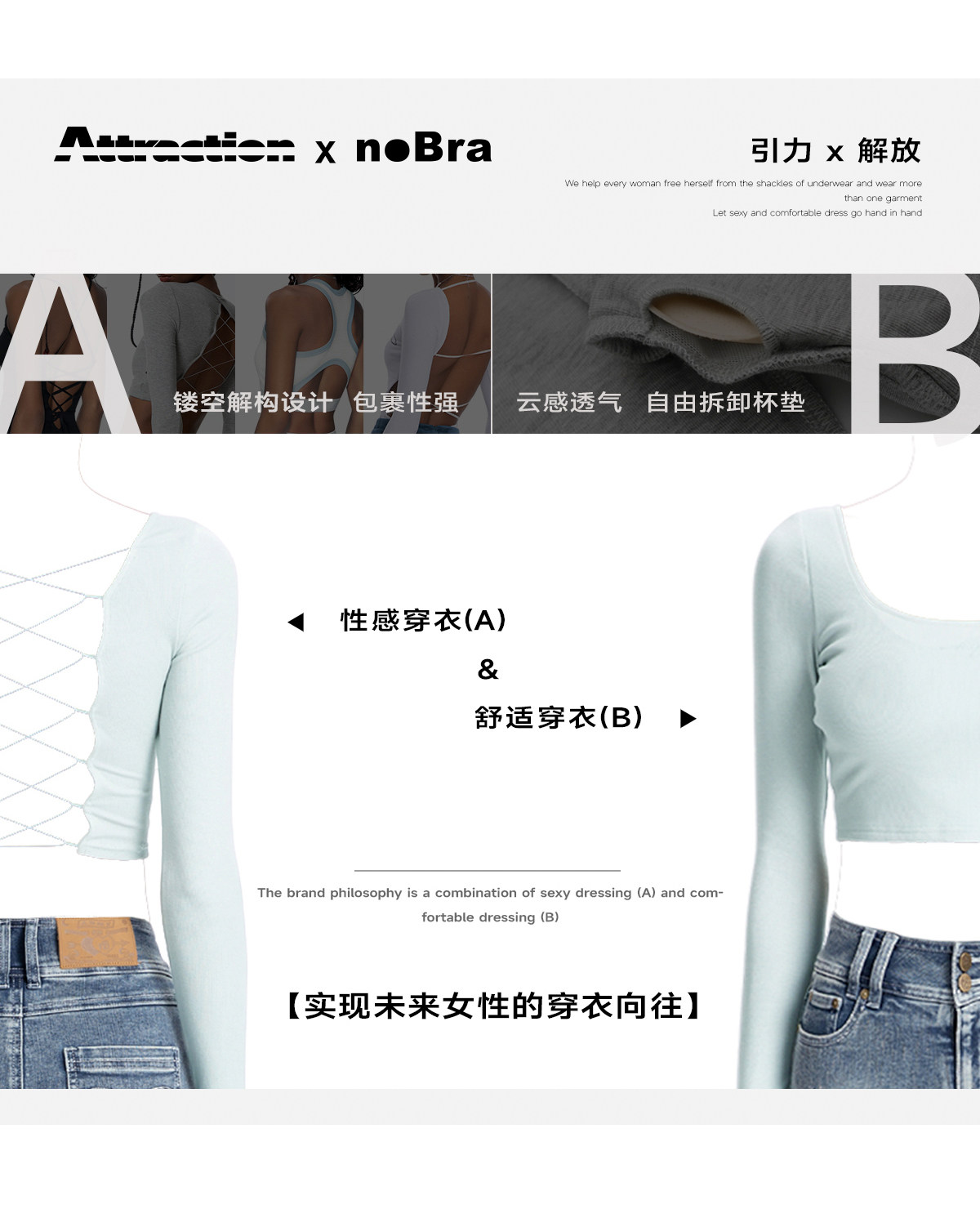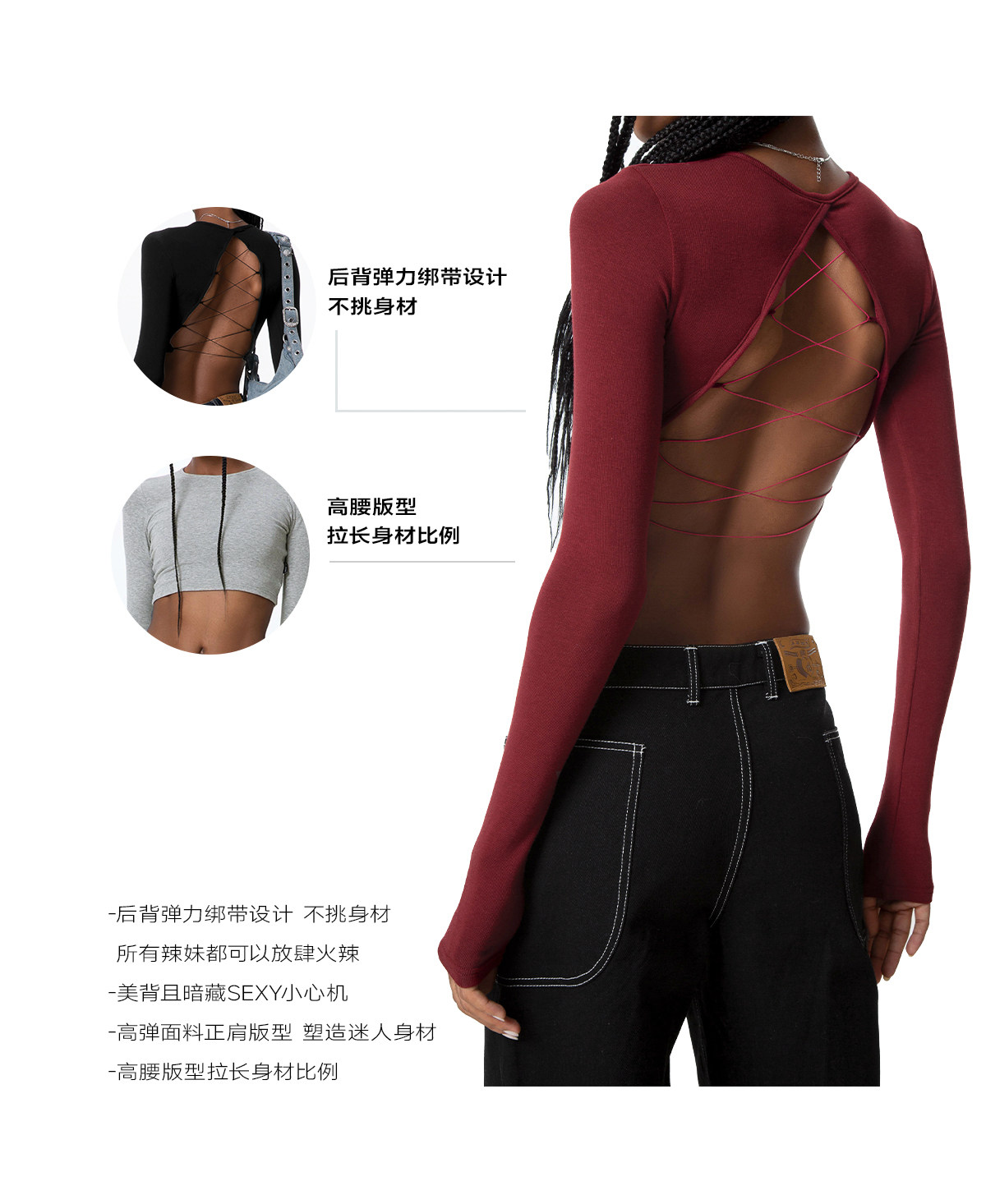 Nobra by Abmy Backless Lace-Up Babyt Sexy Backless Hot Girl Short-Sleeved T-Shirt with Chest Pads for Women