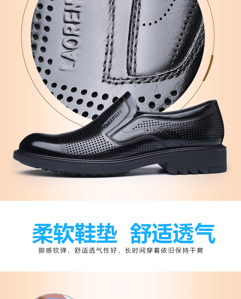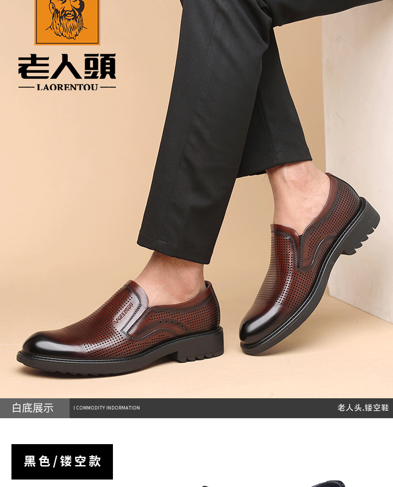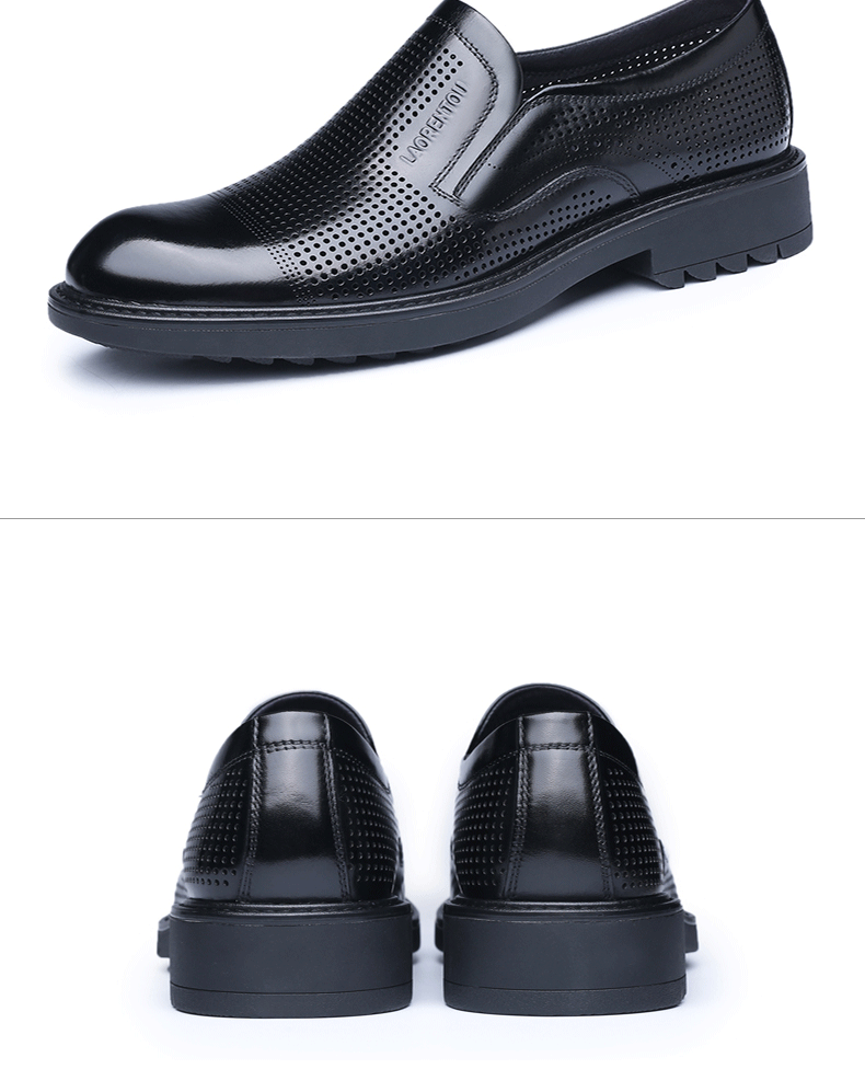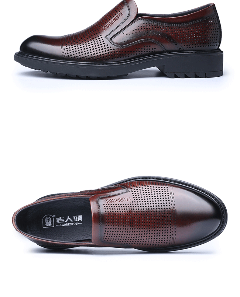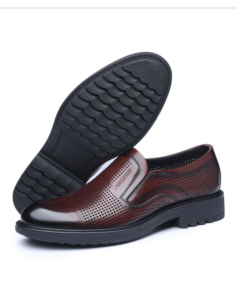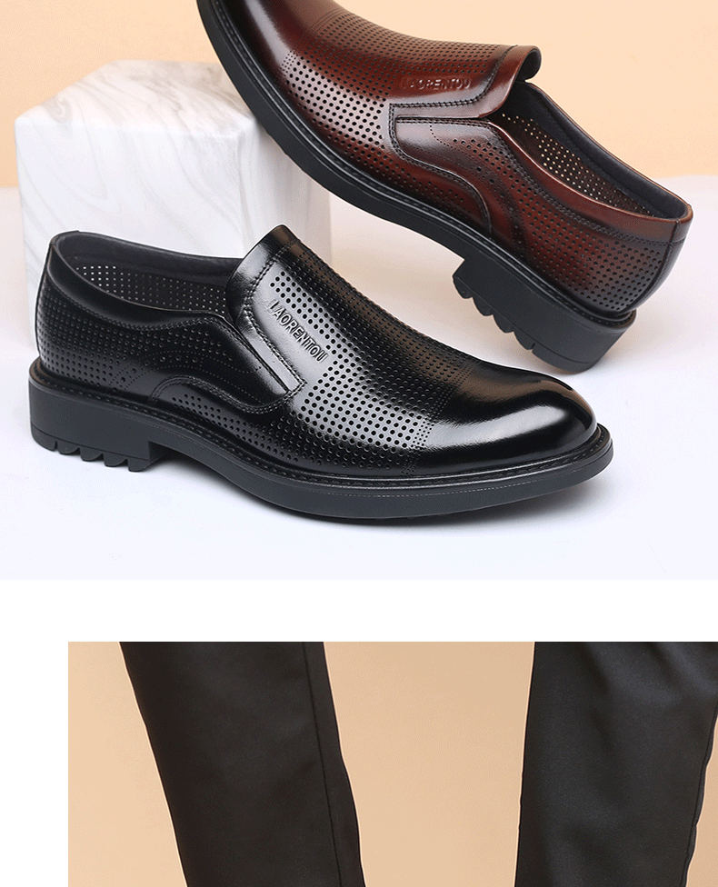 Elderly Men's Breathable Perforated Leather Shoes, Genuine Leather, 2025 Summer New Style, Business Casual Formal Cowhide Sandals with Perforations