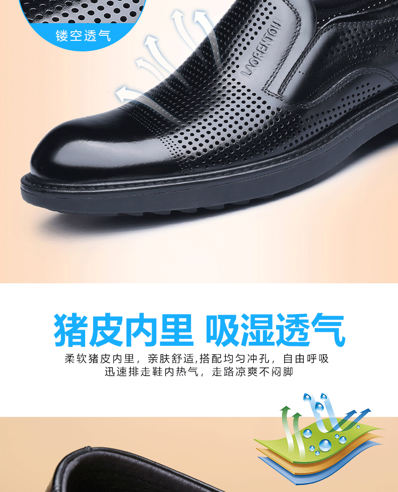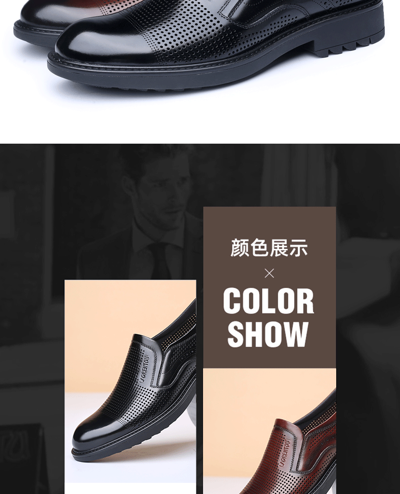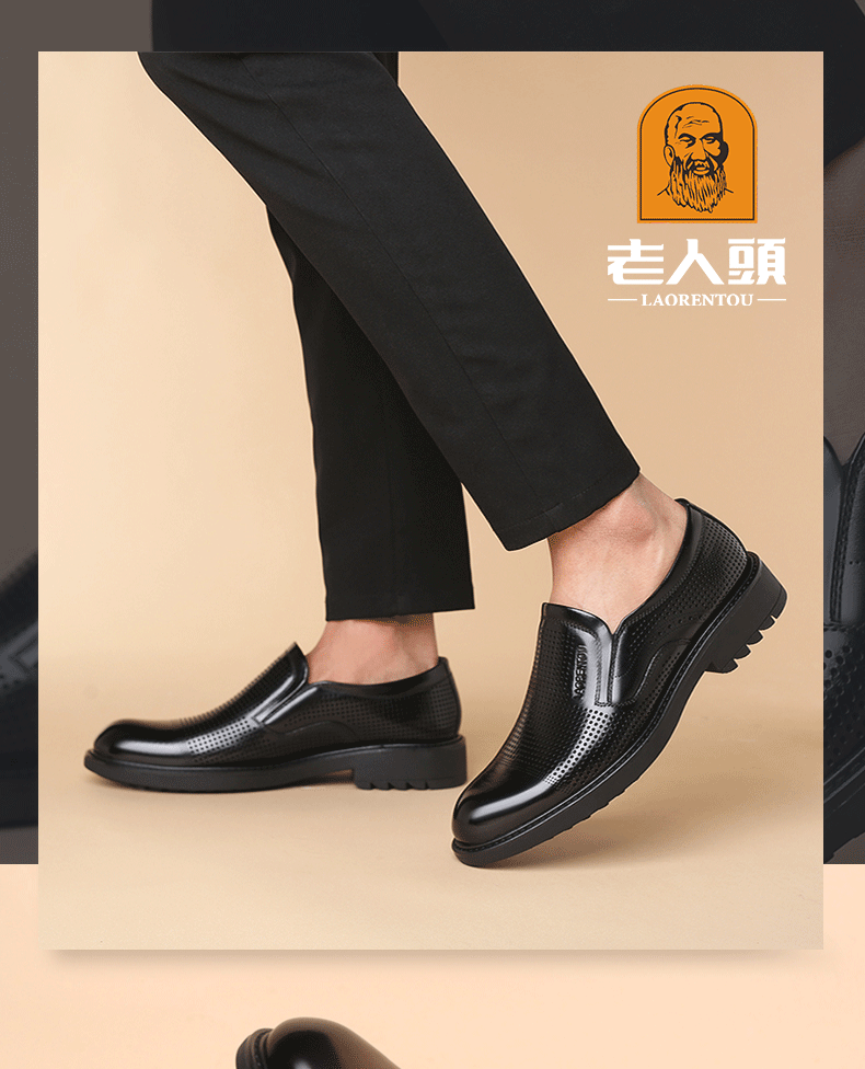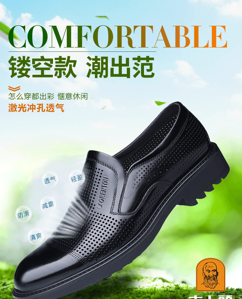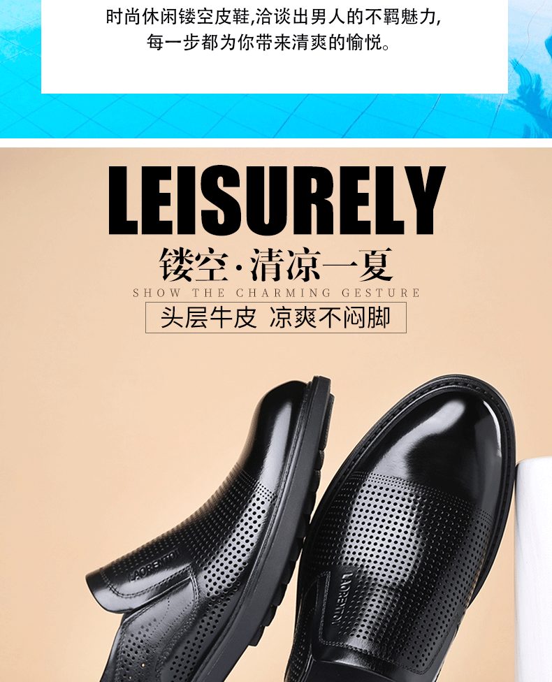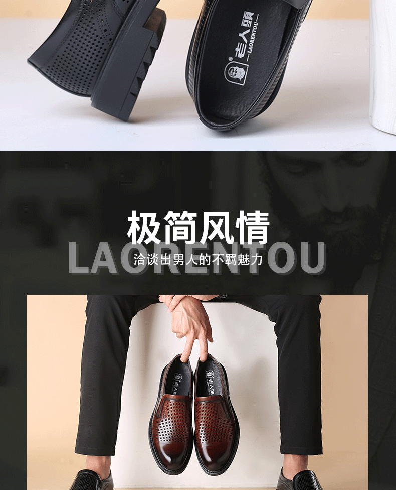 Elderly Men's Breathable Perforated Leather Shoes, Genuine Leather, 2025 Summer New Style, Business Casual Formal Cowhide Sandals with Perforations
