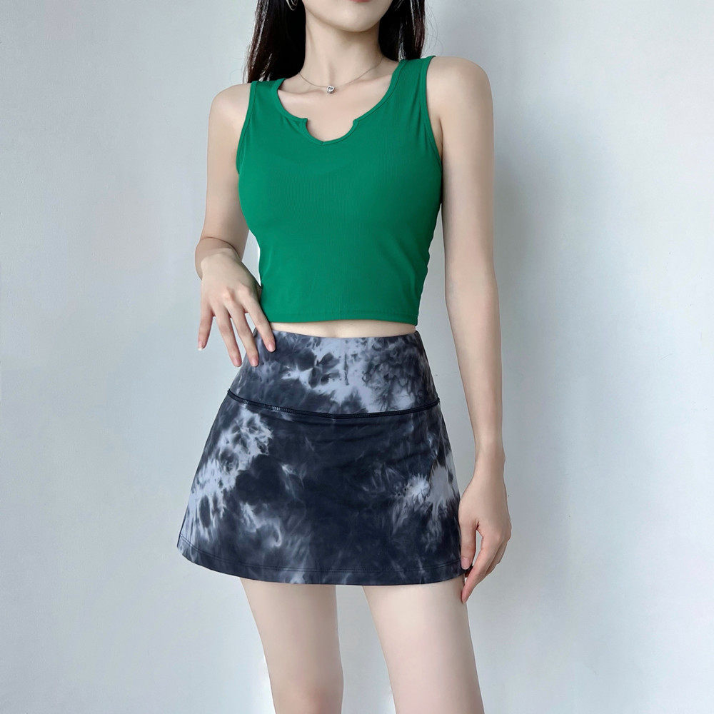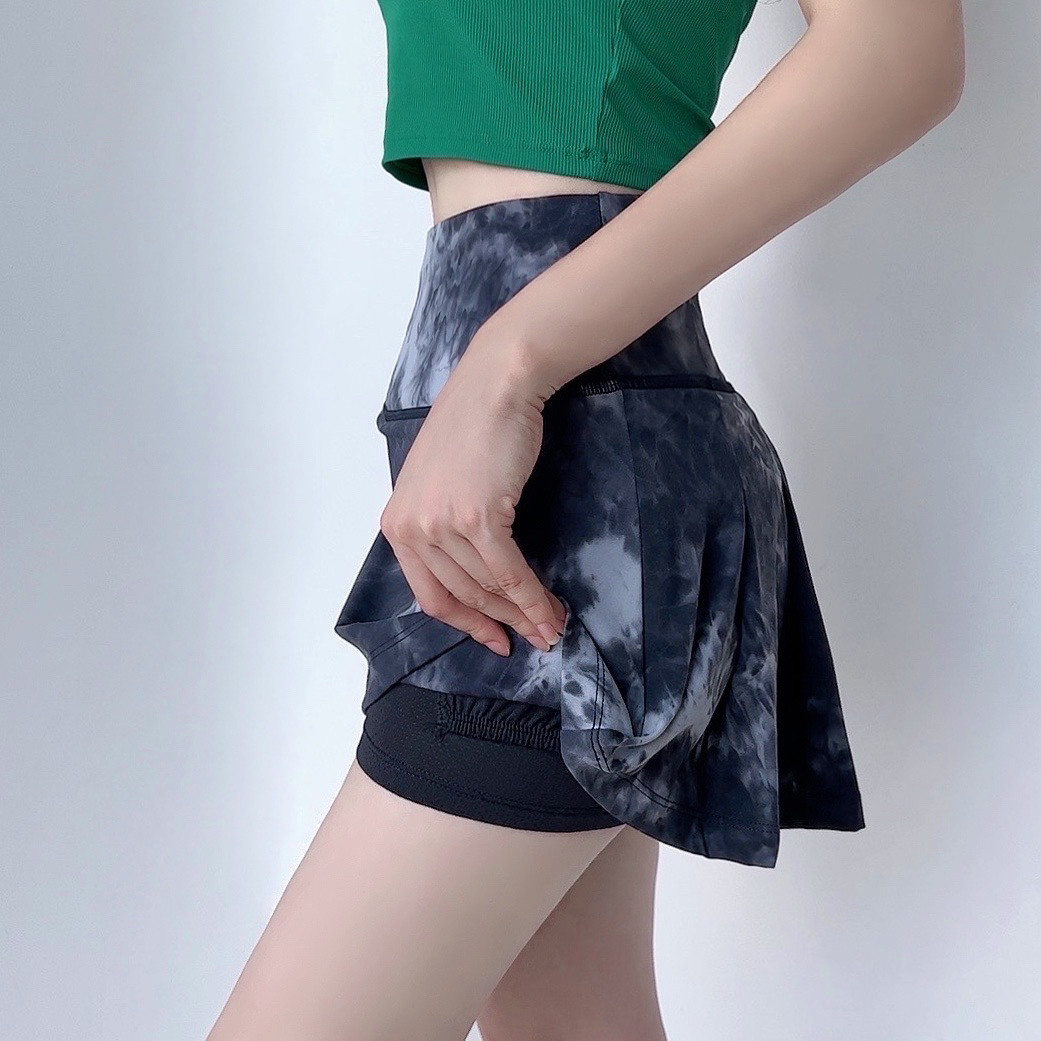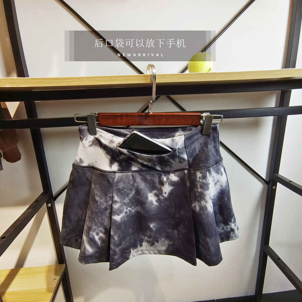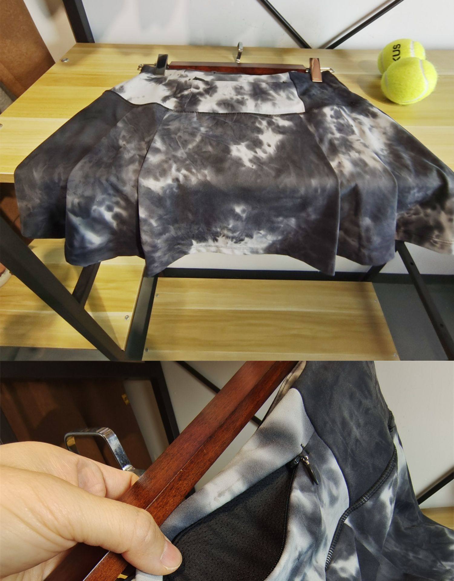 Spring and Summer New Style Short Skirt, Anti-Exposure Sports Skirt, High-Waisted Professional Sports Tennis Skirt for Women, Tie-Dye, Non-Slip, with Pockets