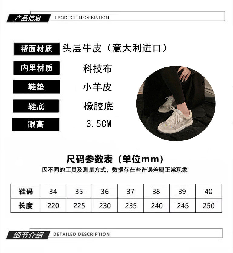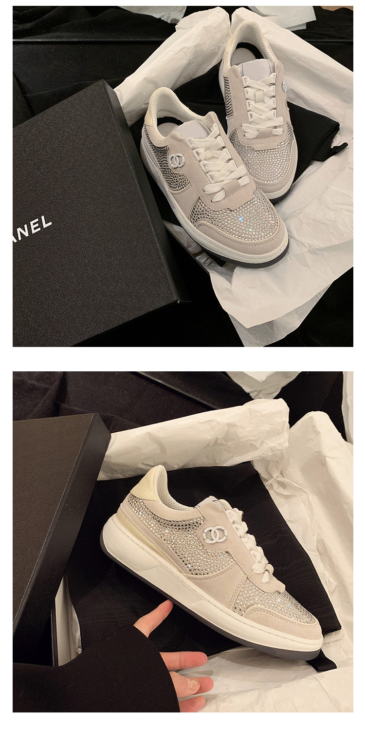 Hong Kong Style Rhinestone Thick-Soled Height-Increasing Sneakers for Women 2025 Spring and Autumn Waterproof White Lace-Up Sports Casual Shoes