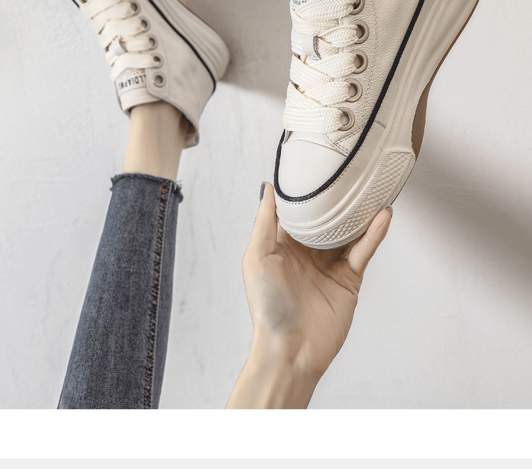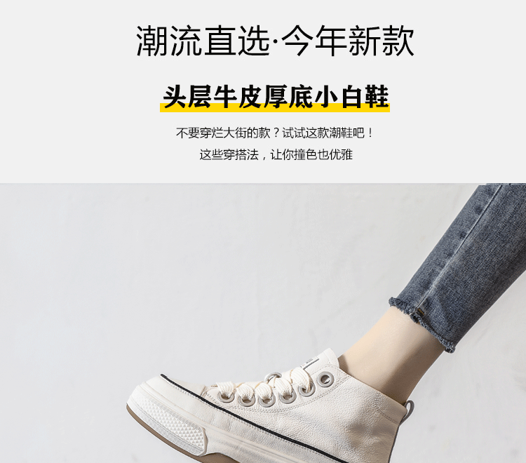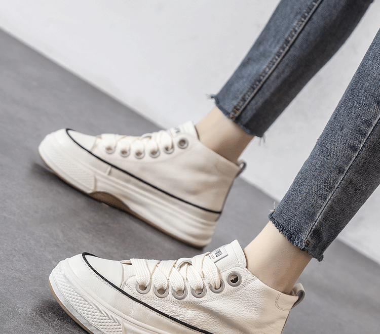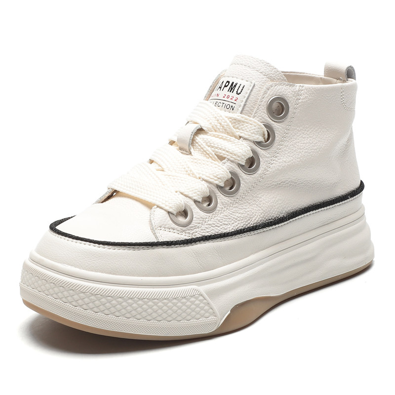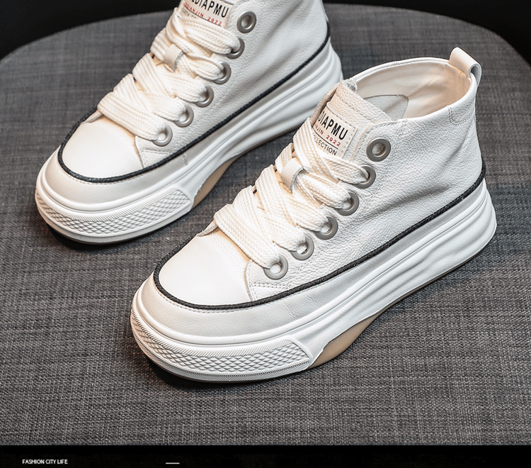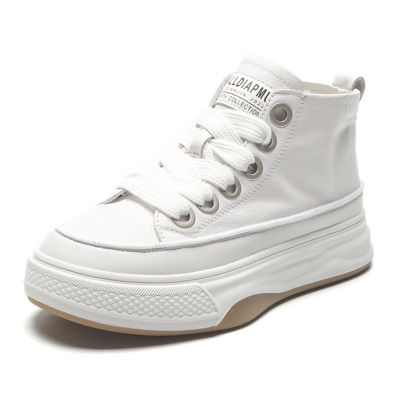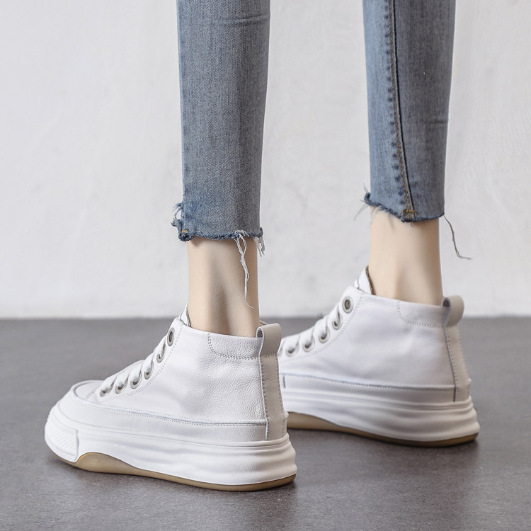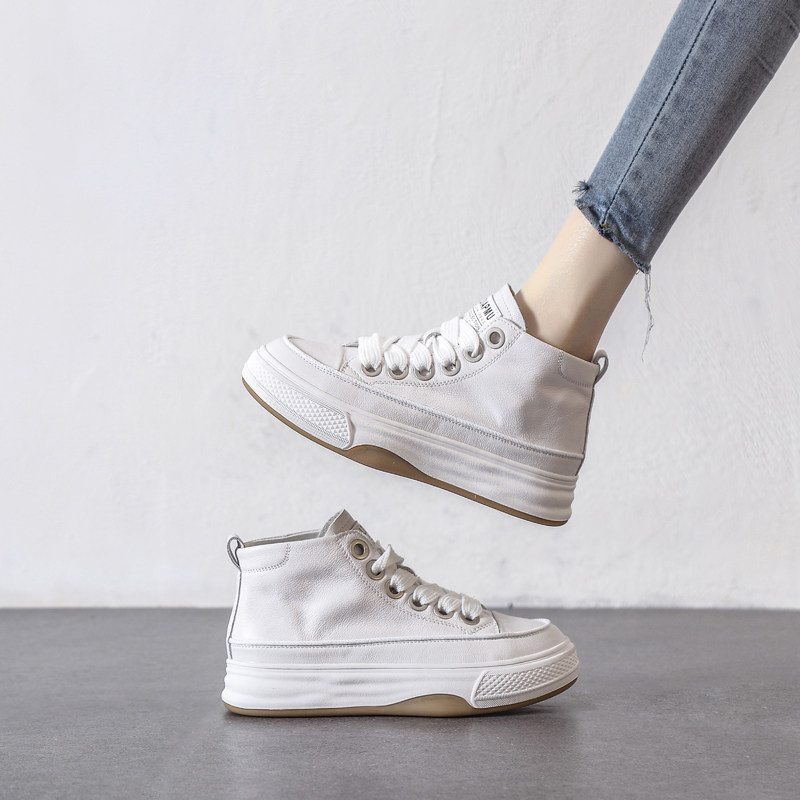 Spring Hot-Selling First-Layer Cowhide White Sneakers for Women, Genuine Leather Sneakers, 2026 New White Thick-Soled High-Top Casual Shoes