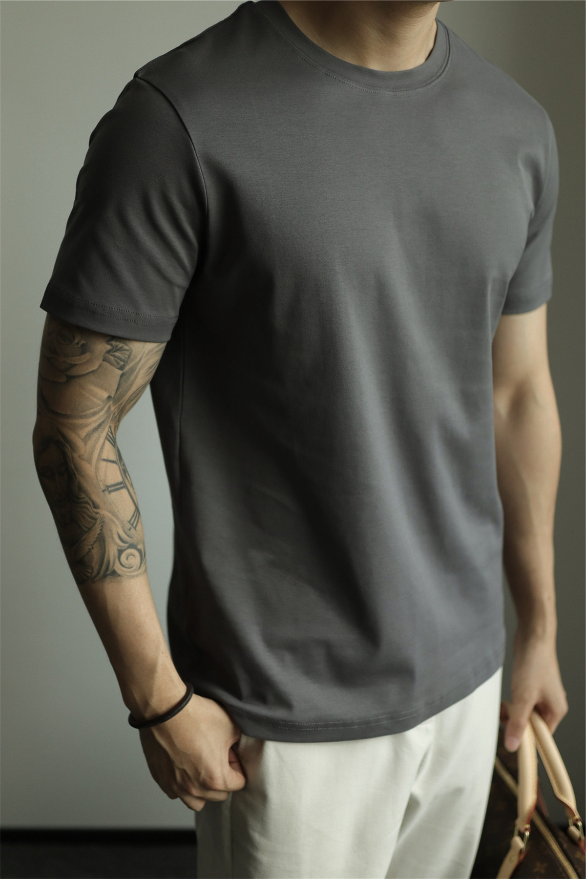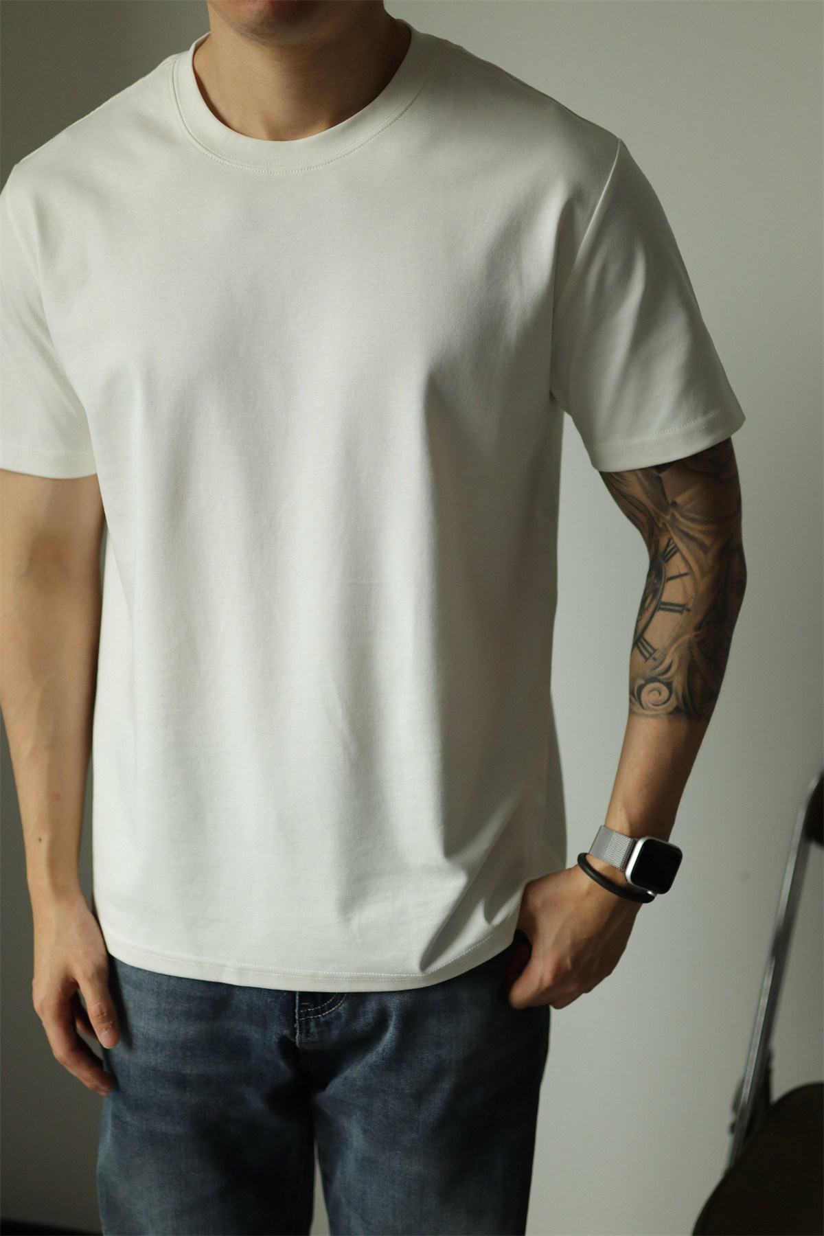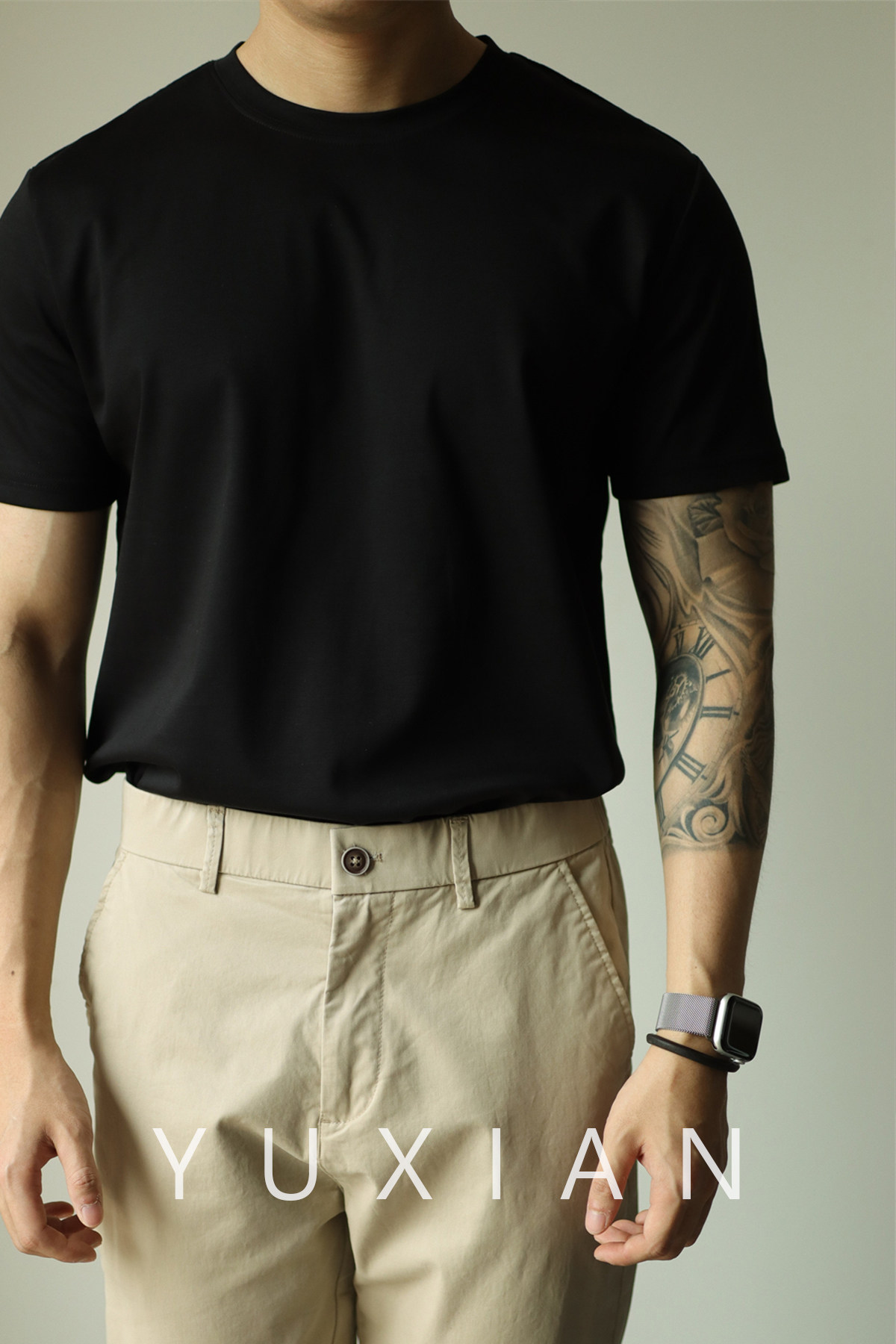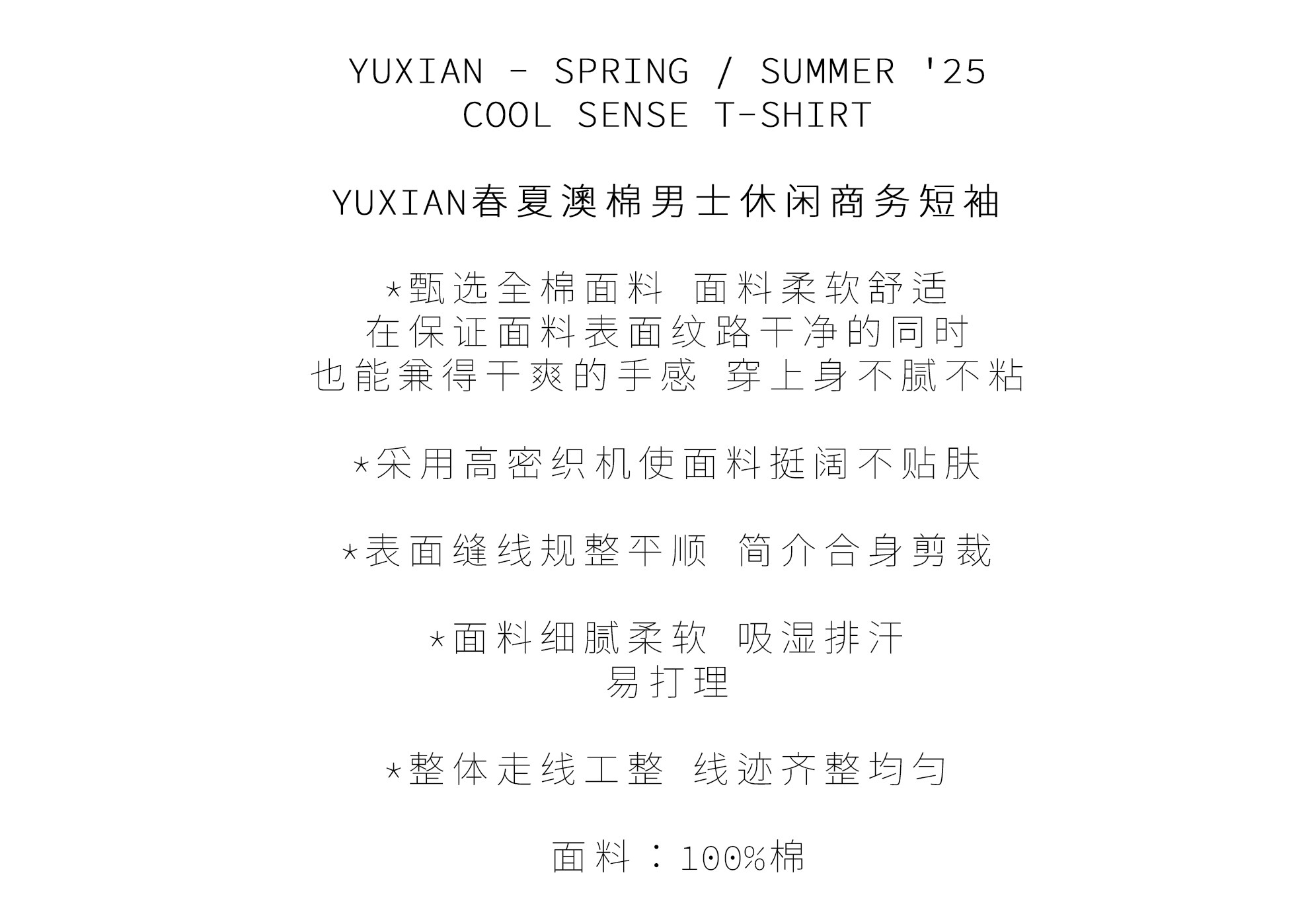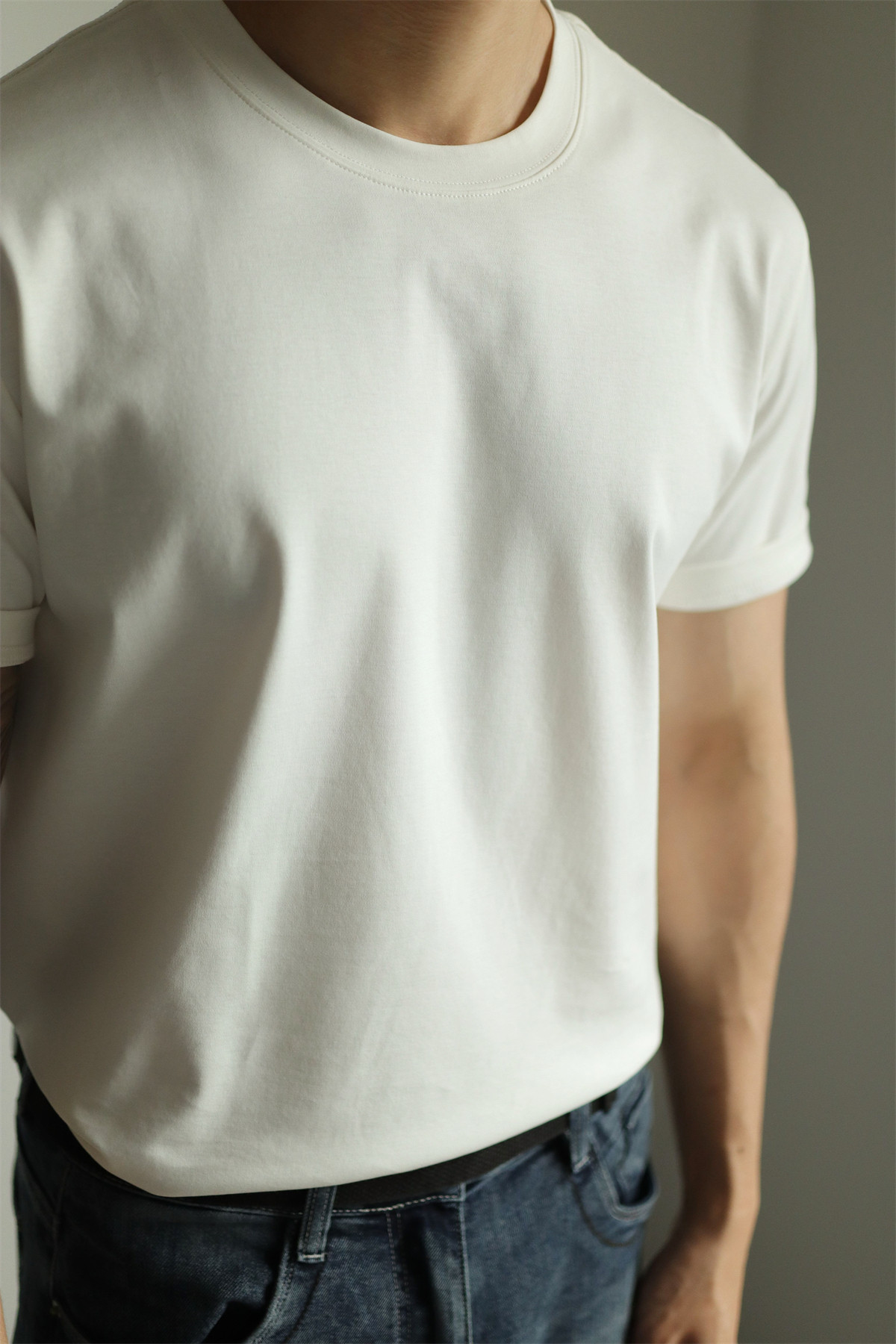Yuxian Spring/Summer New Australian Cotton Short-Sleeve Men's T-Shirt Solid Color Soft Men's Casual Base Layer Round Neck Light Business