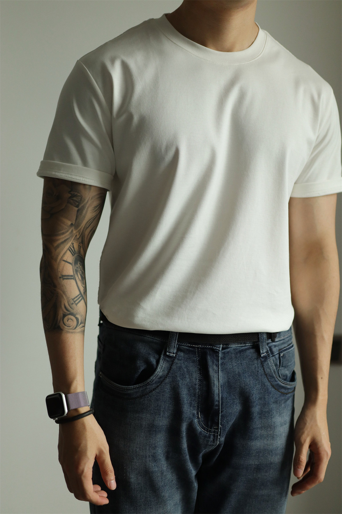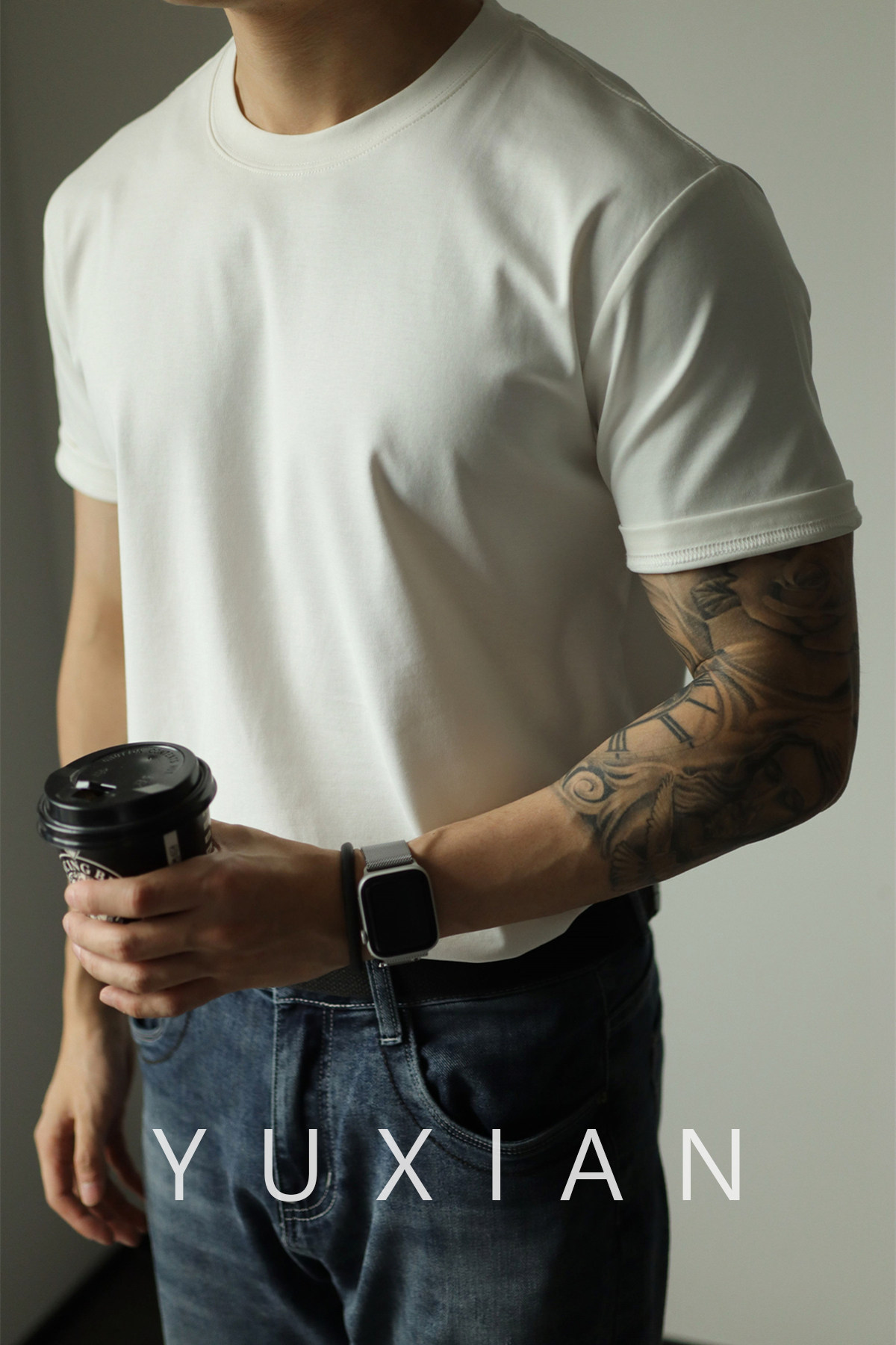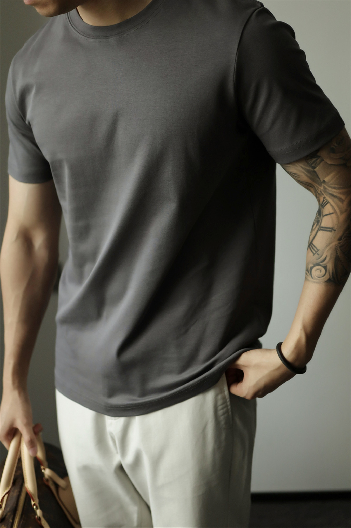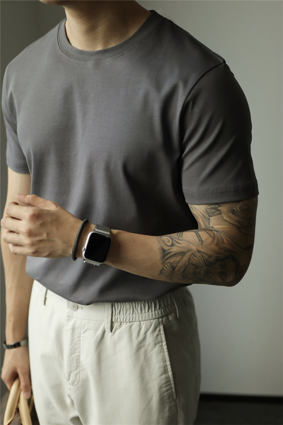 Yuxian Spring/Summer New Australian Cotton Short-Sleeve Men's T-Shirt Solid Color Soft Men's Casual Base Layer Round Neck Light Business