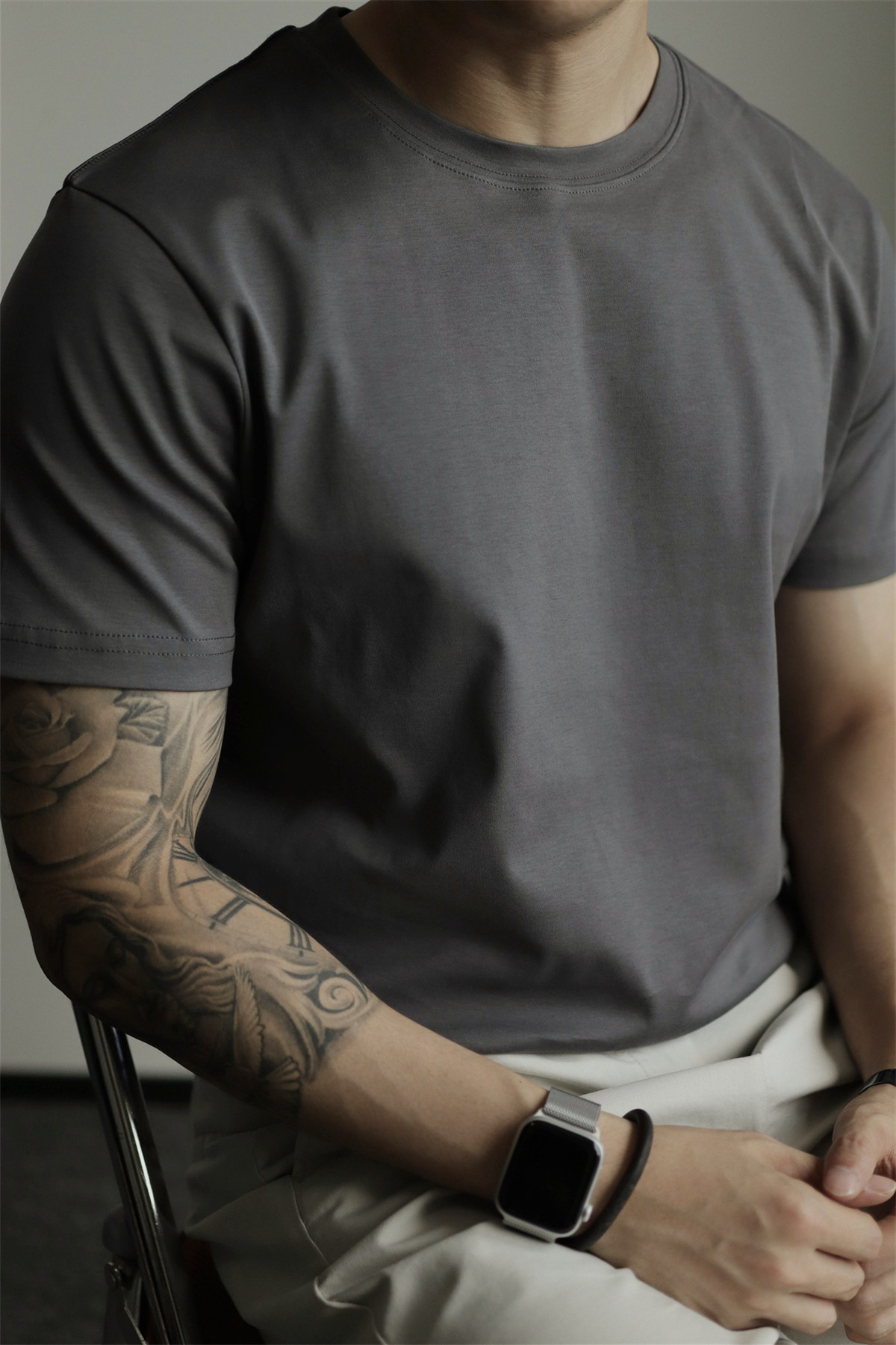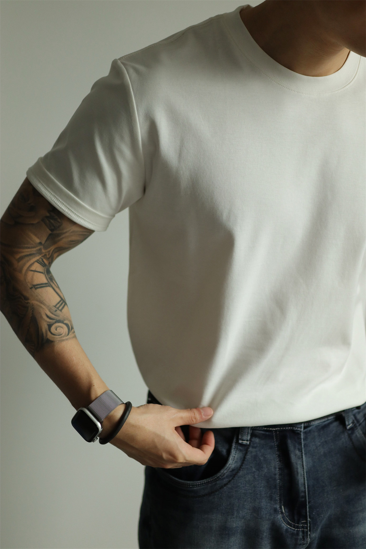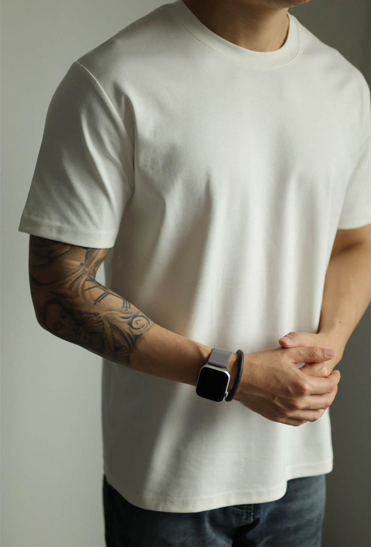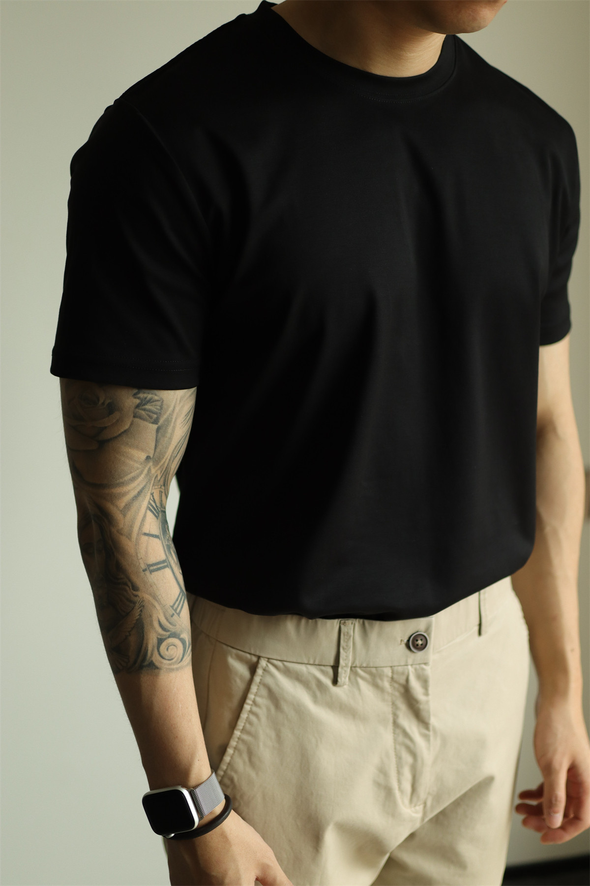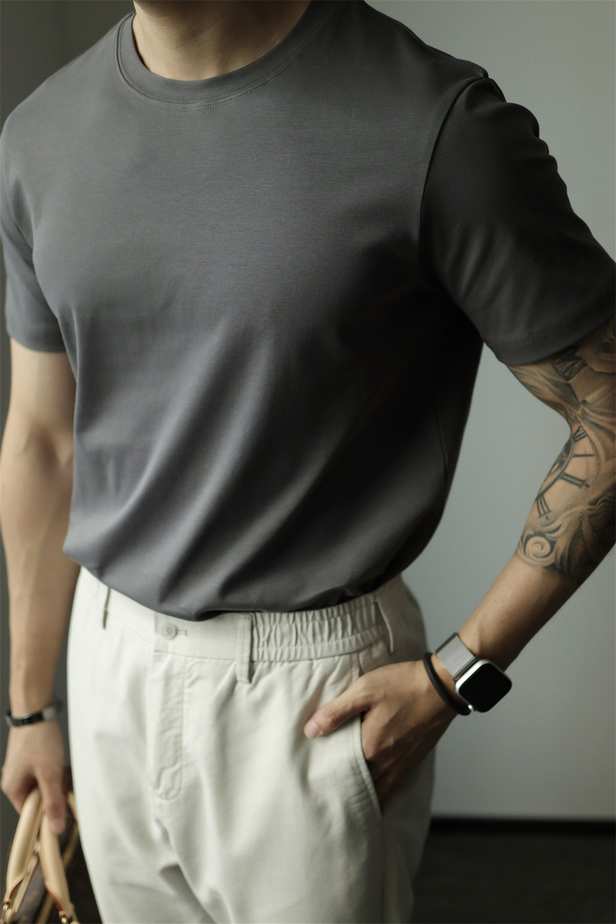 Yuxian Spring/Summer New Australian Cotton Short-Sleeve Men's T-Shirt Solid Color Soft Men's Casual Base Layer Round Neck Light Business