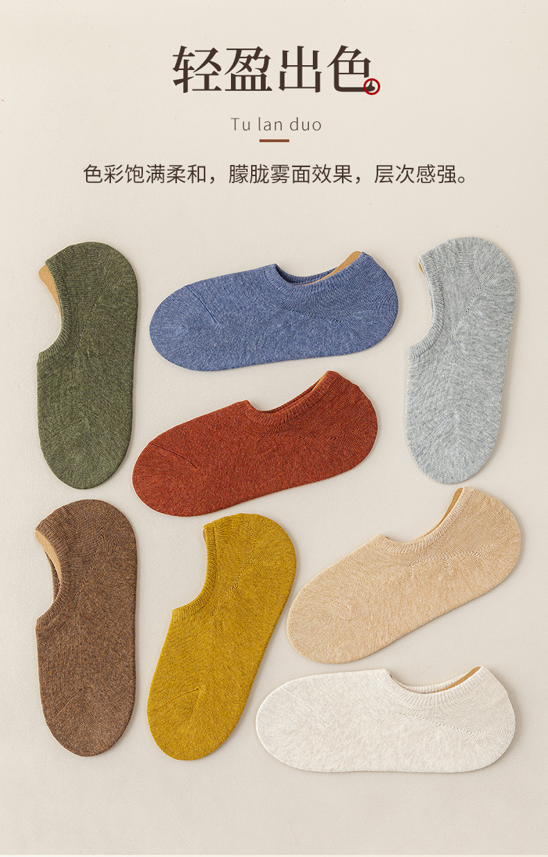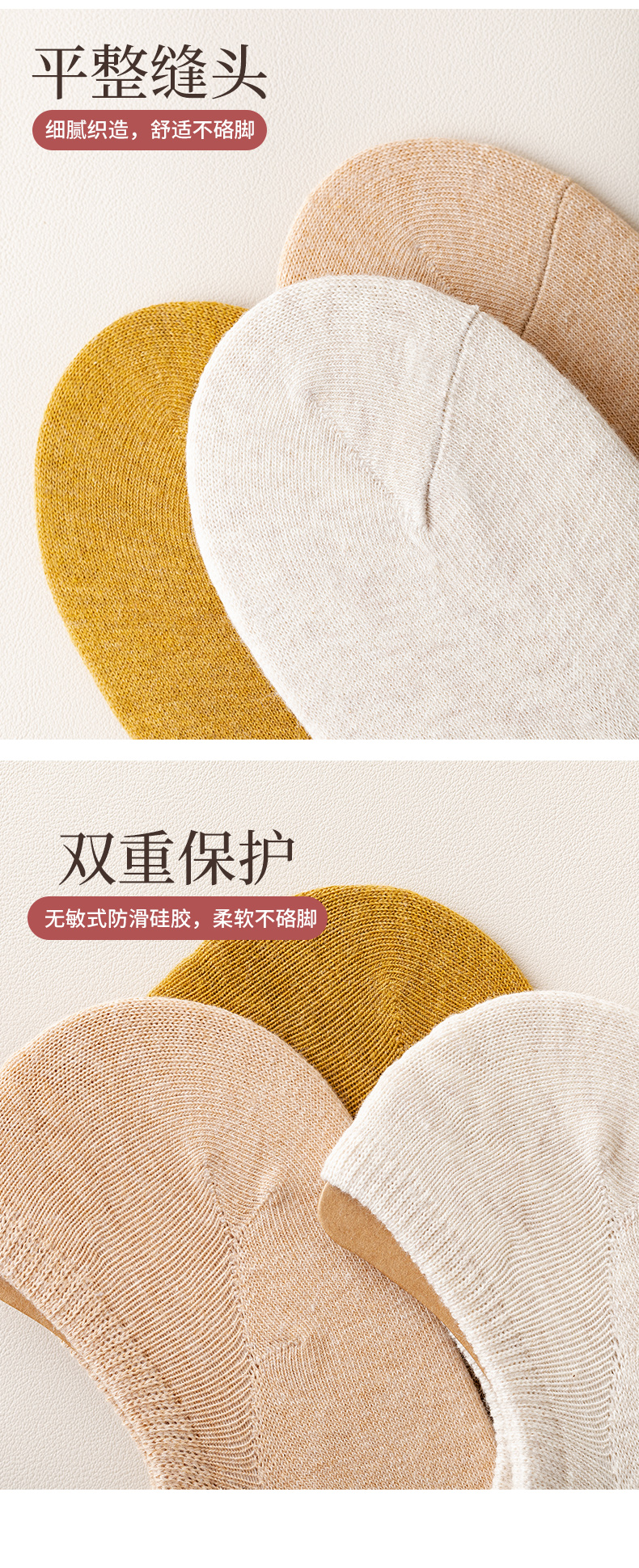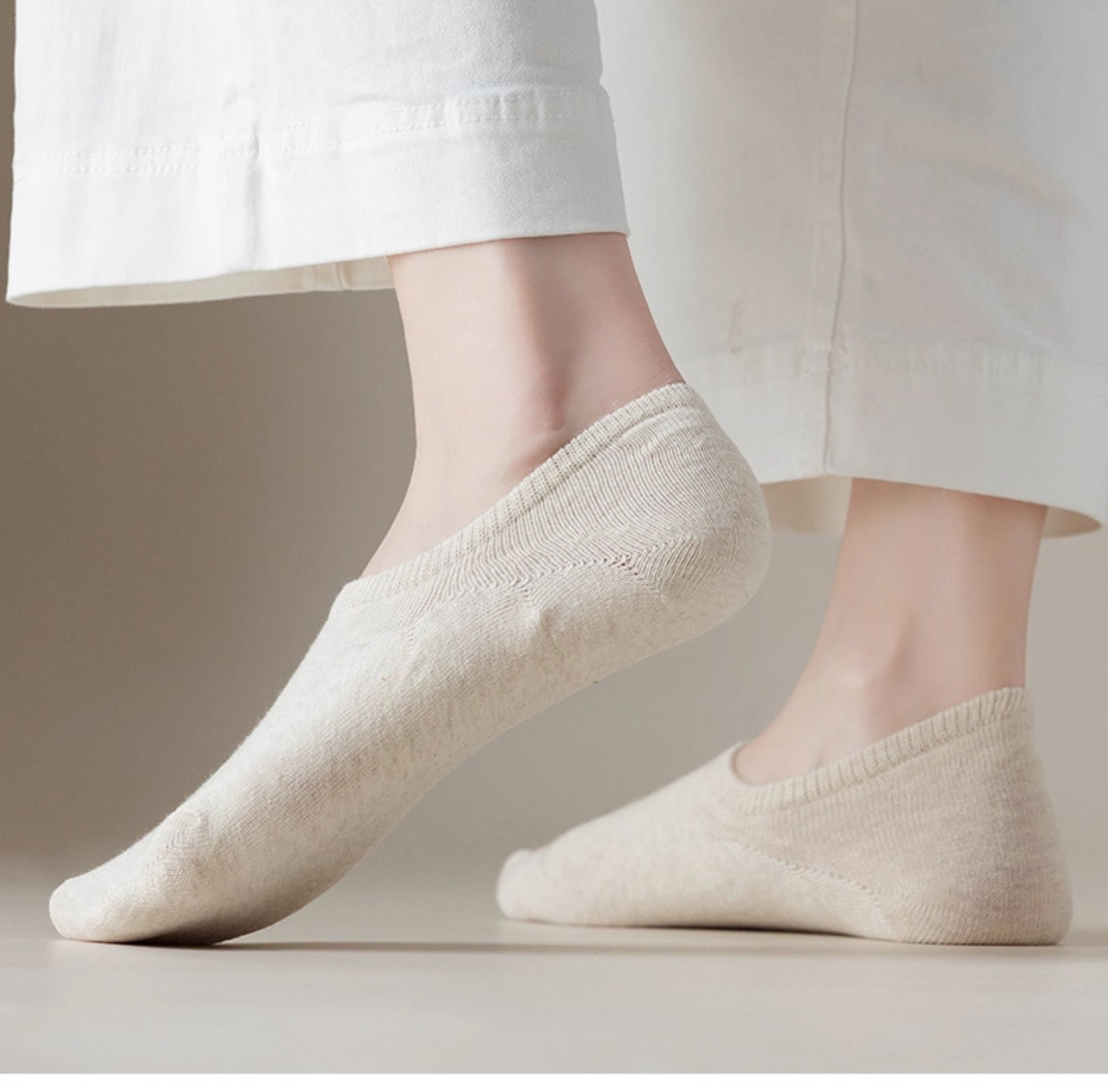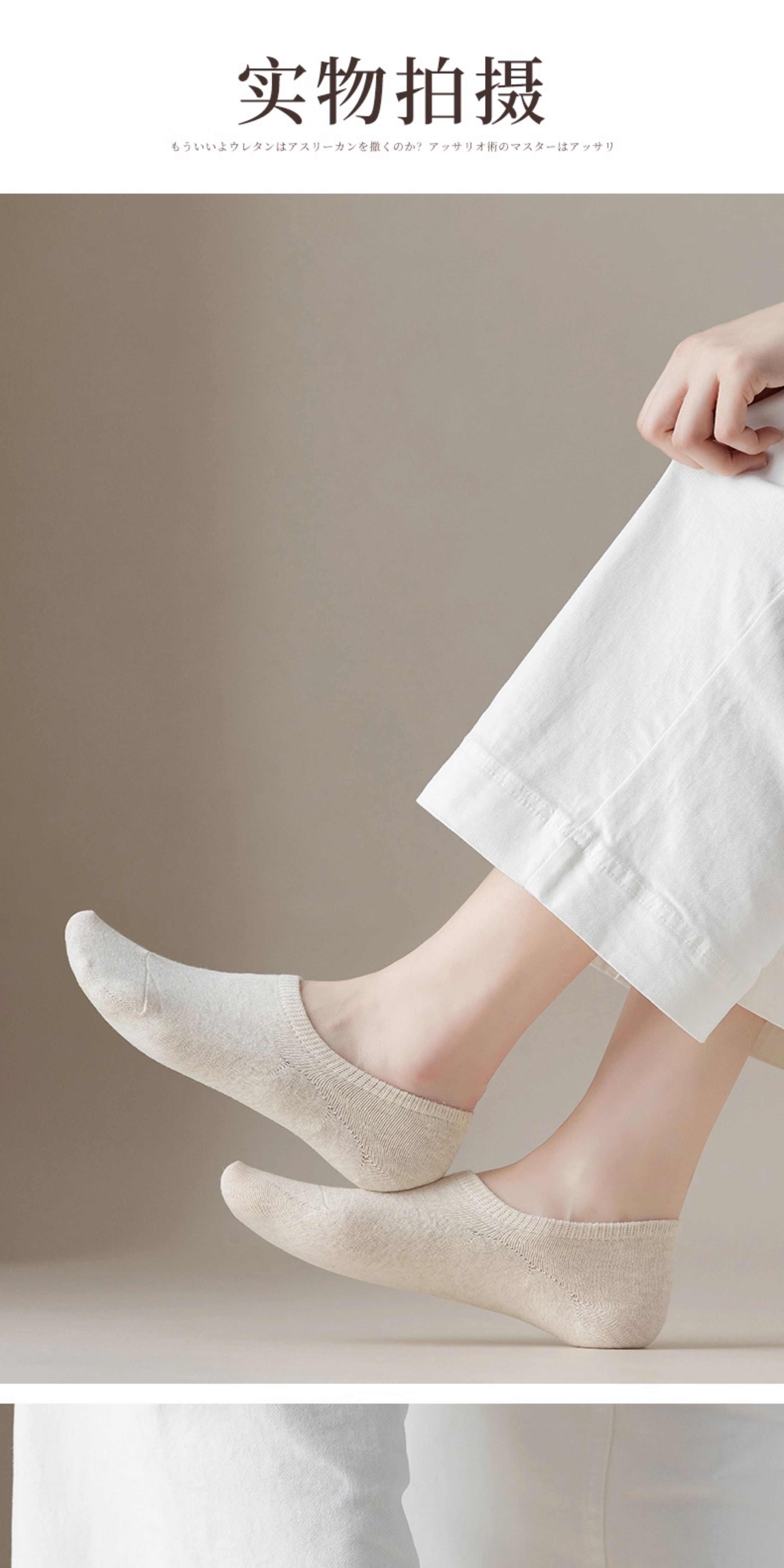Women's Cotton No-Show Socks for Spring, Autumn, and Summer, Thin, All-Cotton, Invisible, Low-Cut, Non-Slip, No-Slip Heel, Summer Socks for Women