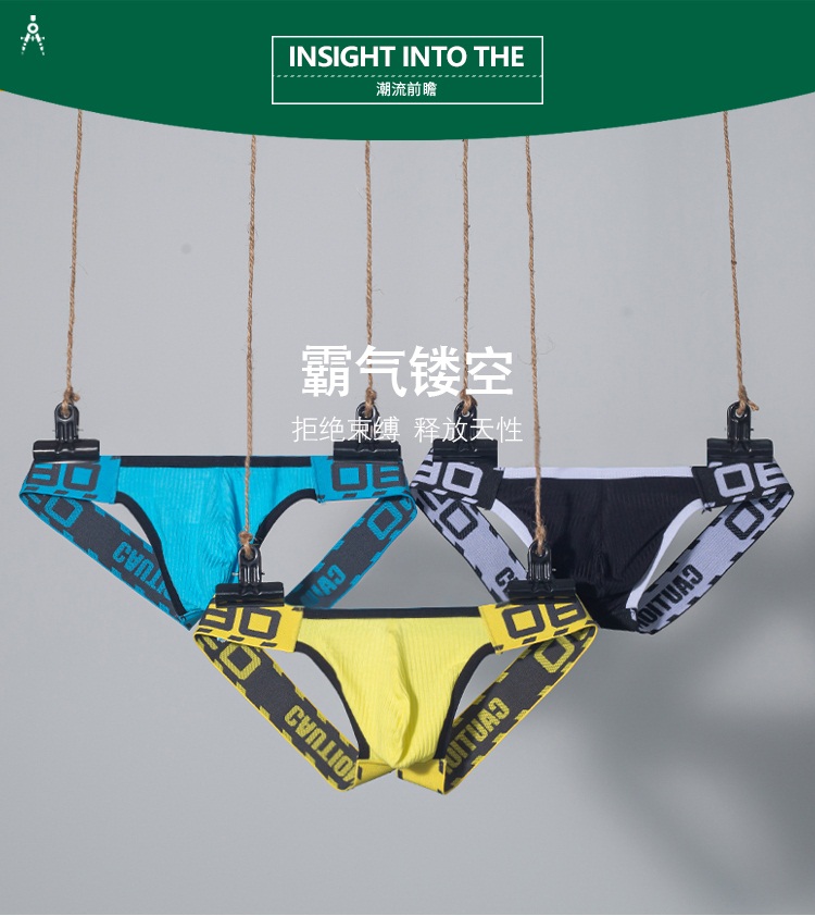 0850 Men's Thong Underwear, Cotton, Soft, Solid Color, Low Waist, Sexy, Hollow, No Waistband, Hip-Lifting, Fashionable, Sporty, for Young Men
