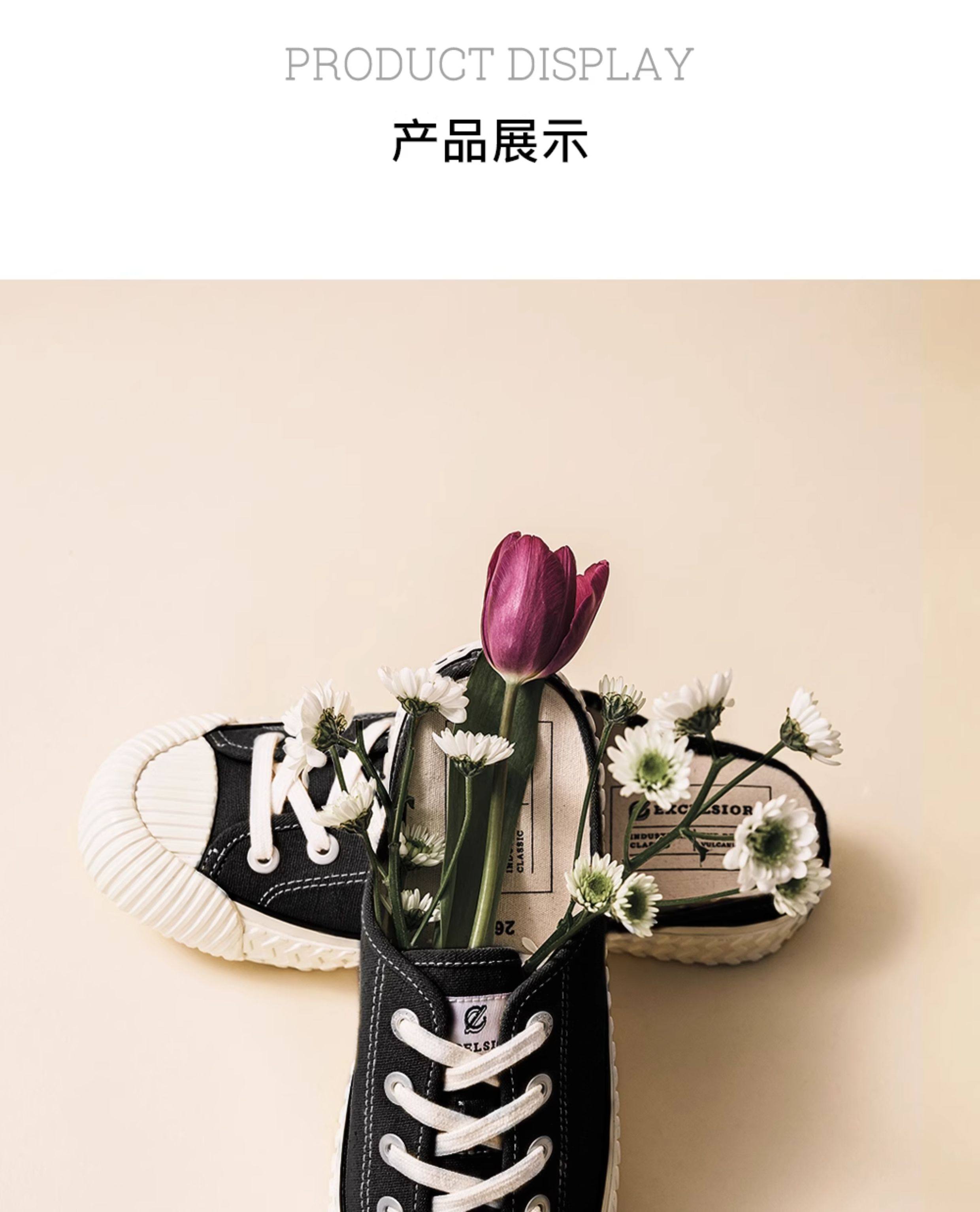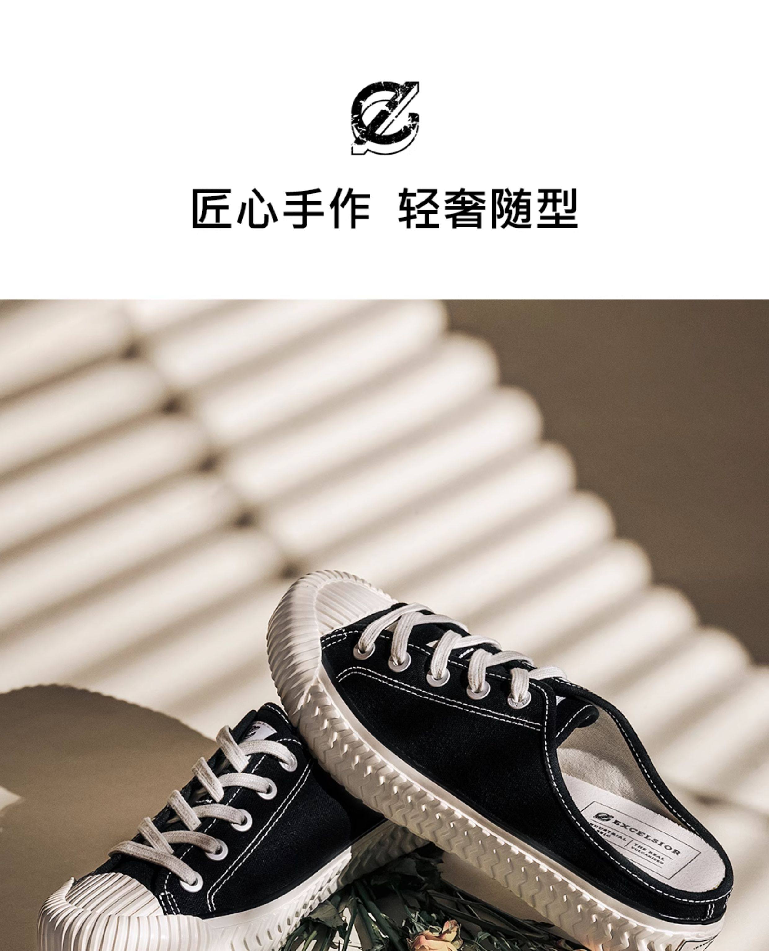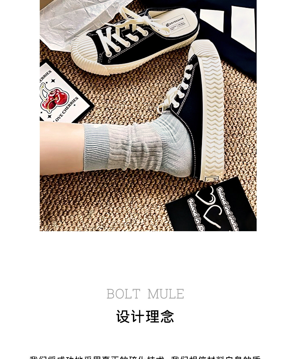 Excelsior Official Slip-On Loafers, Height-Increasing Thick-Soled Mules, Half-Slip Canvas Shoes for Women