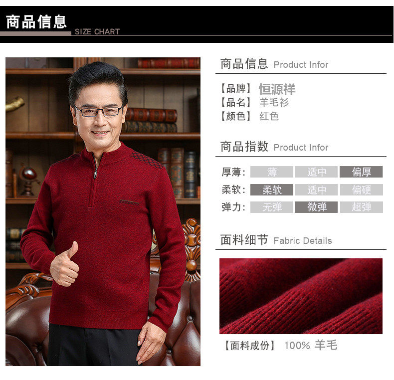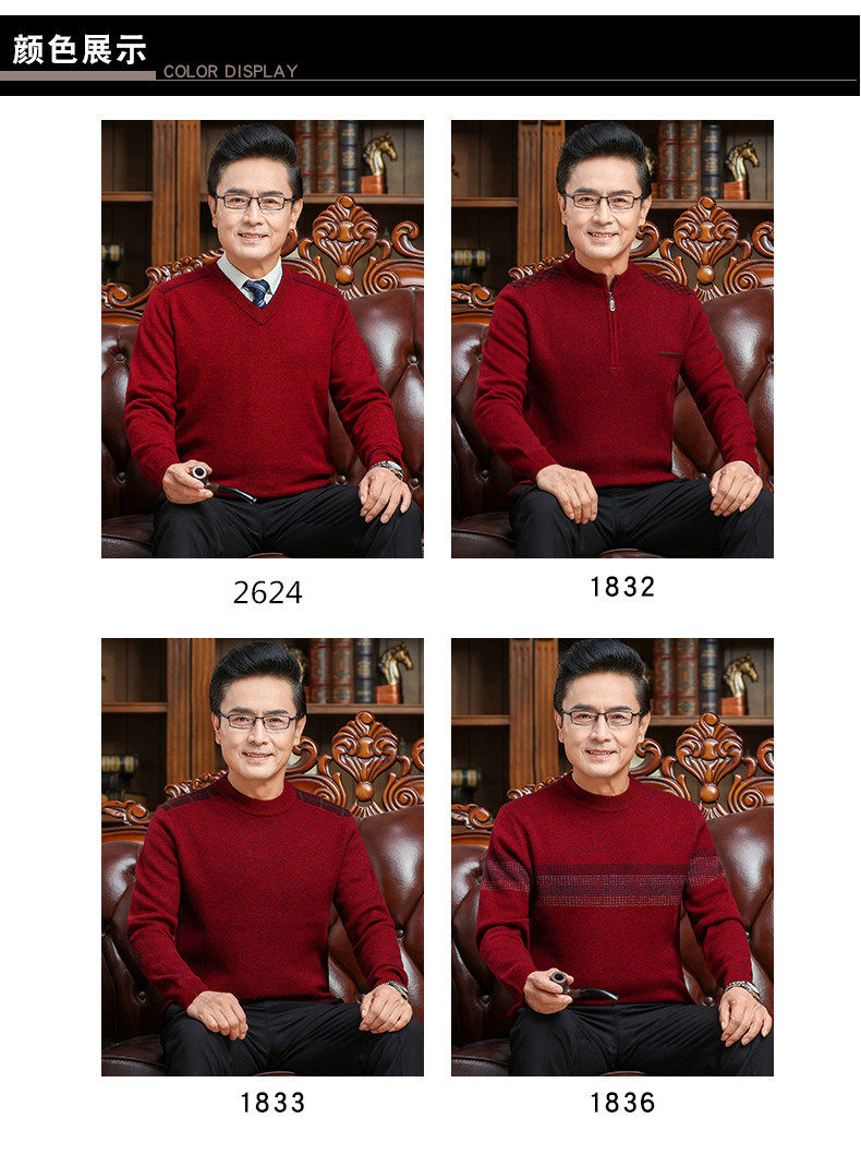 Hengyuanxiang Wool Sweater for Men, Middle-Aged and Elderly, 26Th Year of the Horse, Red Zodiac Year Clothing, Thickened and Warm Sweater, Dad's Outfit