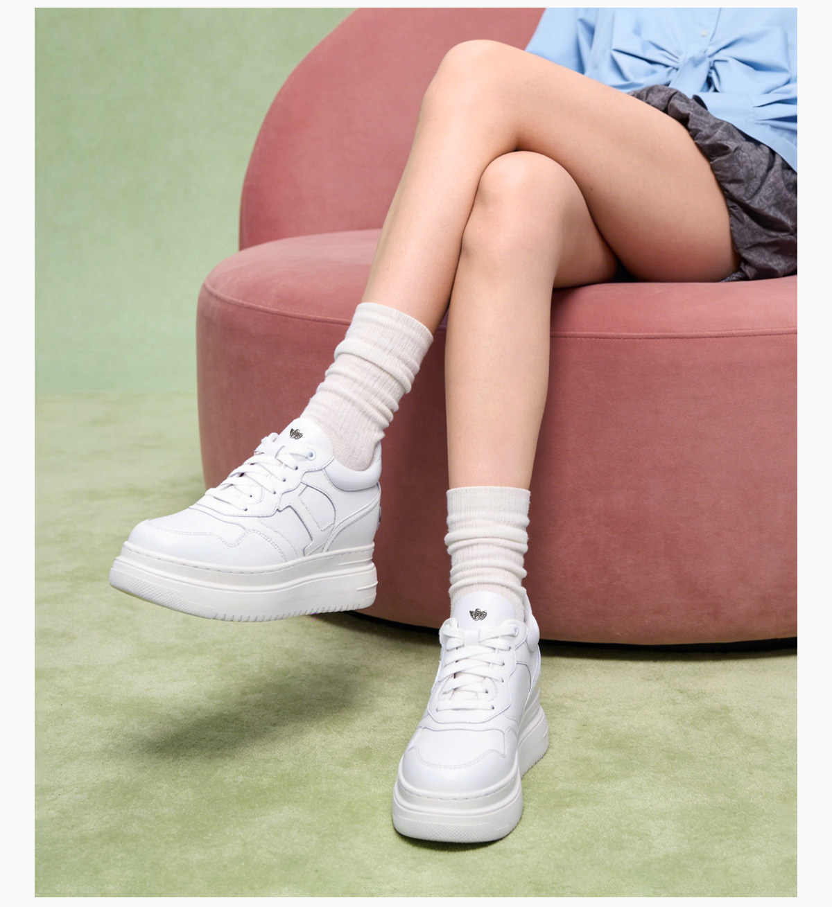 [Same Style as Celebrities] Iijin 9cm Classic Ultra-Light Thick-Soled Casual White Shoes for Women 283Ioa