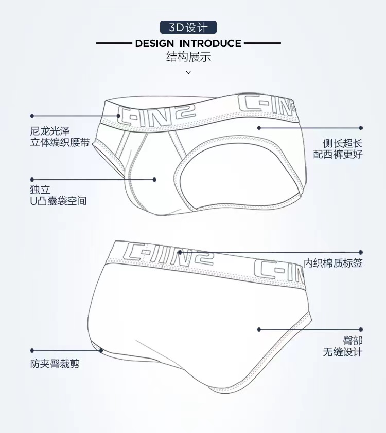 C-In2 Cool-Feeling 3-Pack Men's Pure Cotton Briefs Sexy Underwear Men's Thin Solid Color Breathable Underwear Cin2
