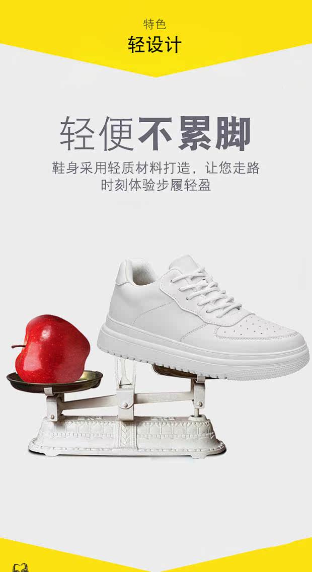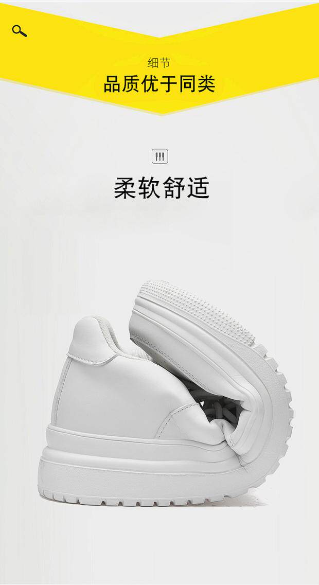Men's Leather Height-Increasing Shoes 8cm White Shoes Lightweight Breathable Mesh Casual Sneakers Inner Height Increase Men's Shoes 10cm Small Size 37