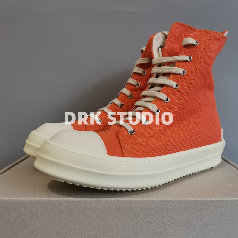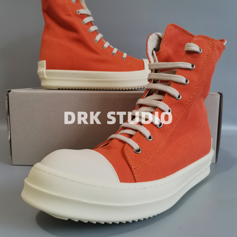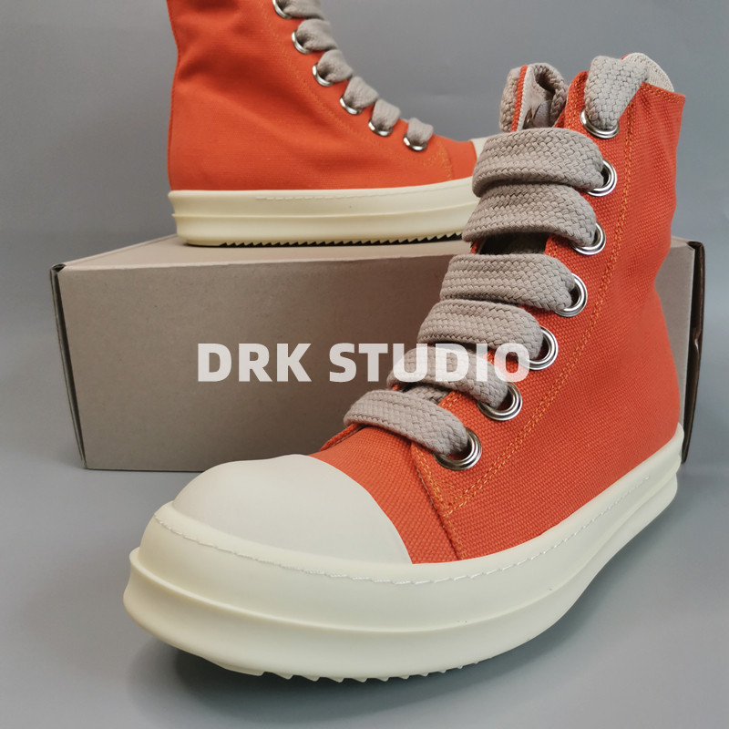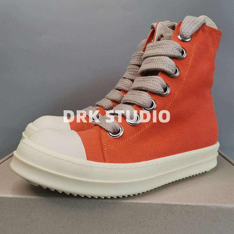 2022 New Style Orange Canvas Shoes with Patch on the Back, Thick Laces, High-Top Lace-Up Shoes, Unisex Couple Shoes