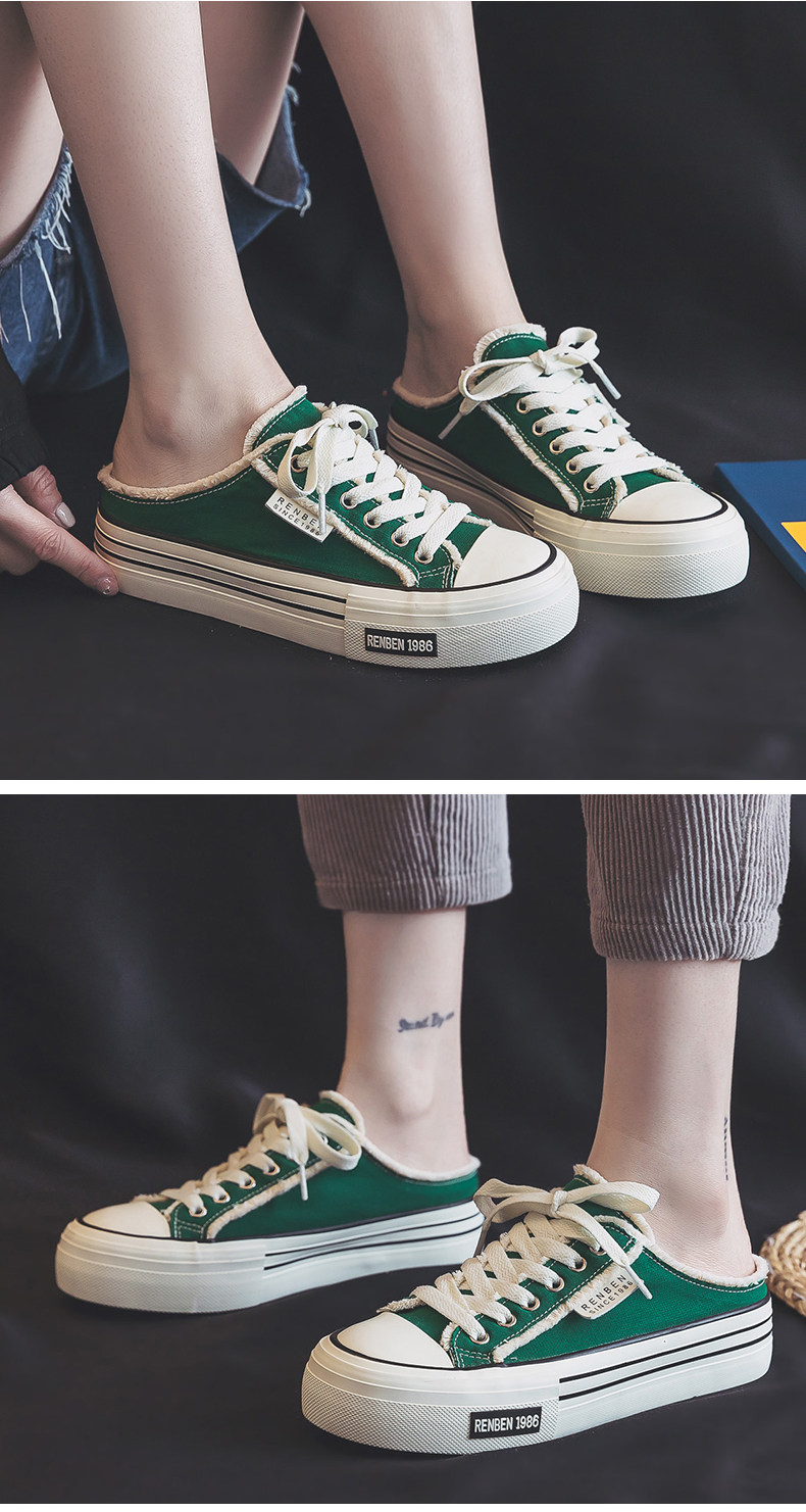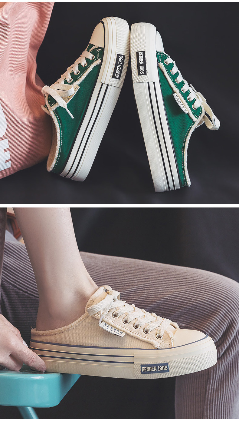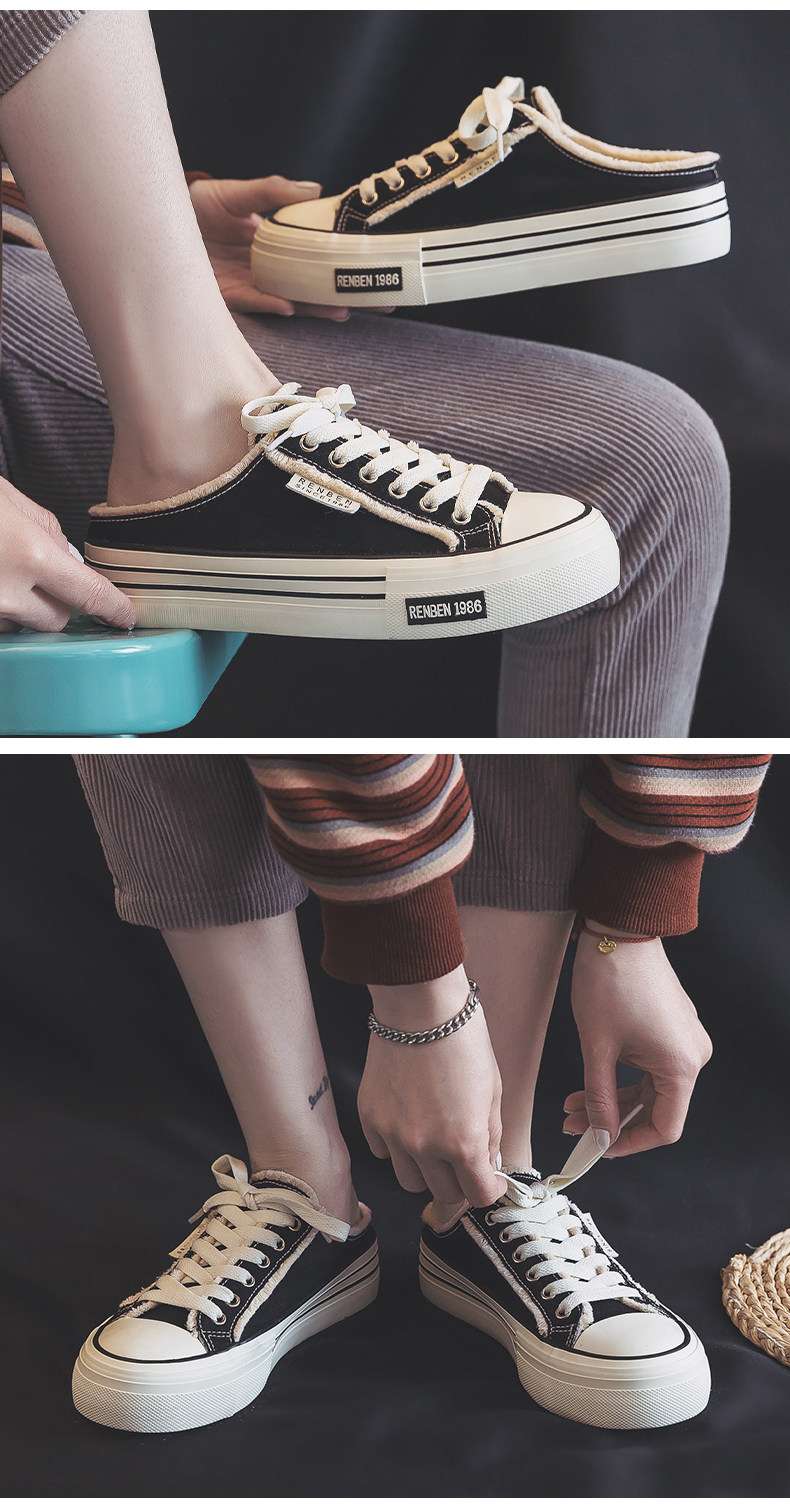 Renben Half-Slip Canvas Shoes for Women, 2026 New Spring Model, Versatile Thick-Soled Niche Lazy Shoes for Outdoor Wear