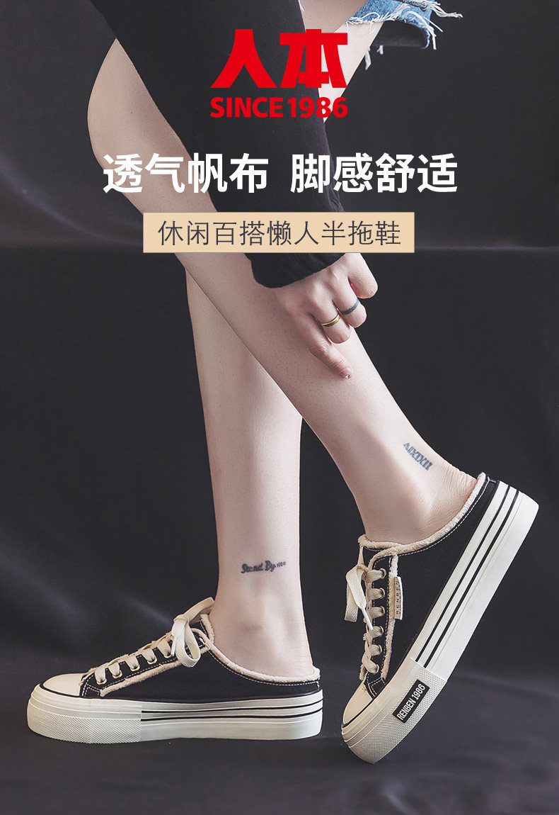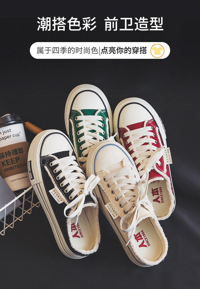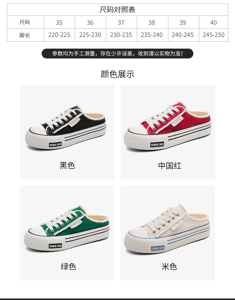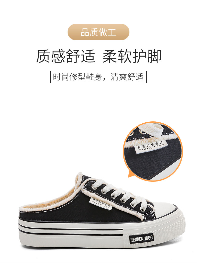 Renben Half-Slip Canvas Shoes for Women, 2026 New Spring Model, Versatile Thick-Soled Niche Lazy Shoes for Outdoor Wear