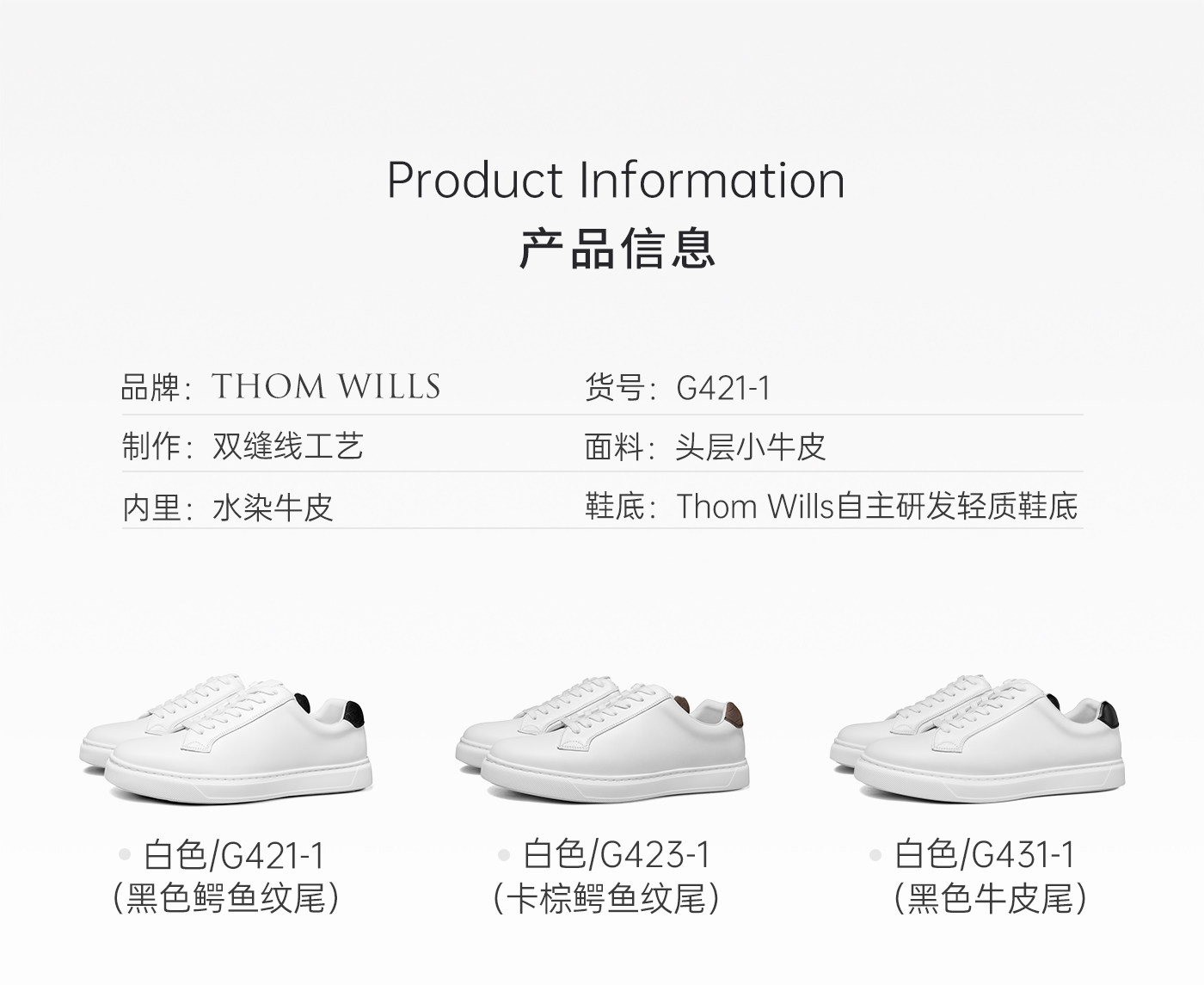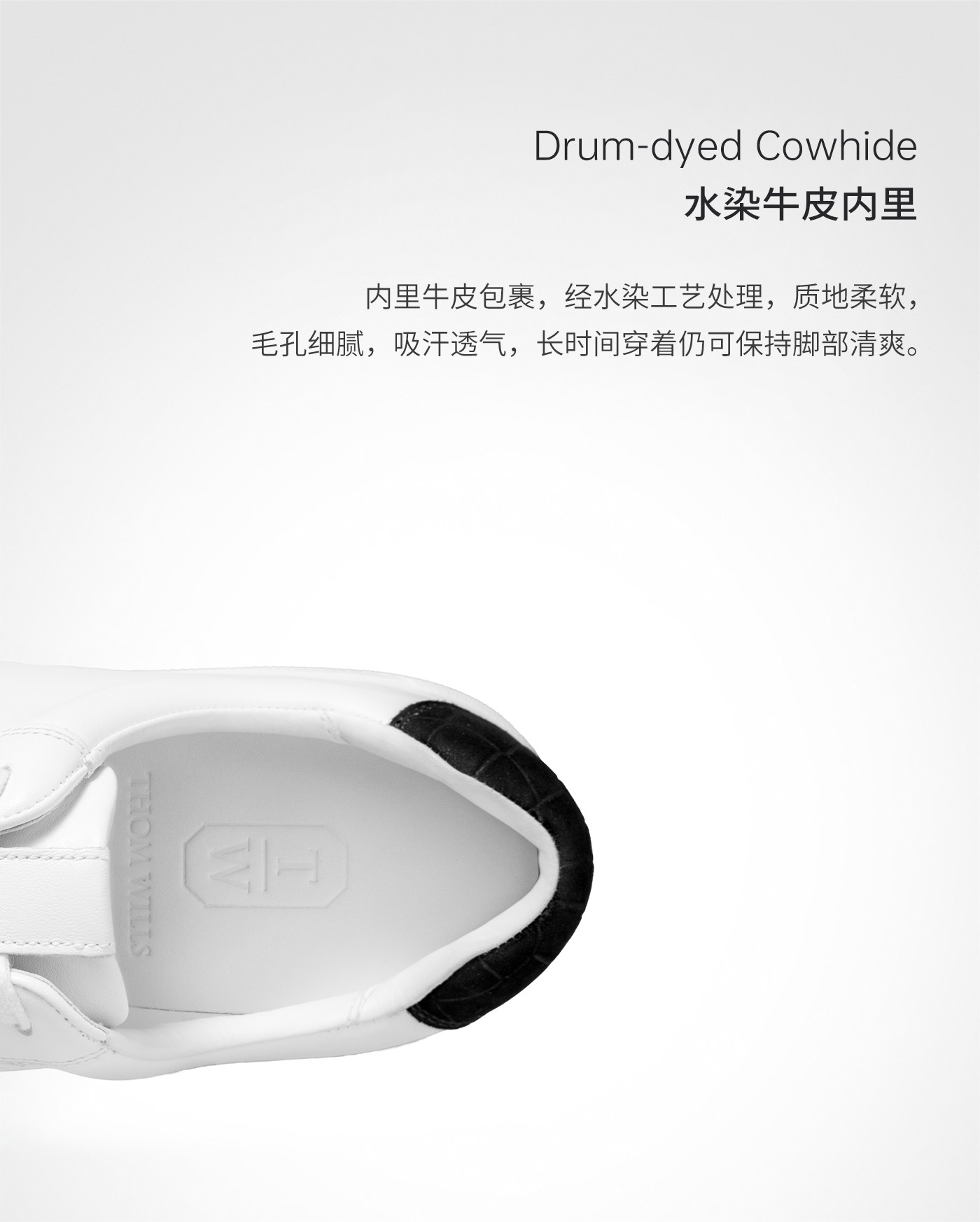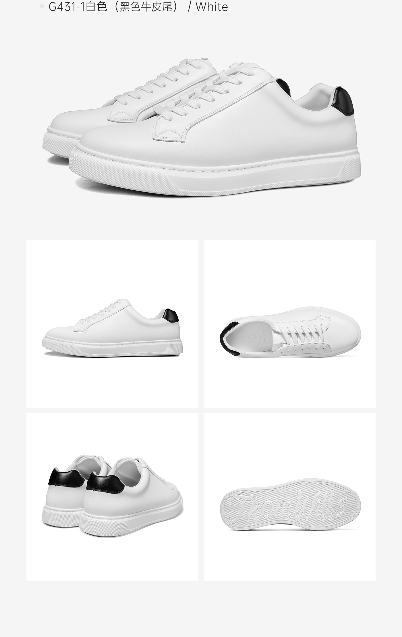 Thomwills Men's Shoes Genuine Leather White Sneakers Men's Low-Top Black-Tipped Soft-Soled Casual White Sneakers Winter Versatile