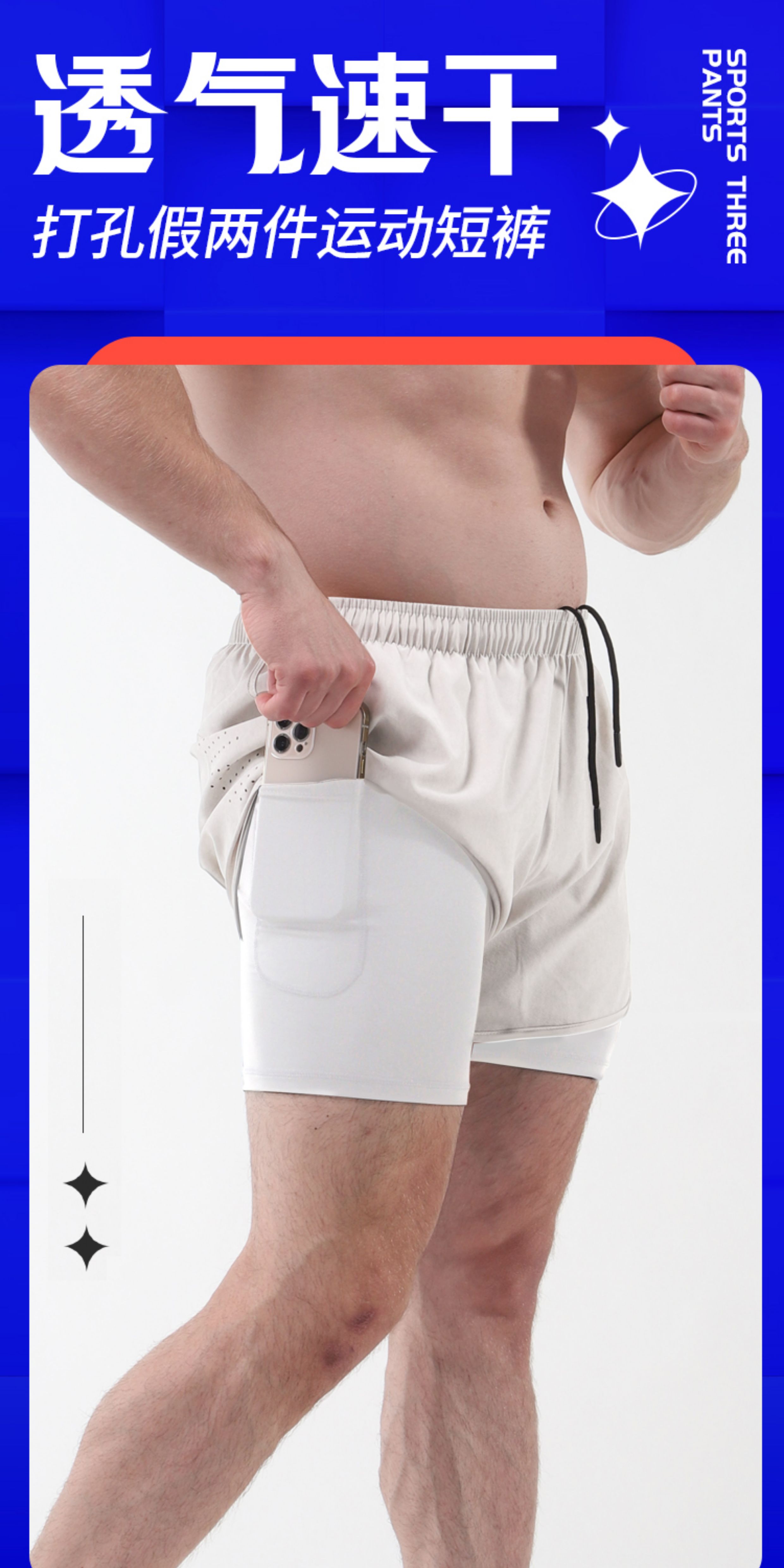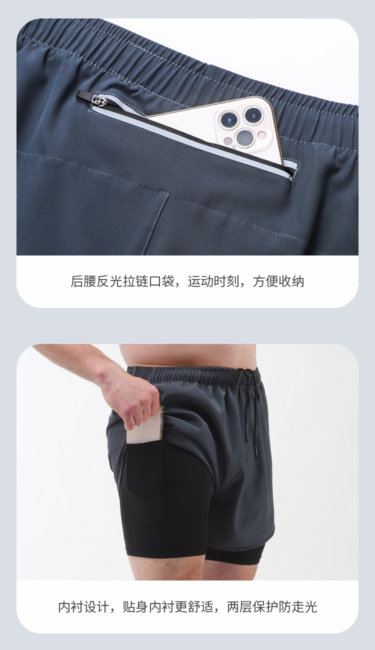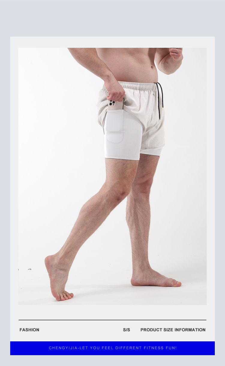 Men's Running Shorts, Professional Marathon Track and Field Three-Quarter Pants with Lining, Double-Layer Pants for Sports and Fitness, Can Hold a Phone
