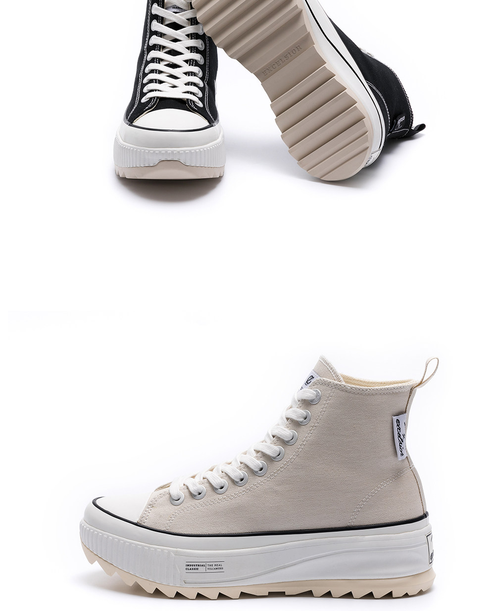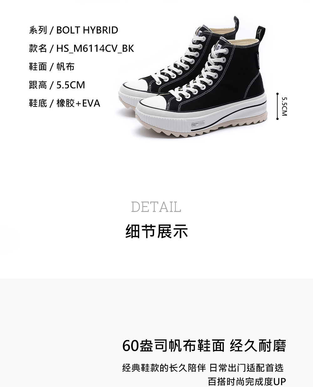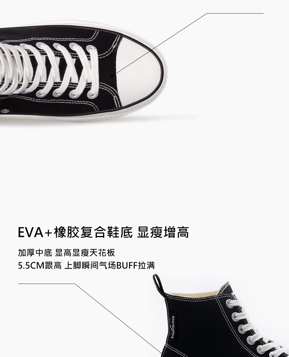 Excelsior Official Black Women's Sneakers, Height-Increasing Casual Shoes, Thick-Soled High-Top Canvas Shoes