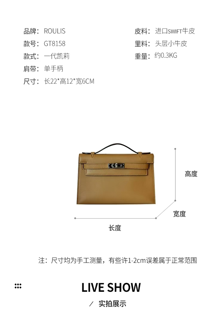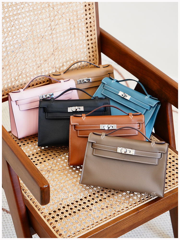 Teacher Lu's Handmade | Wax Thread Hand-Sewn Swift Cowhide Mini22 First Generation Kelly Bag Handbag Evening Bag