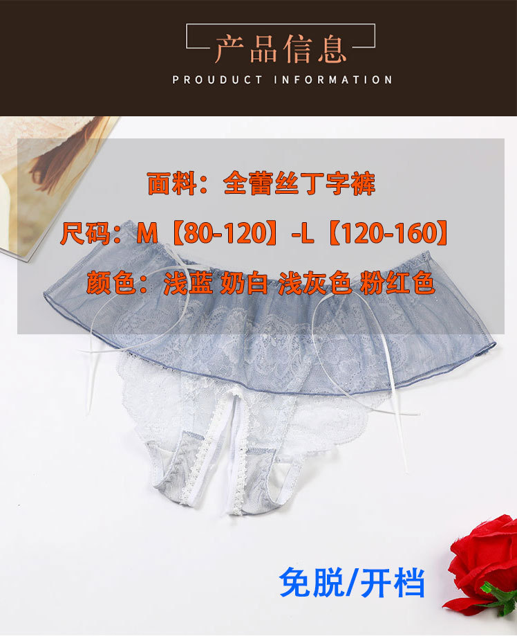 Women's Outdoor No-Removal Sex-Friendly Comfortable Mesh Panties for Couples, Thong, Thin Open-Crotch Pants with Holes