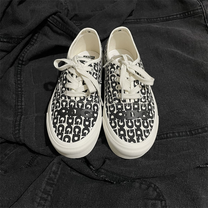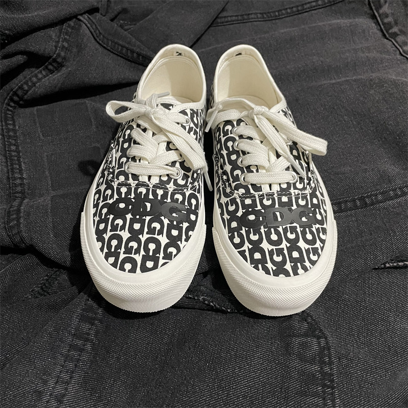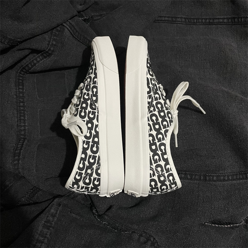 Cdg Co-Branded Graffiti Sneakers with All-Over Letter Print, Black and White Low-Top Canvas Shoes for Men and Women, Couple Style, Casual High Street