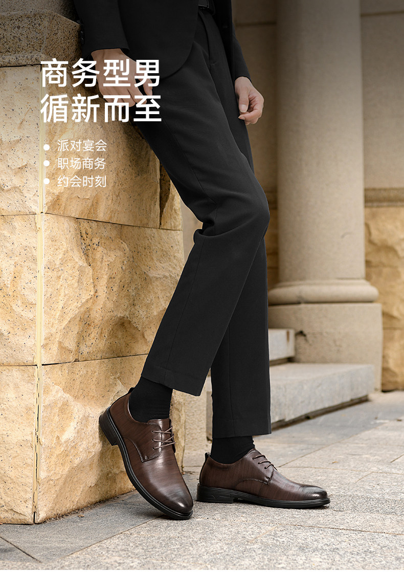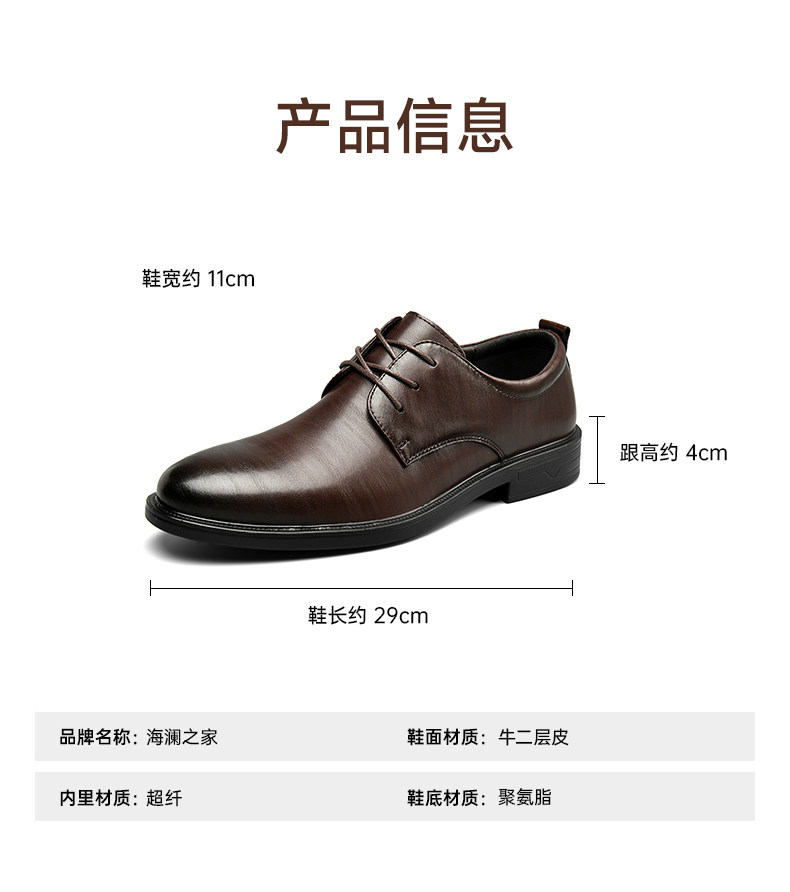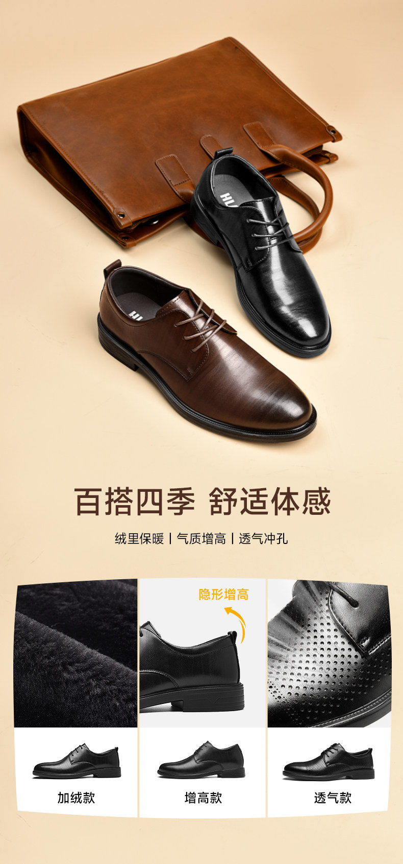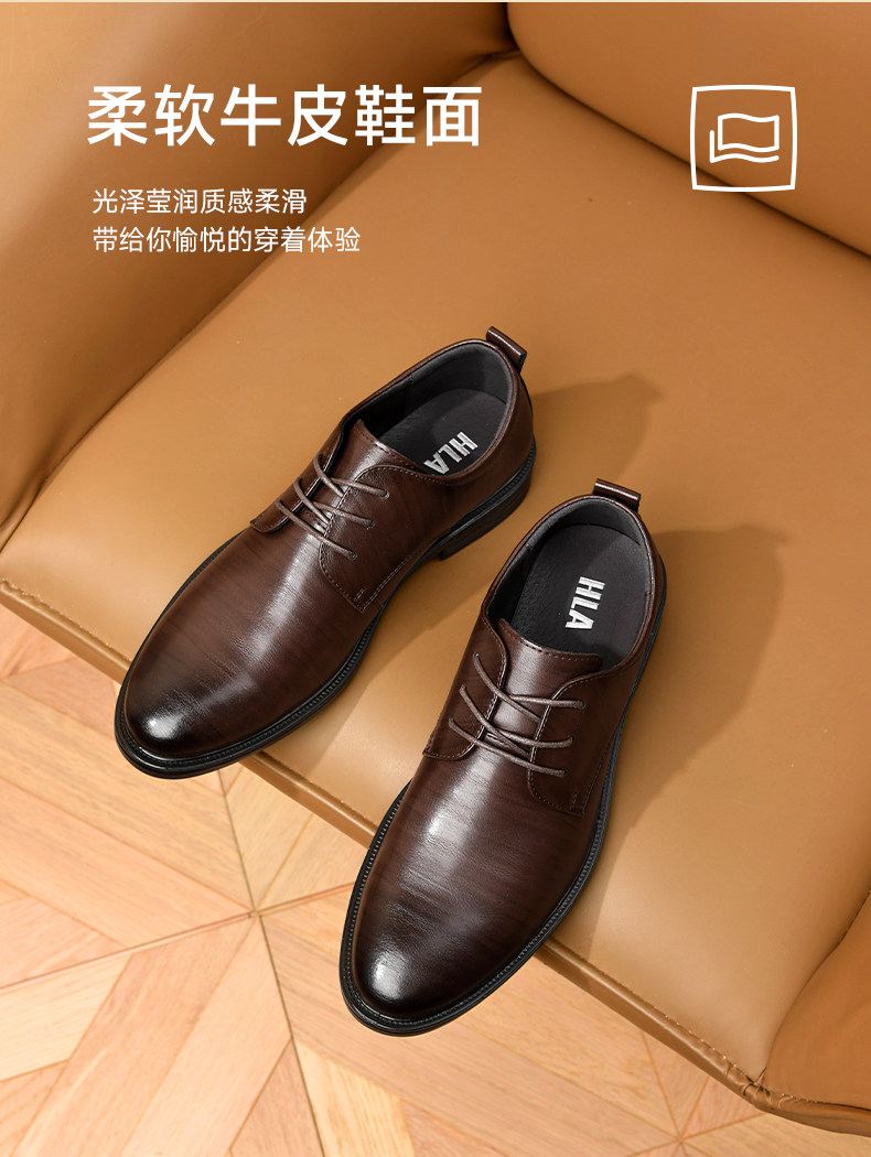Heilan House Men's Leather Shoes, Business Formal Wear, 2026 New Classic Breathable Work Shoes with Hidden Height Increase, Wedding Derby Shoes