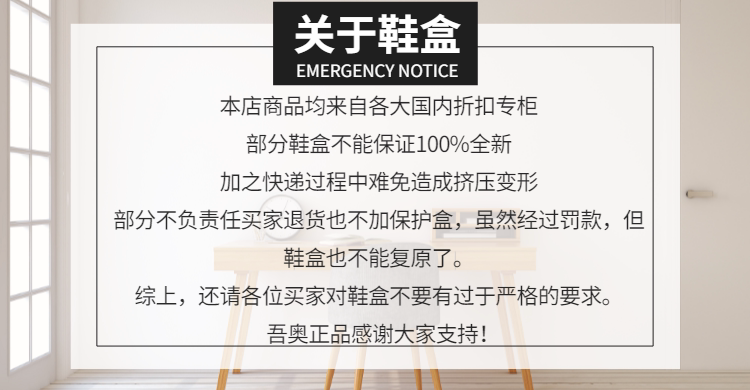 商品附属物(鞋盒或者服装吊牌)也不能保证全新完美,