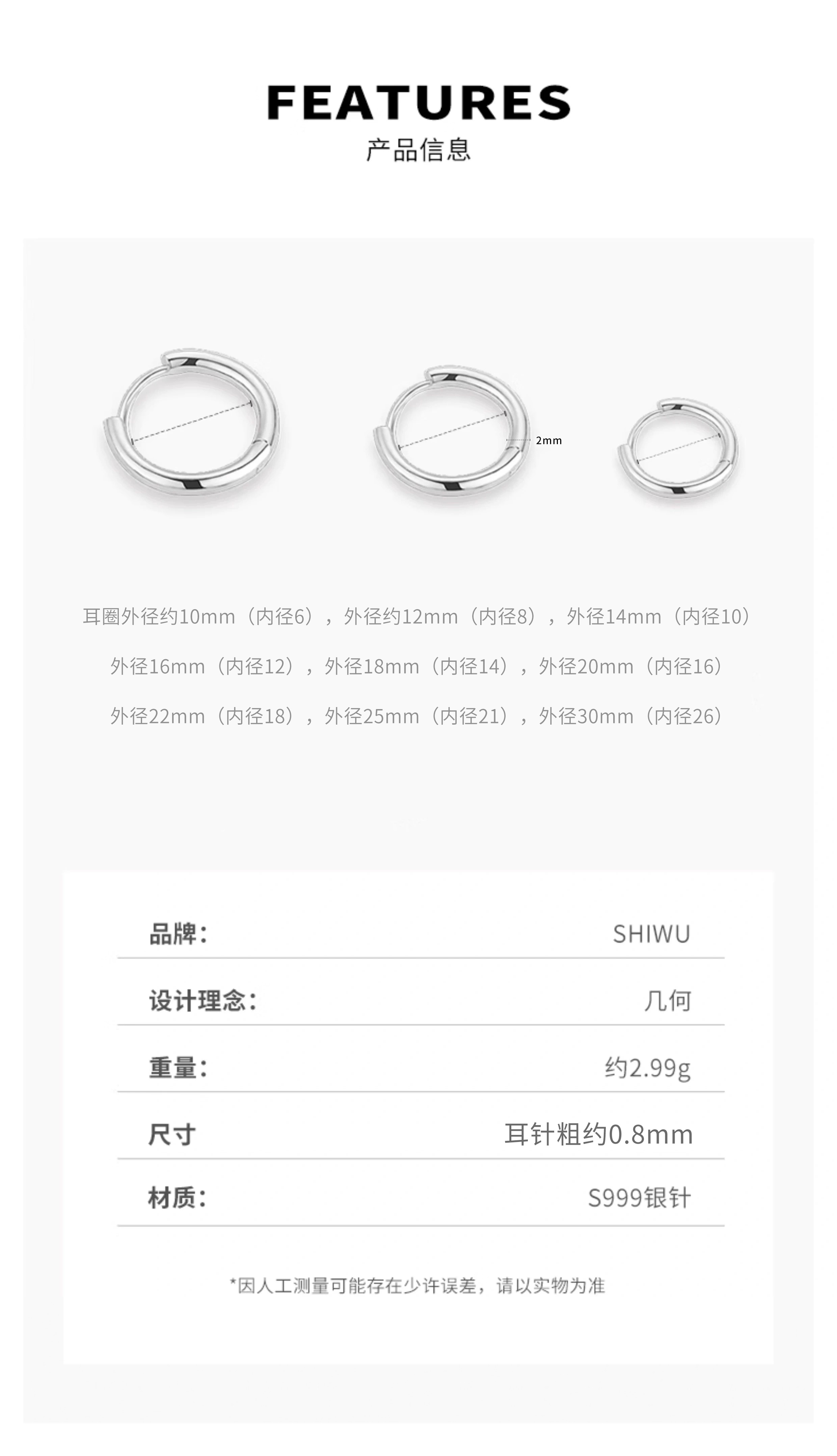 999 Sterling Silver Earrings, Earrings, High-End Plain Hoop Earrings, 2025 New Popular Earrings, Sterling Silver Earrings, Earrings for Women