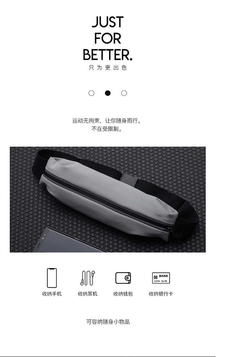 Sports Waist Bag, Running Mobile Phone Bag, Men's and Women's Outdoor Equipment, Waterproof, Invisible, New Mini Belt, Reflective Bag