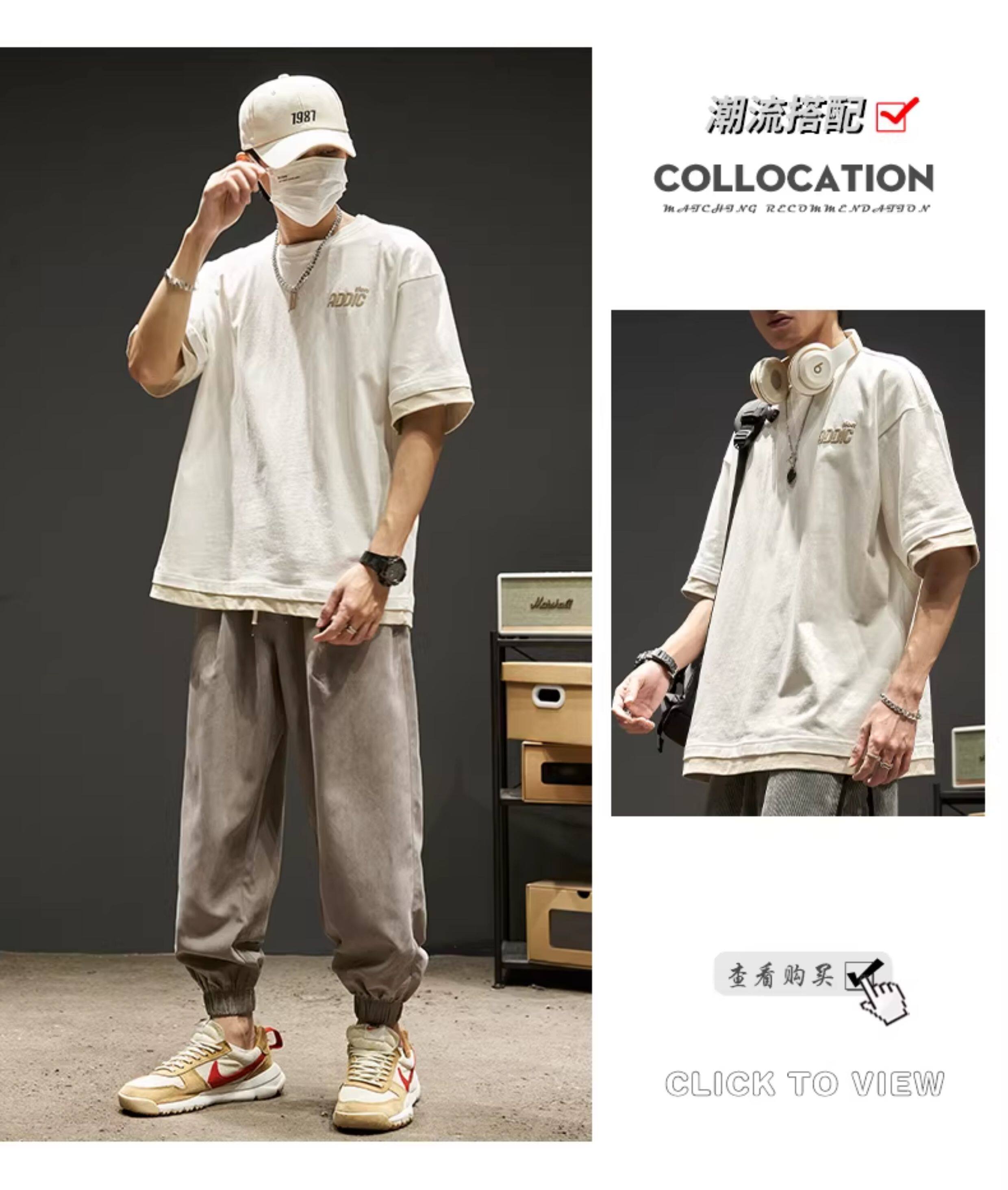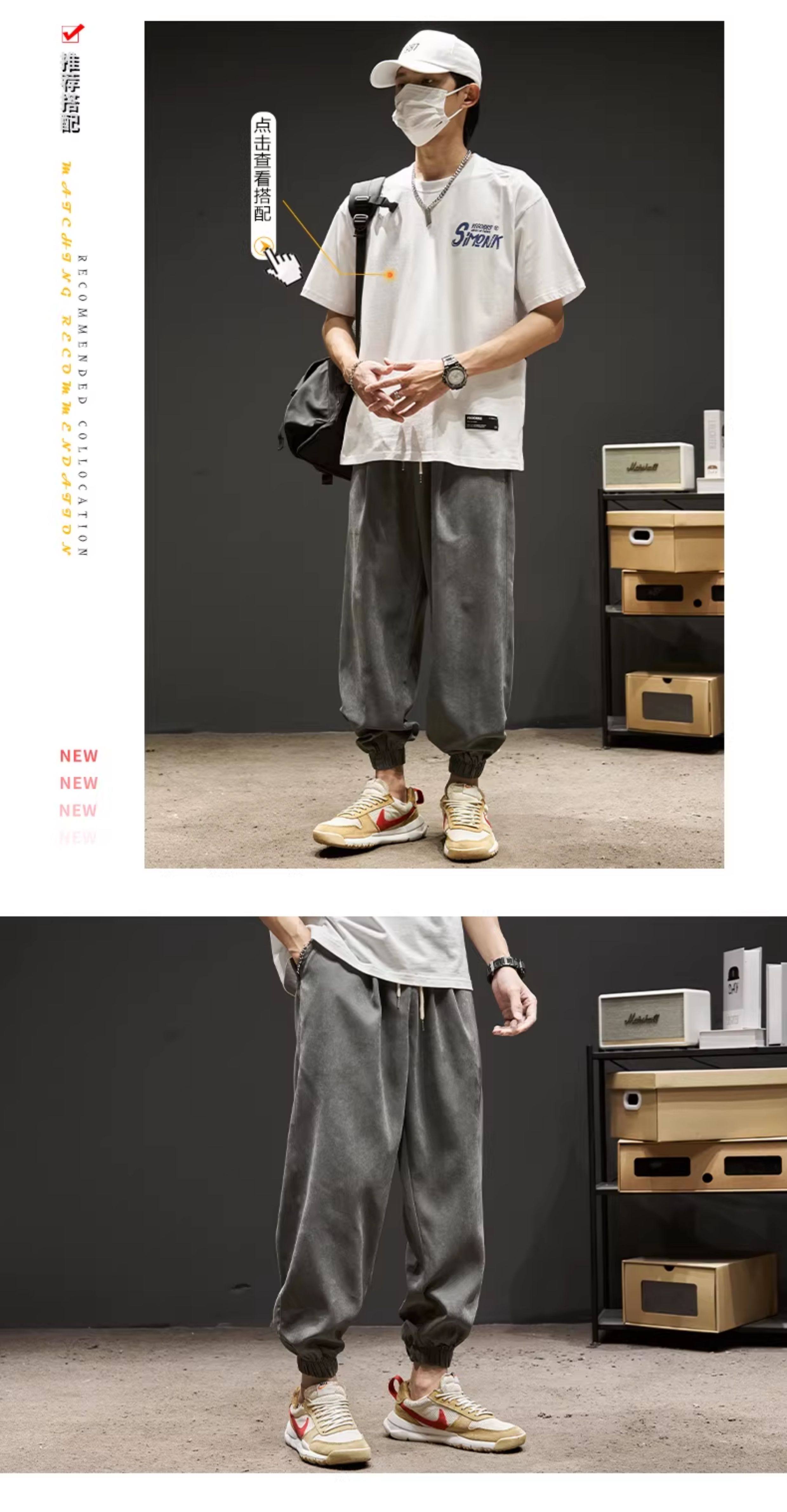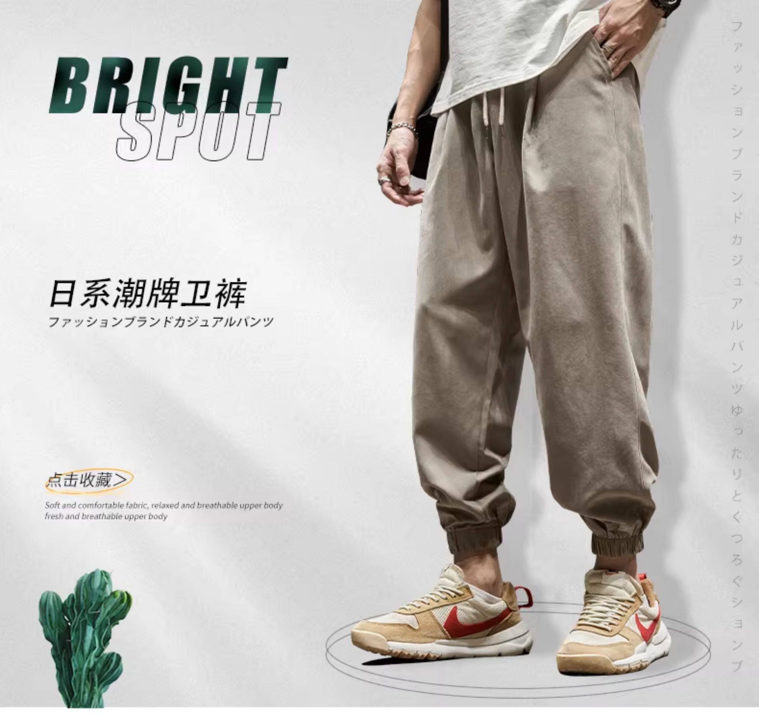 Casual Pants for Men, Loose Fit, Jogger Pants, New Summer Style, Trendy Versatile Japanese Workwear Pants, Cropped Length