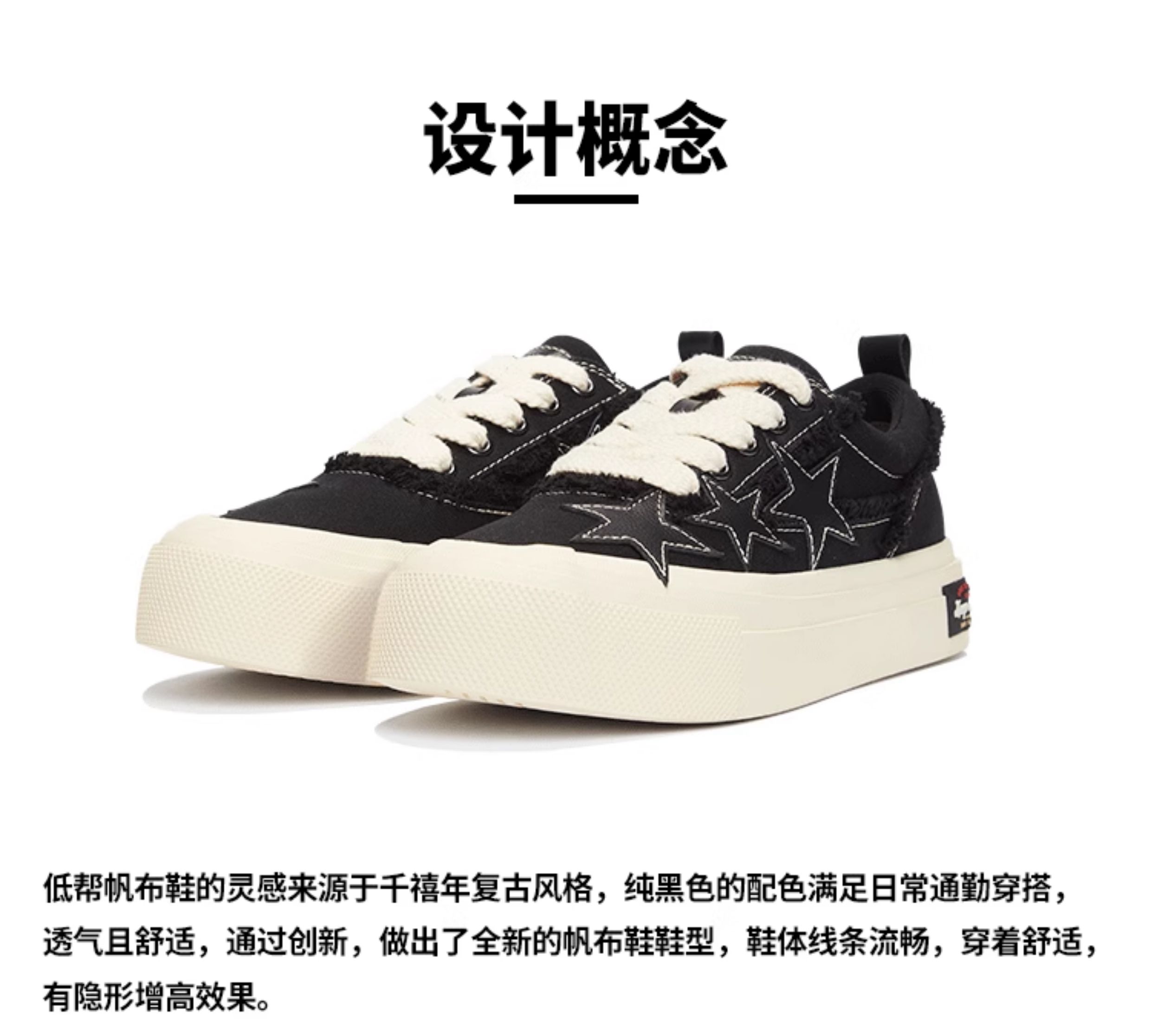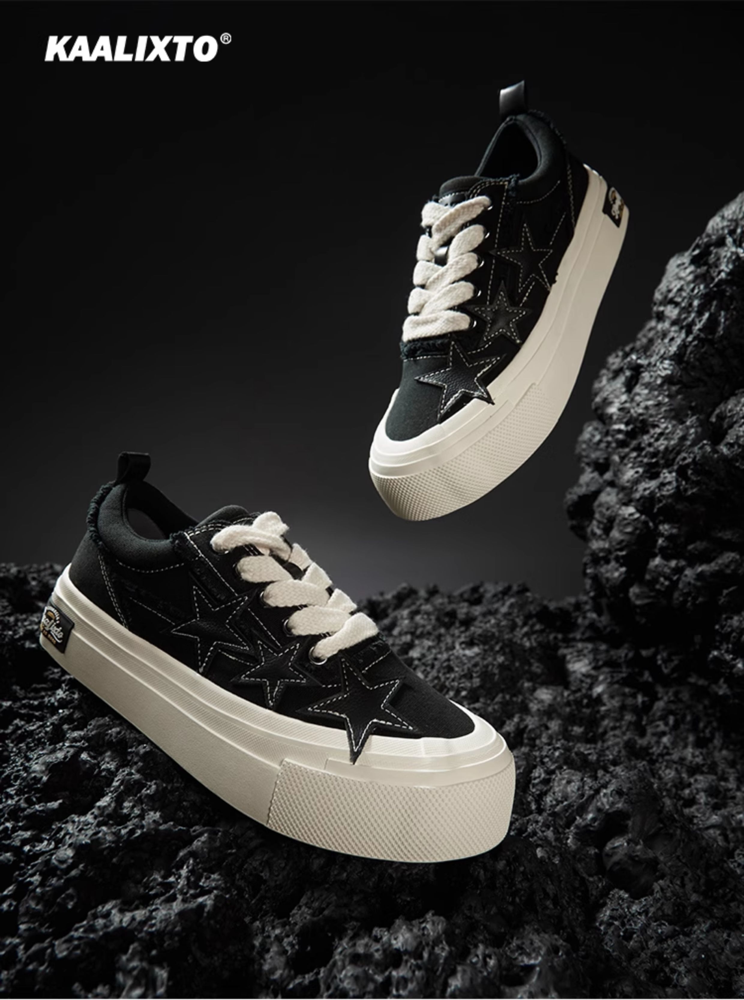 【White Deer Same Style】Kaalixto Authentic Star Shoes Trendy Brand Thick-Soled Height-Increasing Niche Low-Top Versatile Canvas Shoes