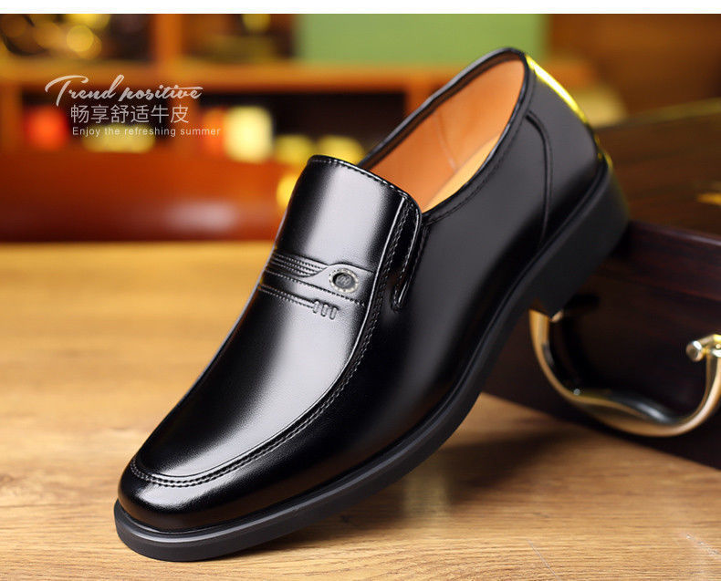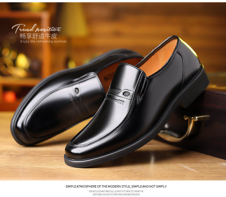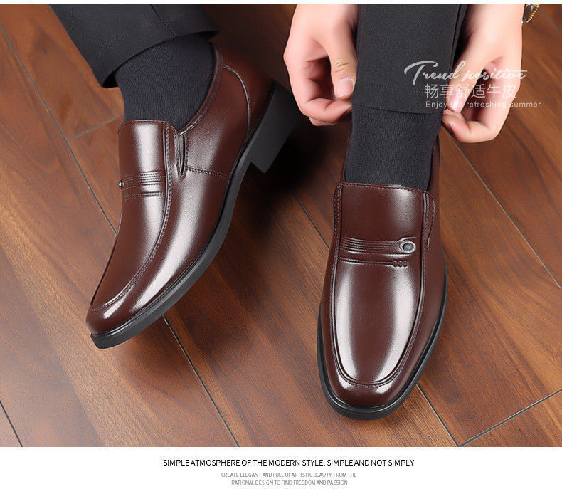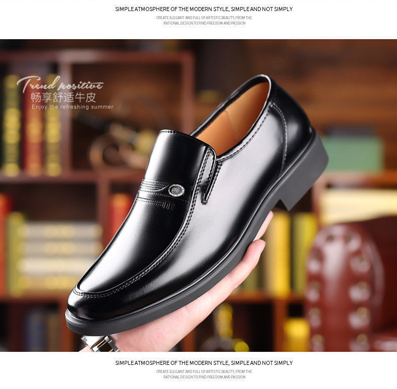 100% Full Cowhide Men's Leather Shoes Spring and Autum New Business Casual Leather Shoes Genuine Leather Cowhide Middle-Aged and Elderly Dad's Shoes