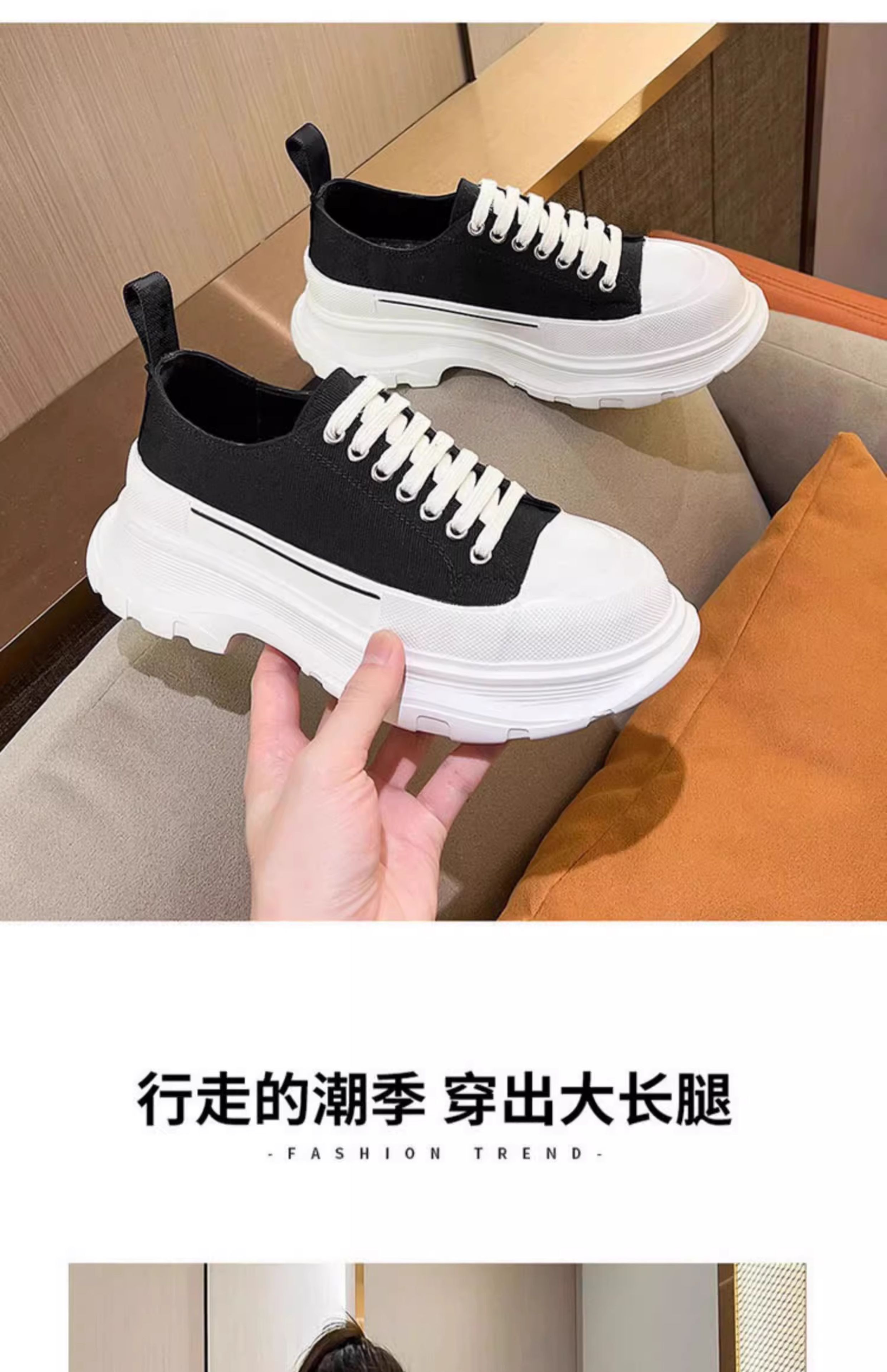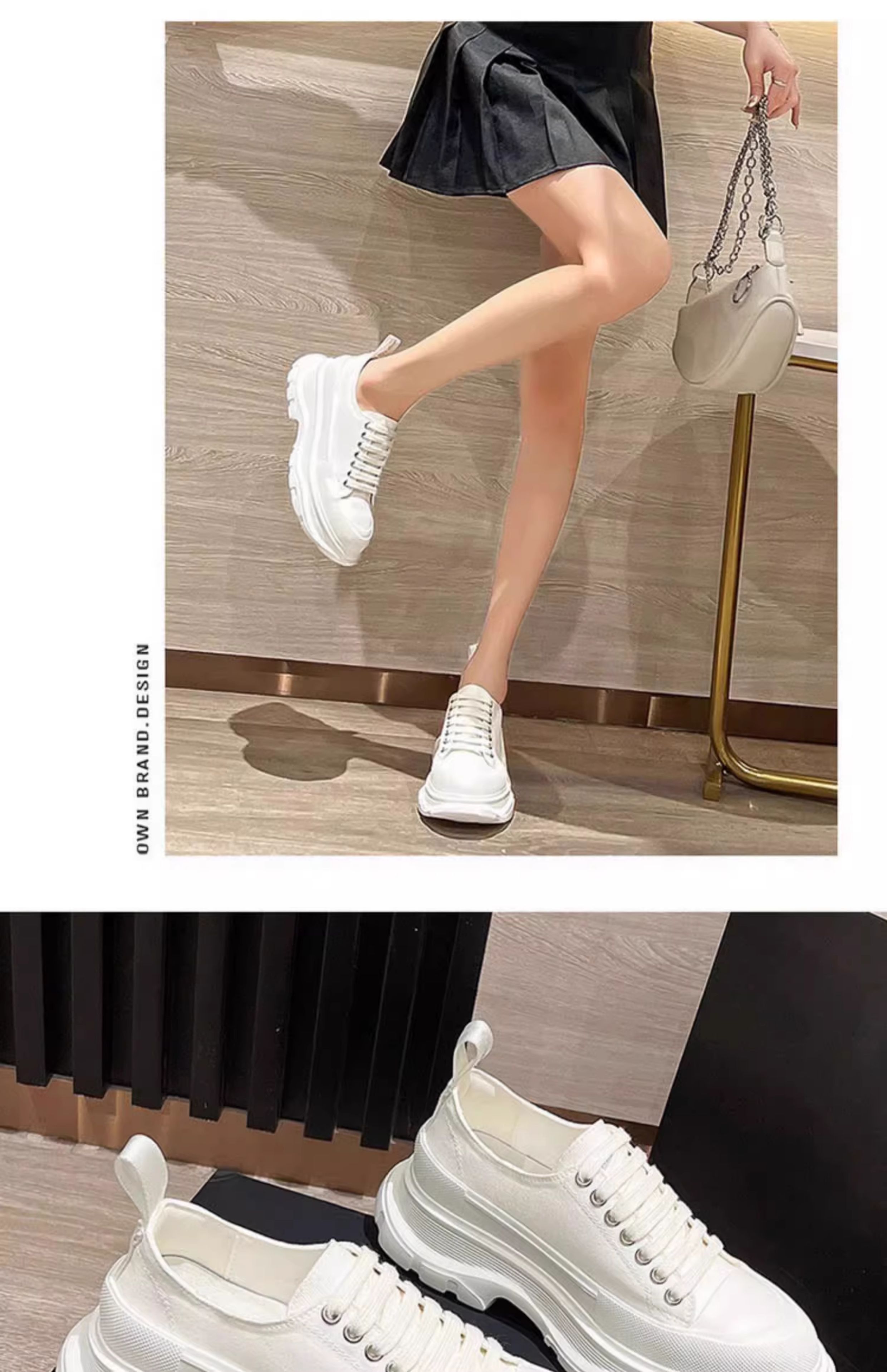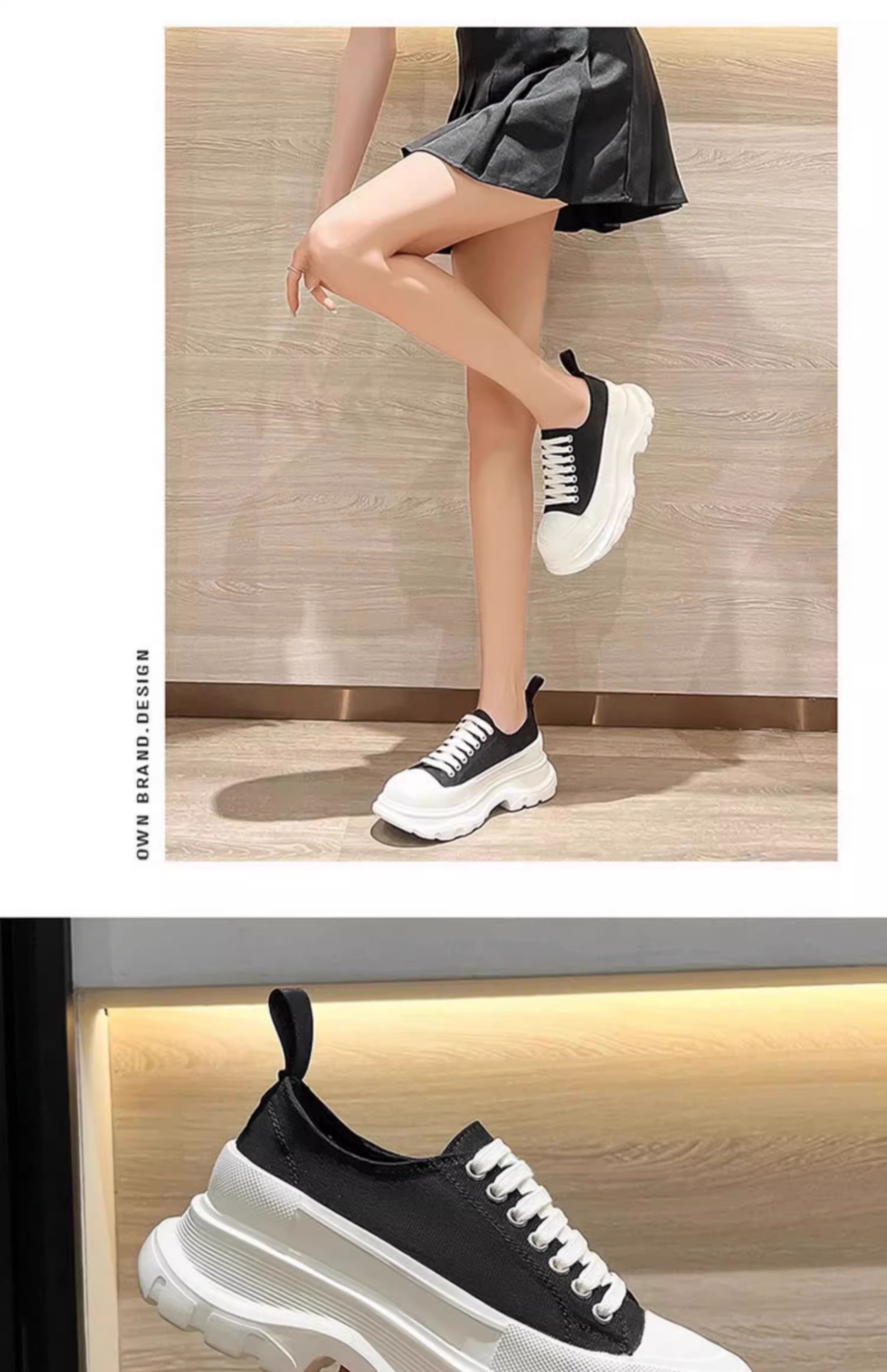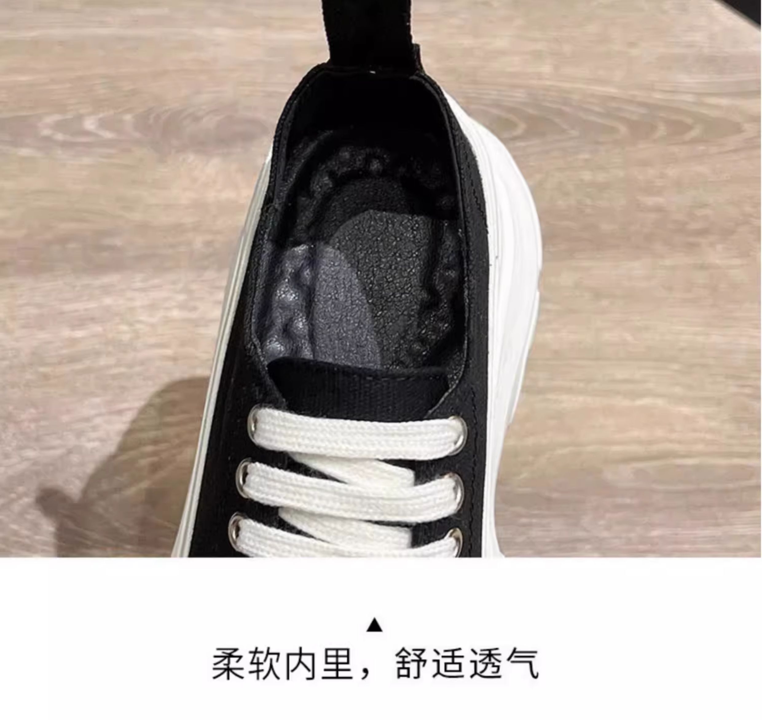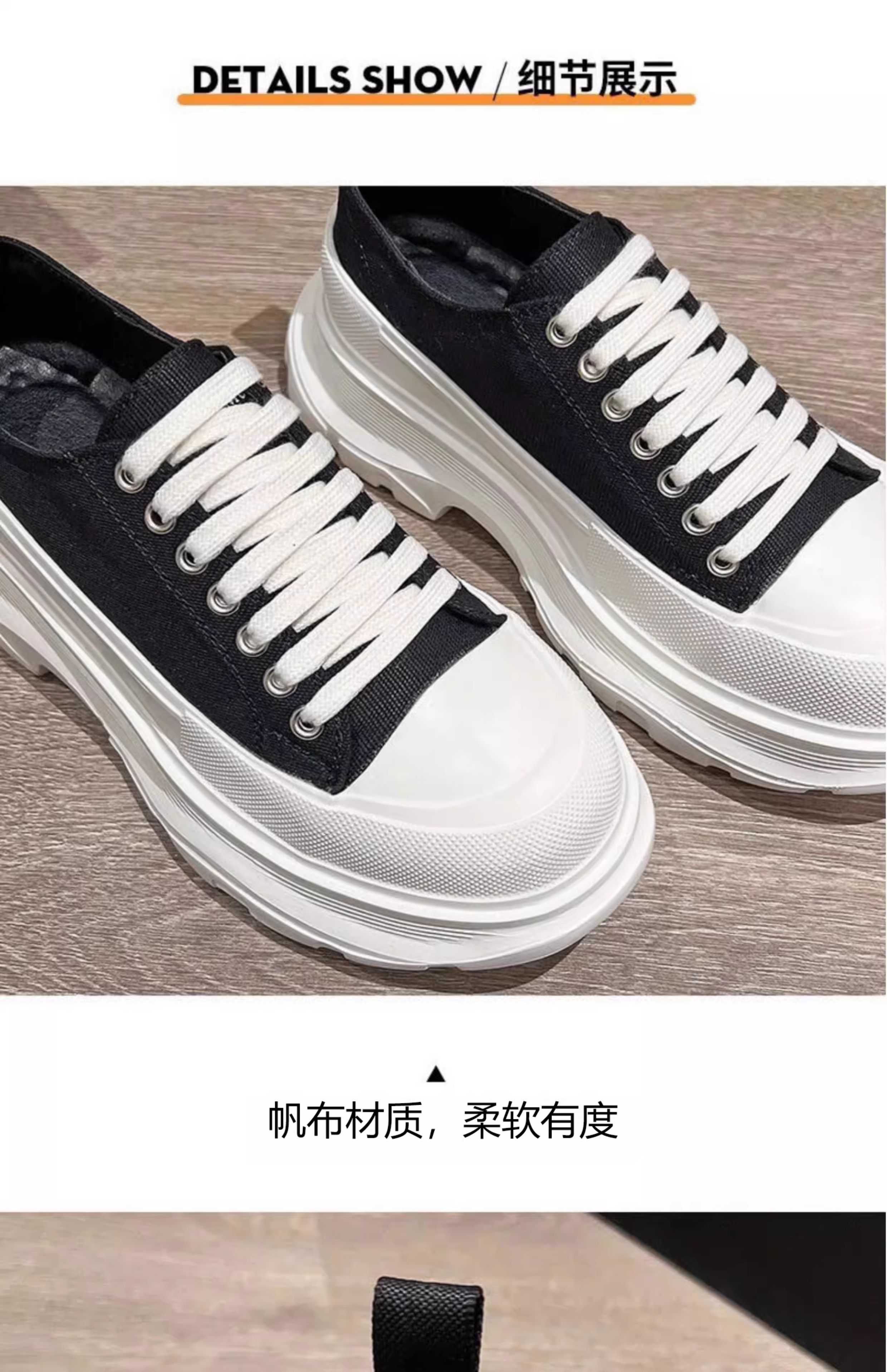 Women's Canvas Shoes 2025 New Autumn and Winter White Shoes Platform Thick-Soled Fleece-Lined Popular Height-Increasing Dad Shoes Single Shoes