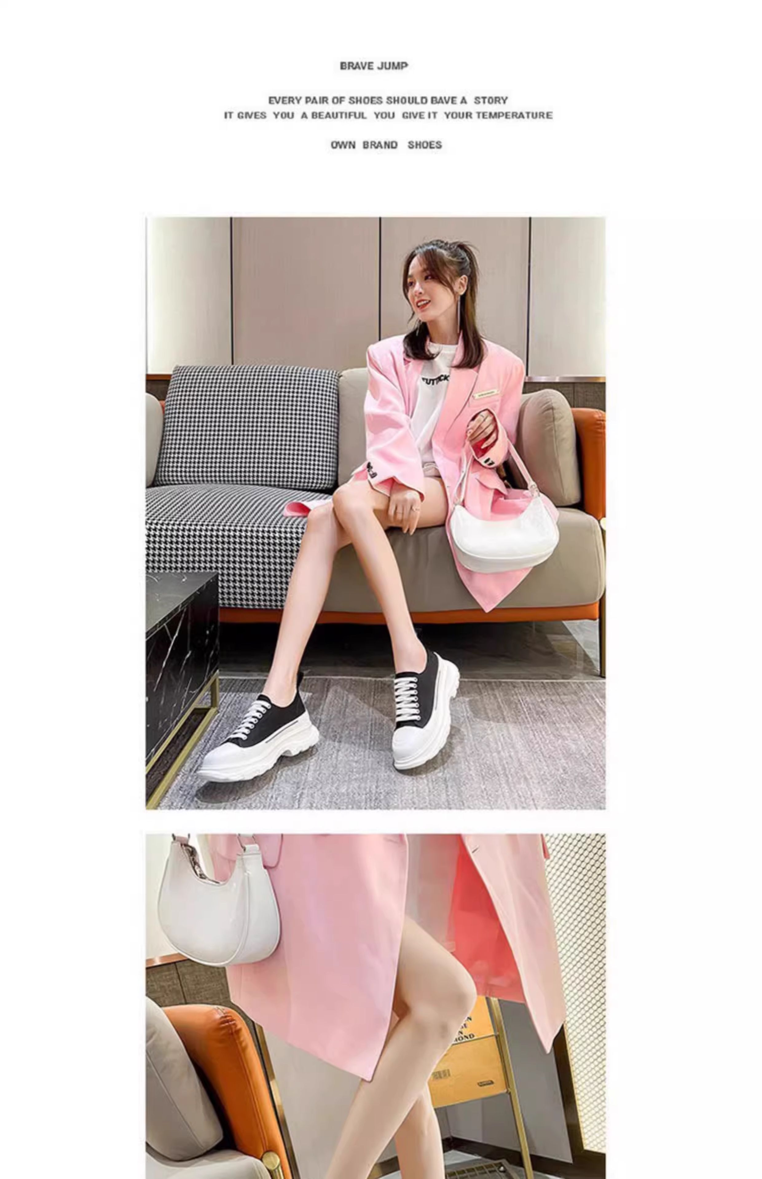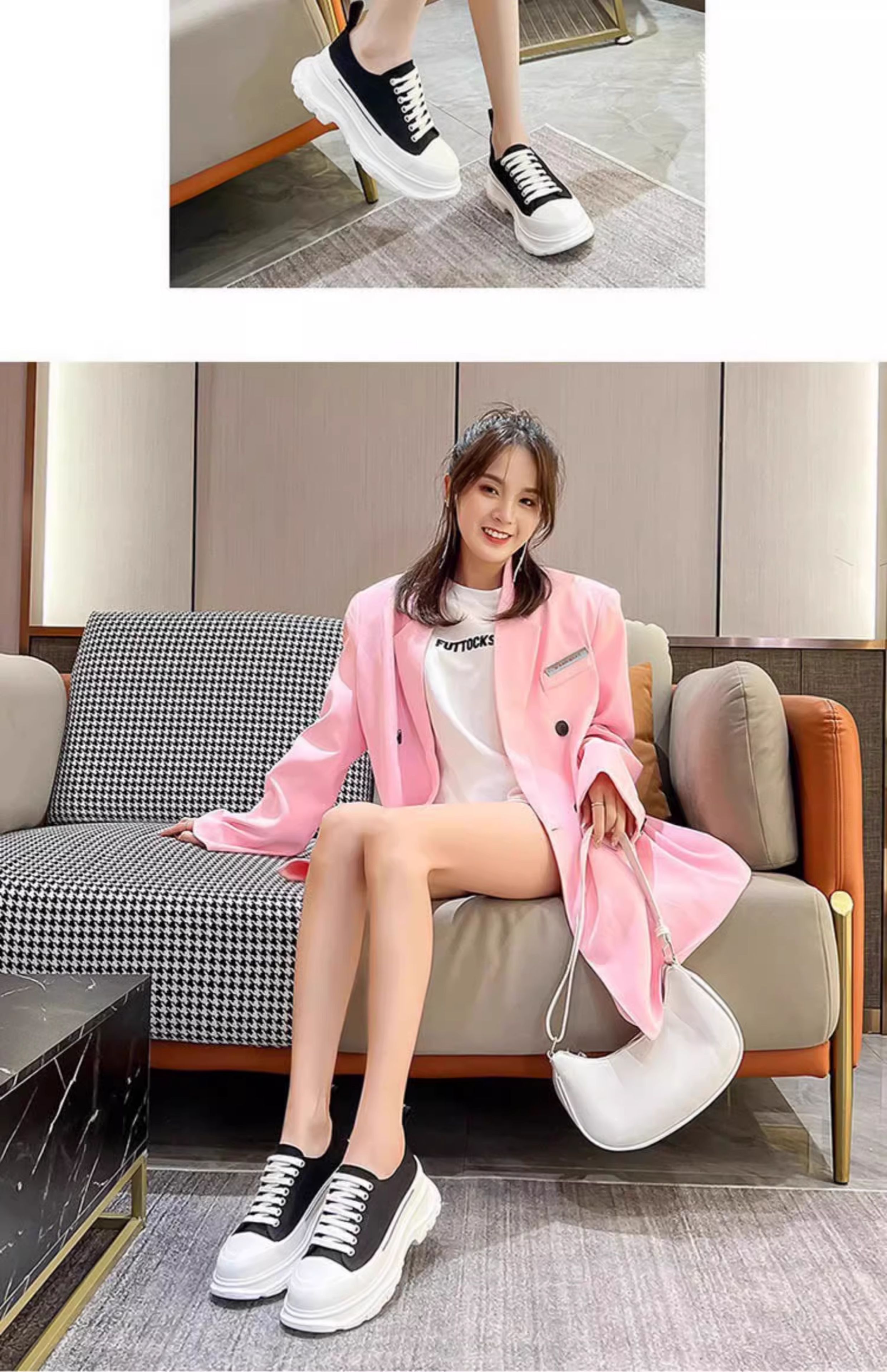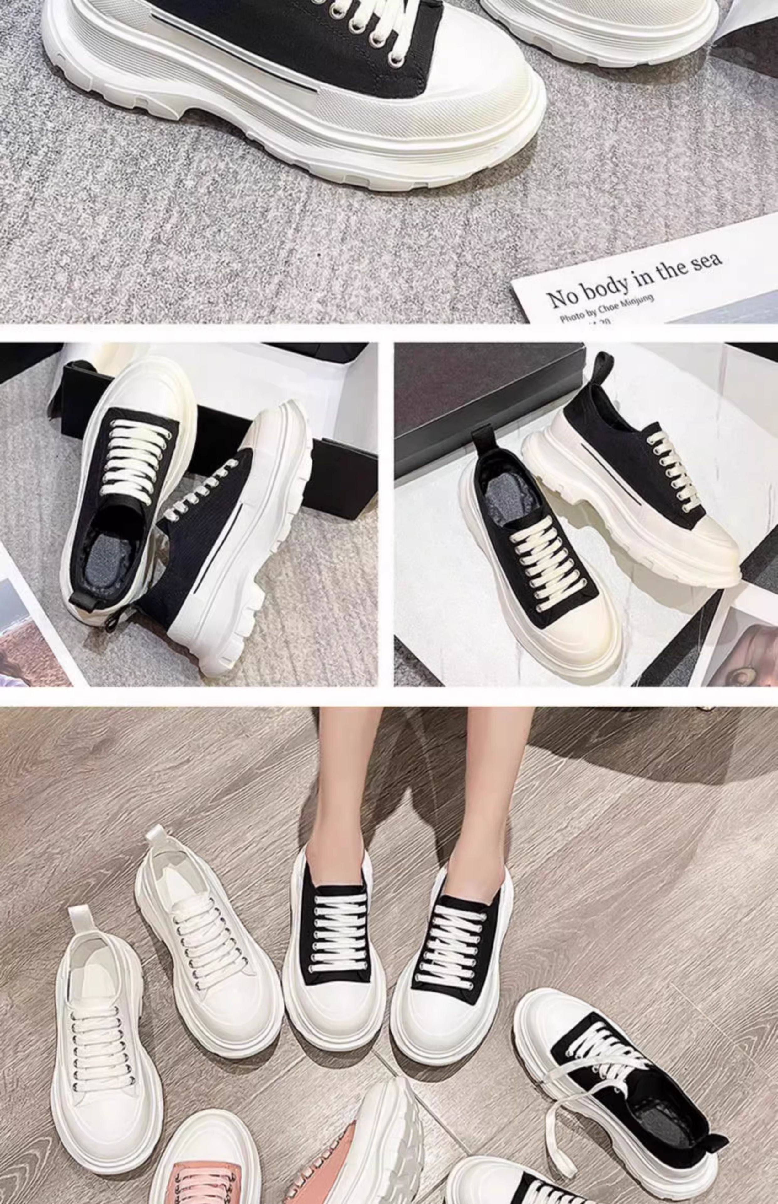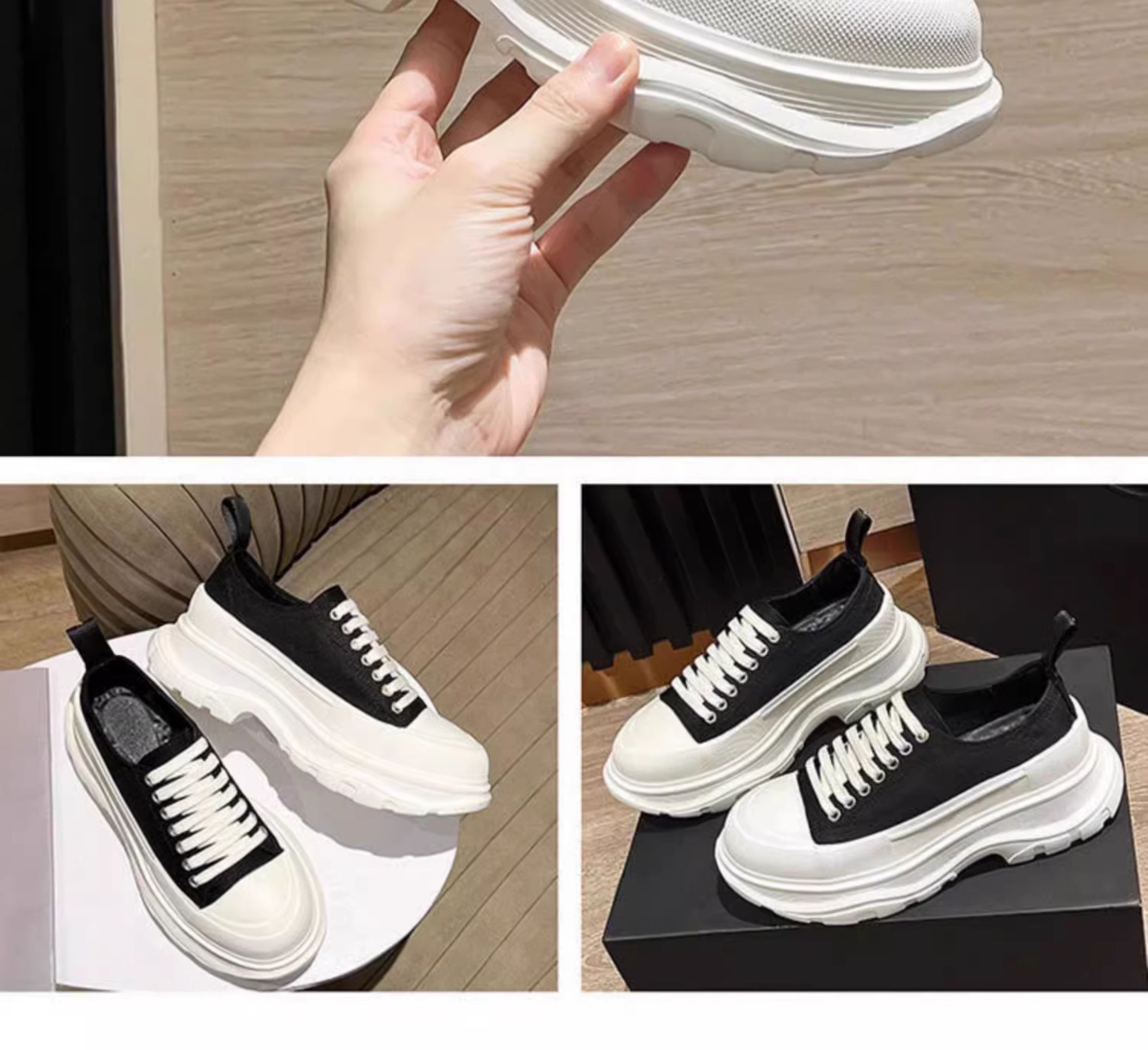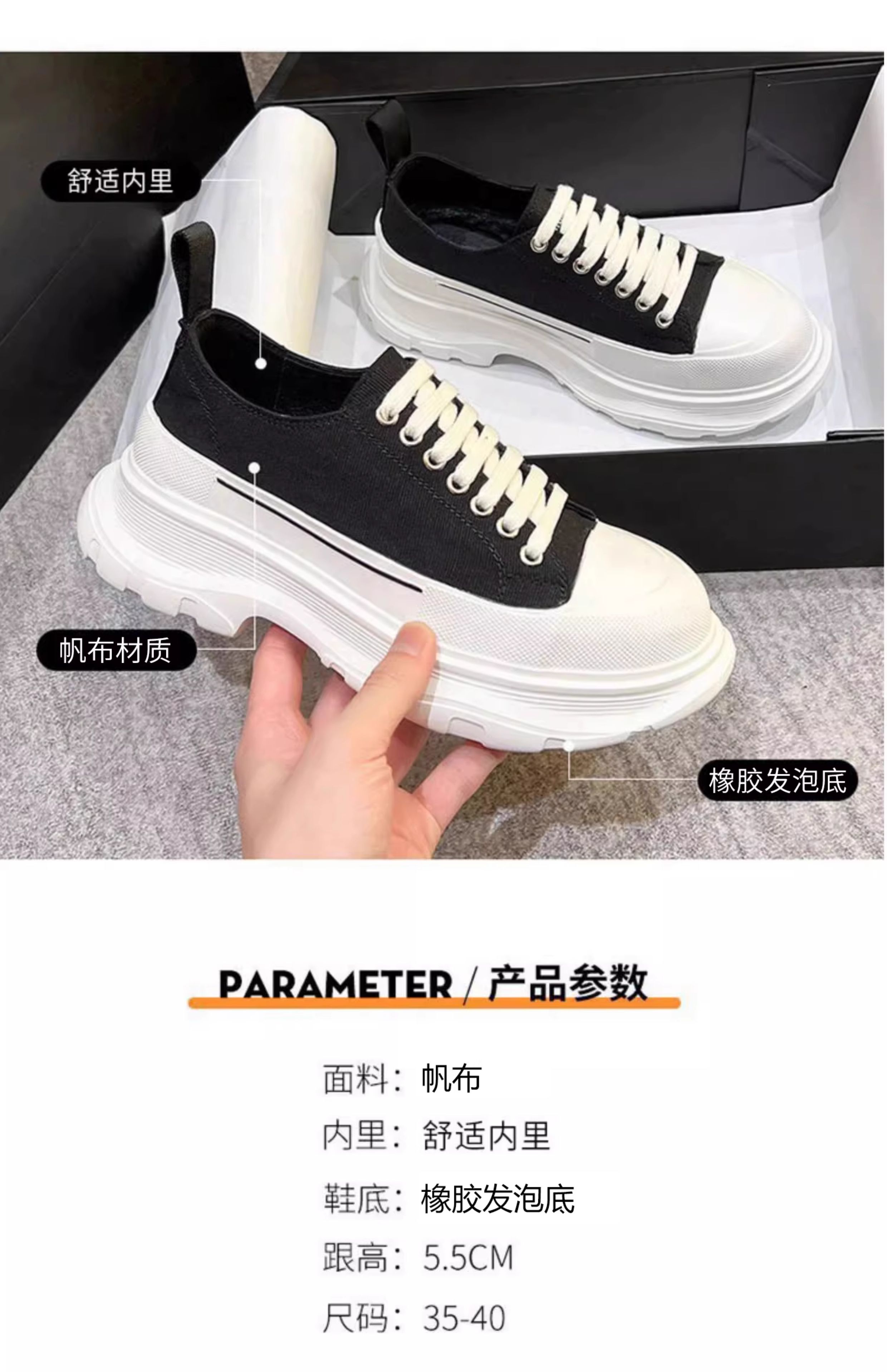 Women's Canvas Shoes 2025 New Autumn and Winter White Shoes Platform Thick-Soled Fleece-Lined Popular Height-Increasing Dad Shoes Single Shoes
