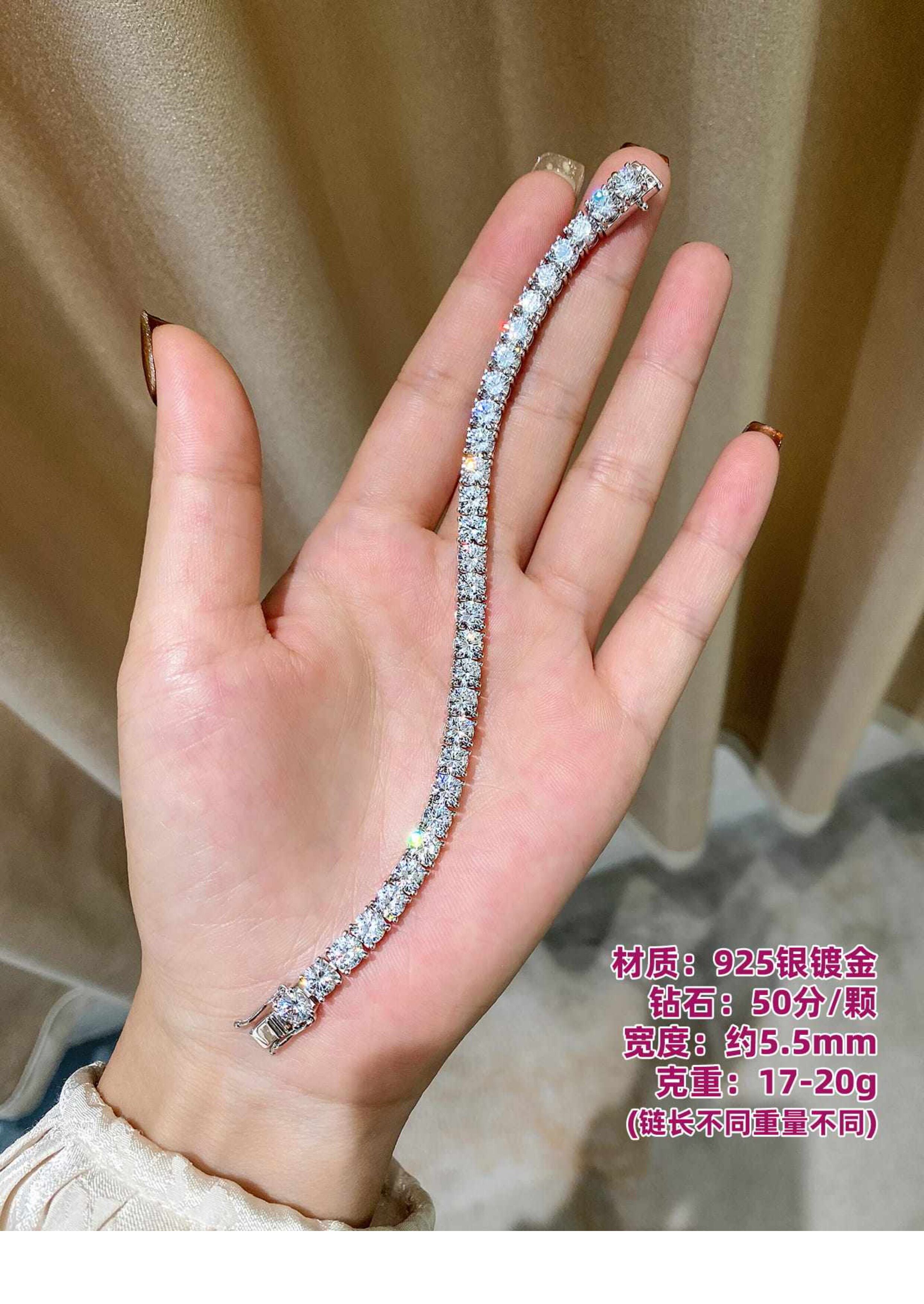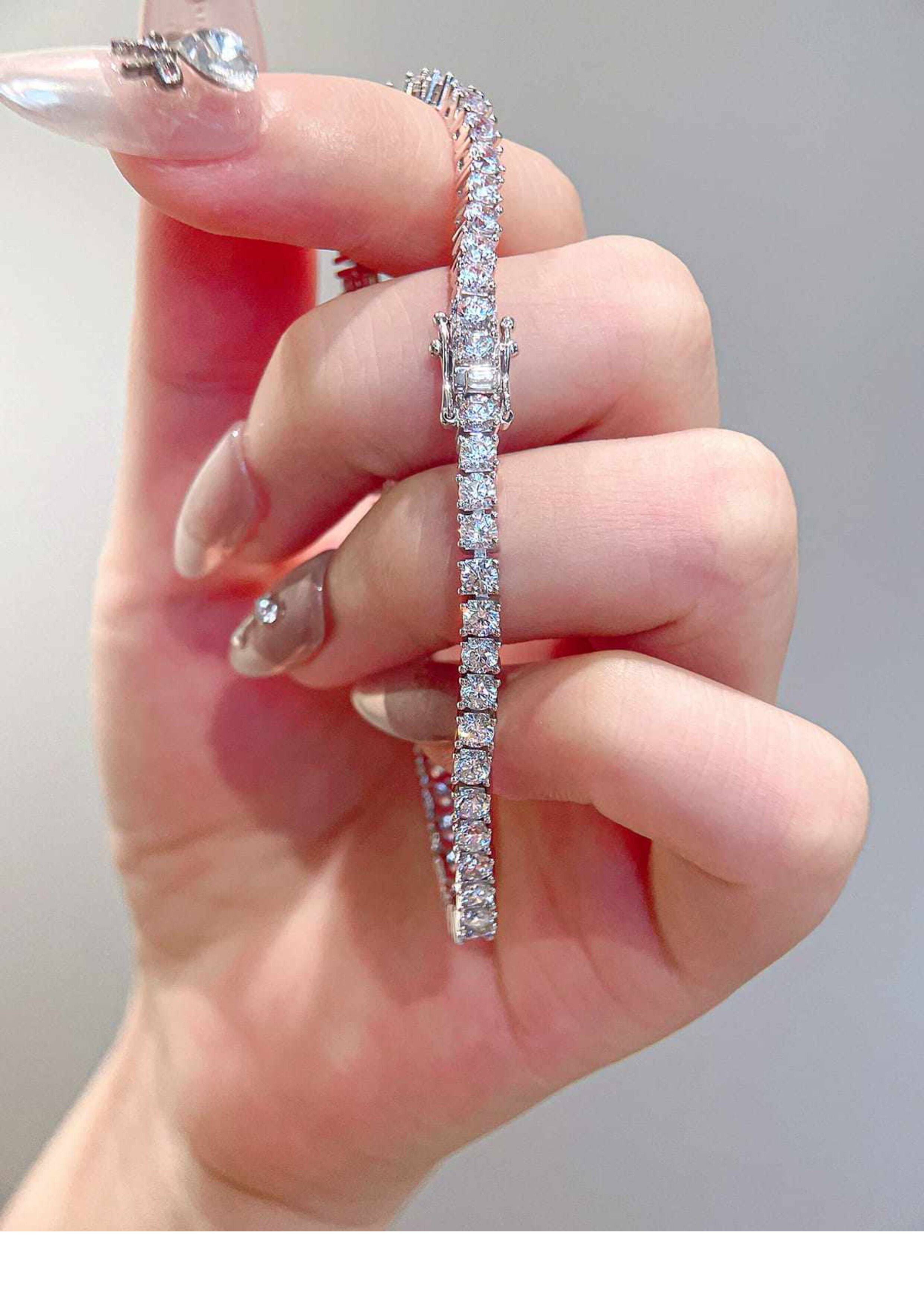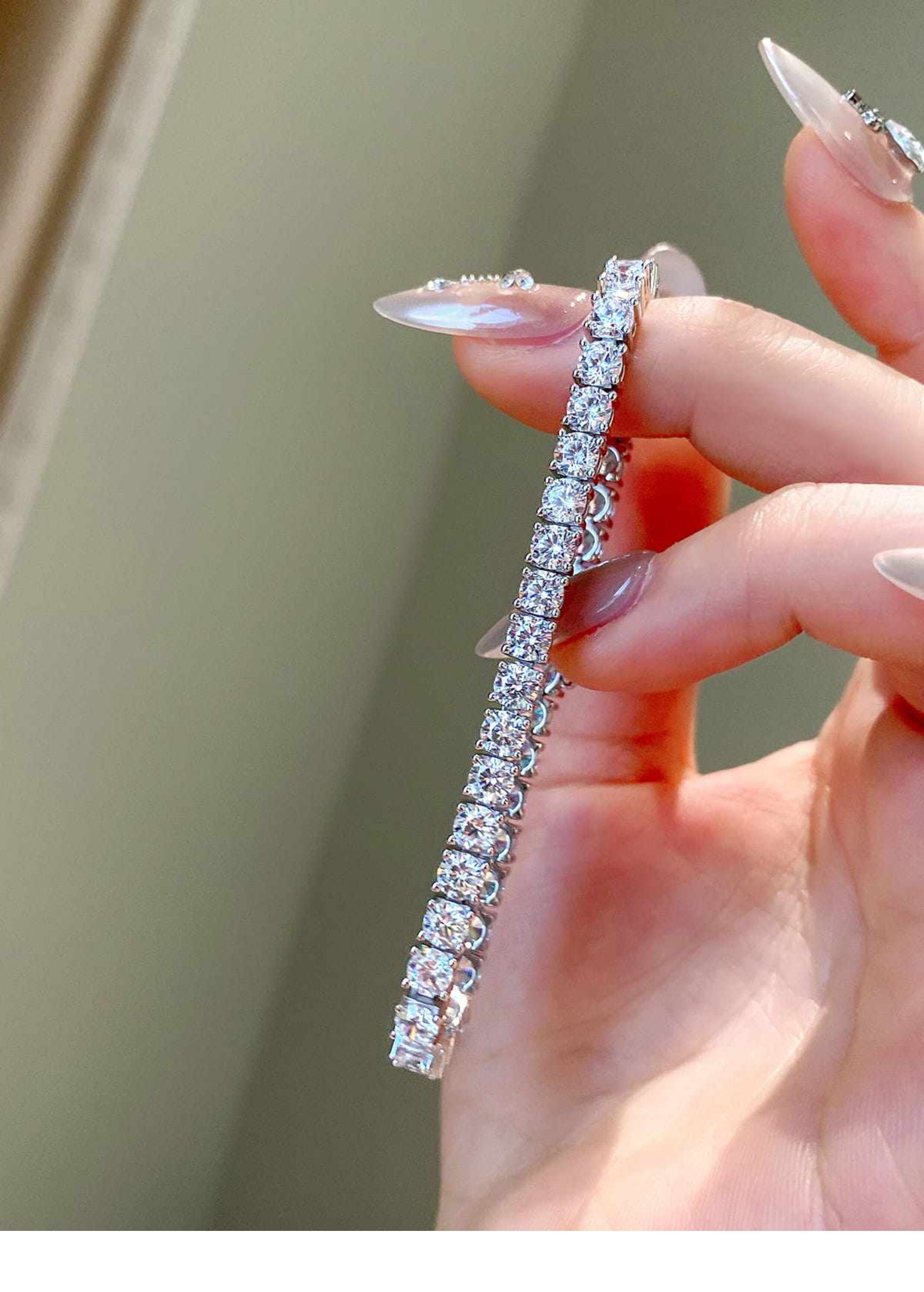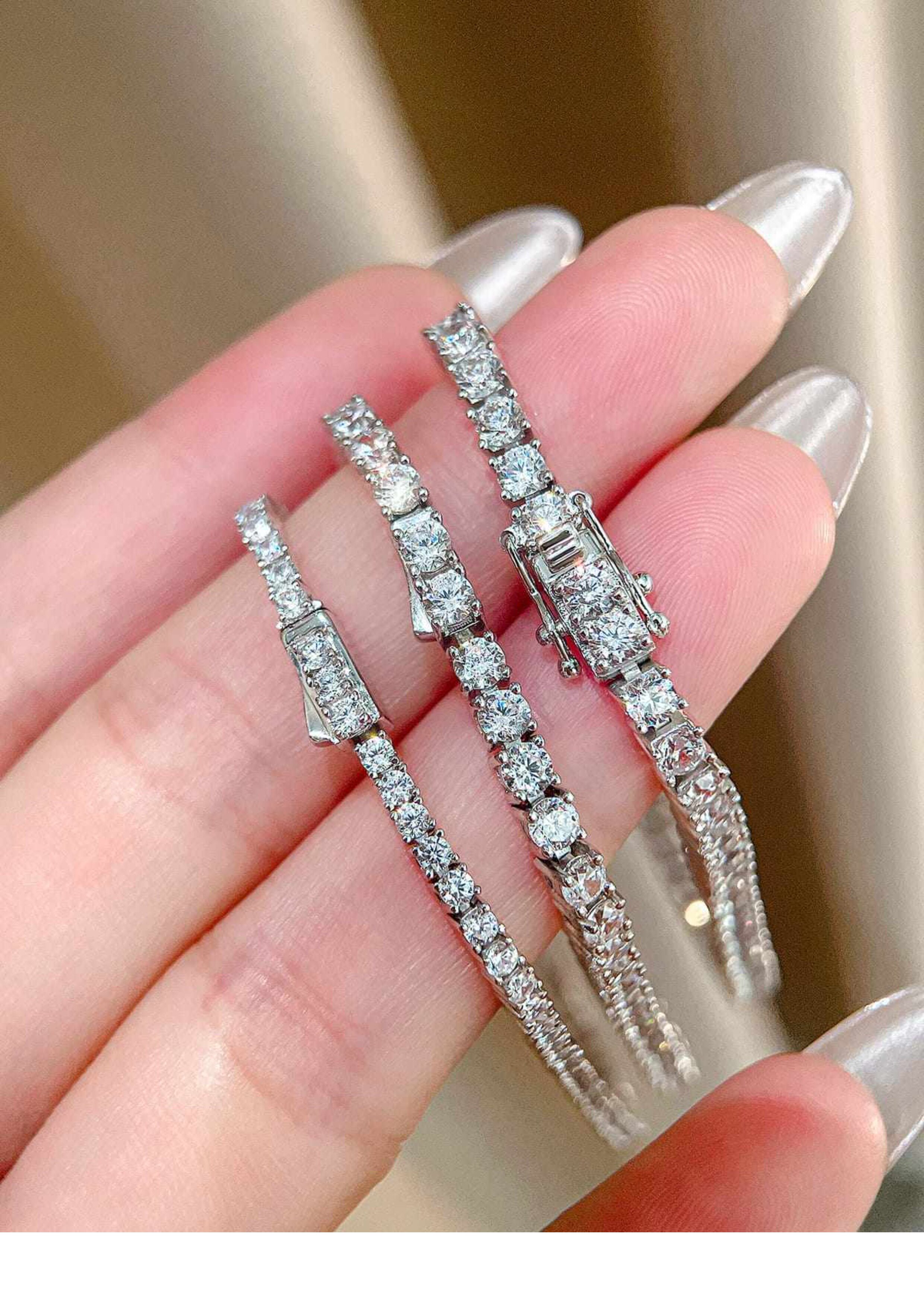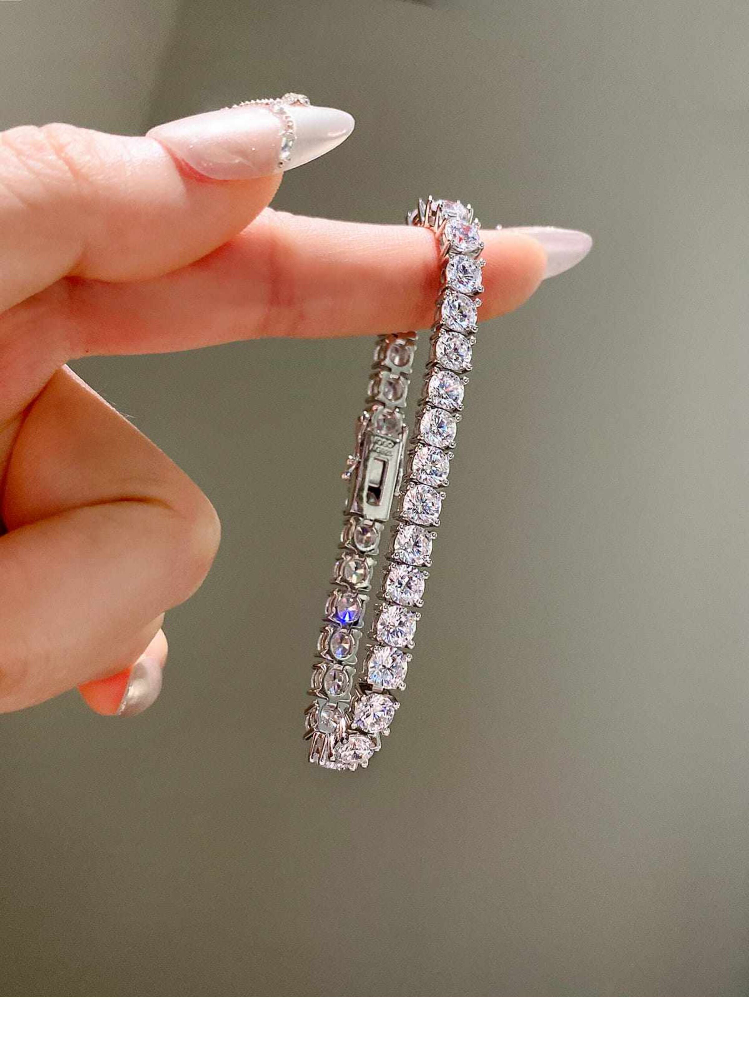 Full Diamond Bracelet for Women, Tennis Chain, Row of Diamonds, Zircon, Artificial Diamonds, Sterling Silver, Full Diamonds, Crushed Diamonds, Dazzling, Light Luxury, Niche, Exquisite