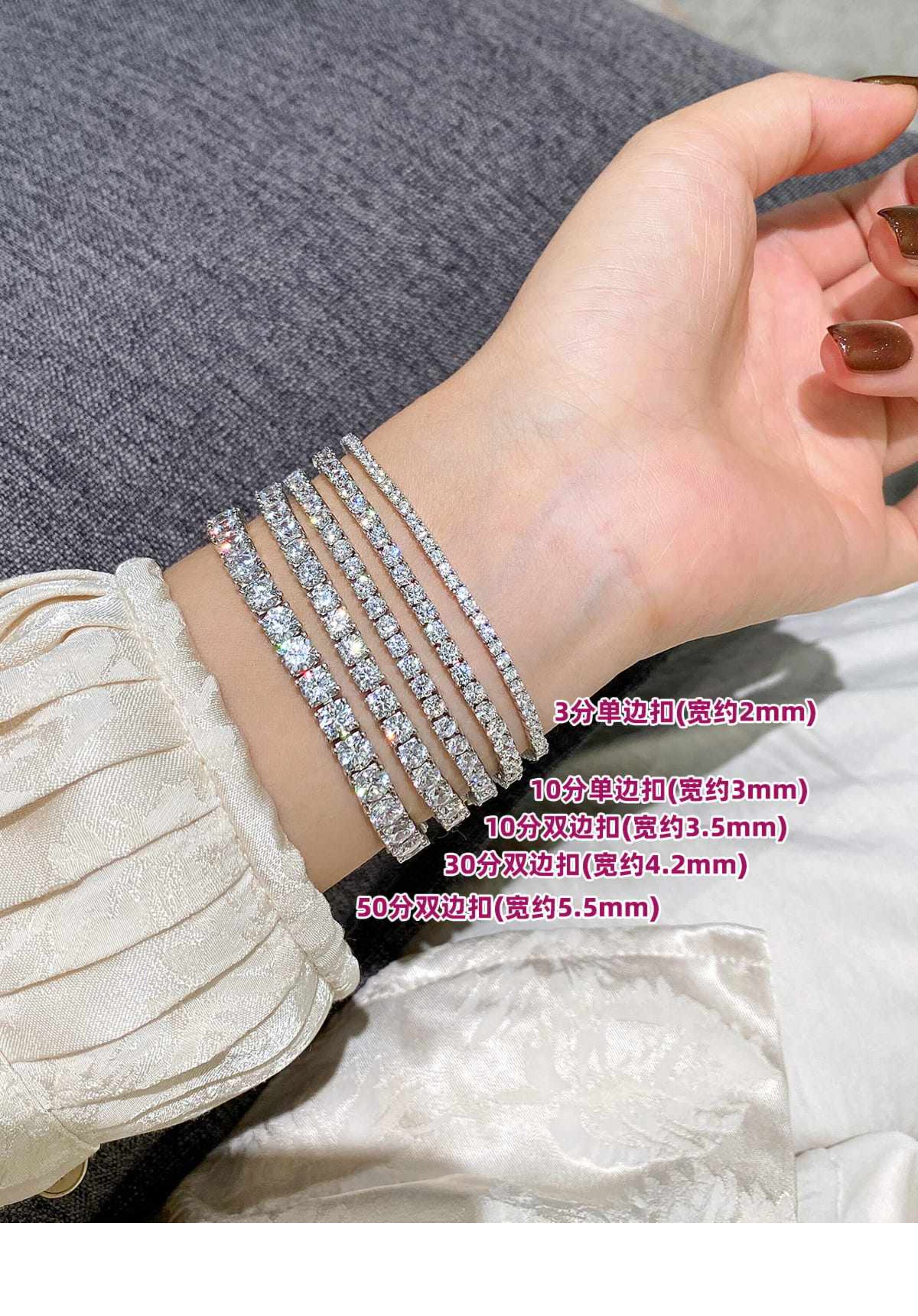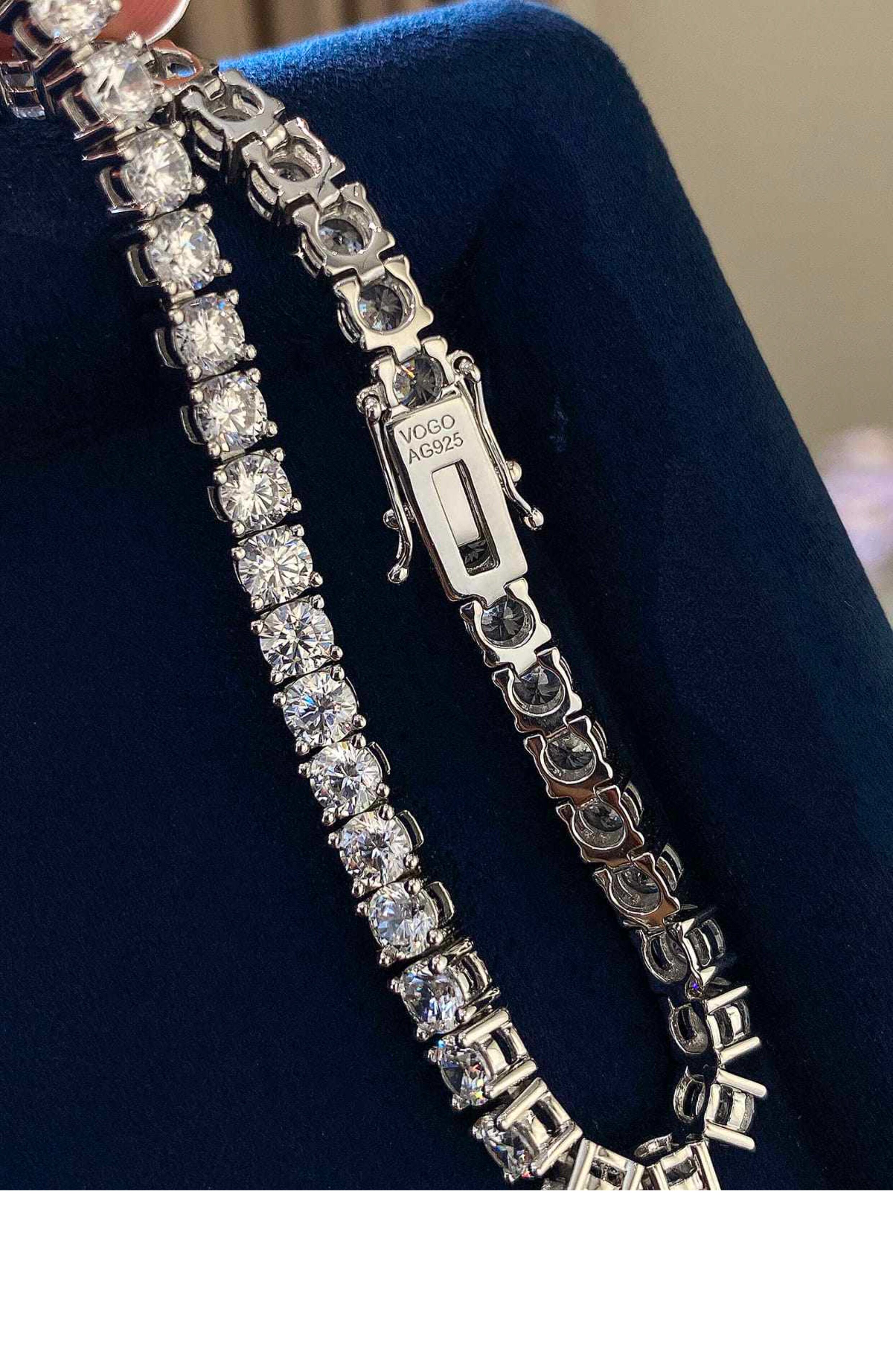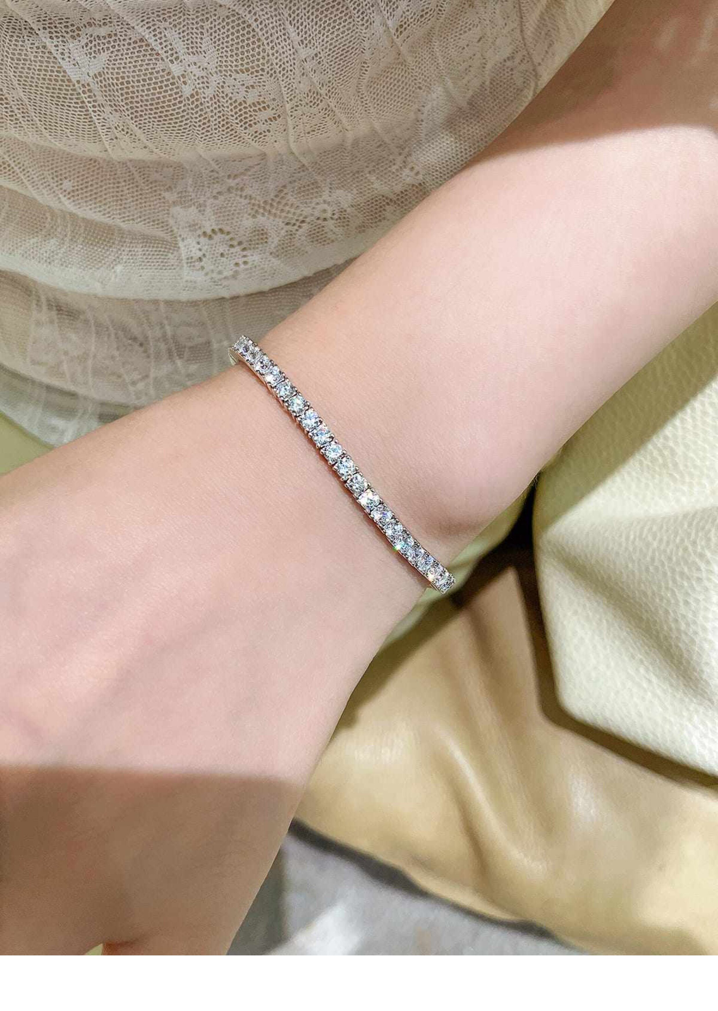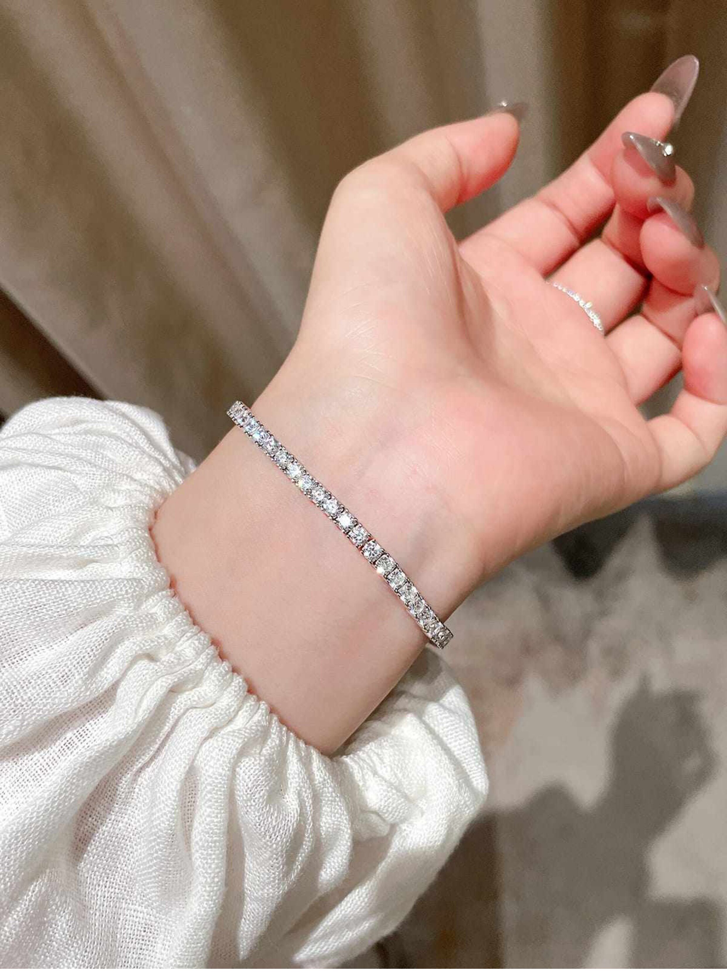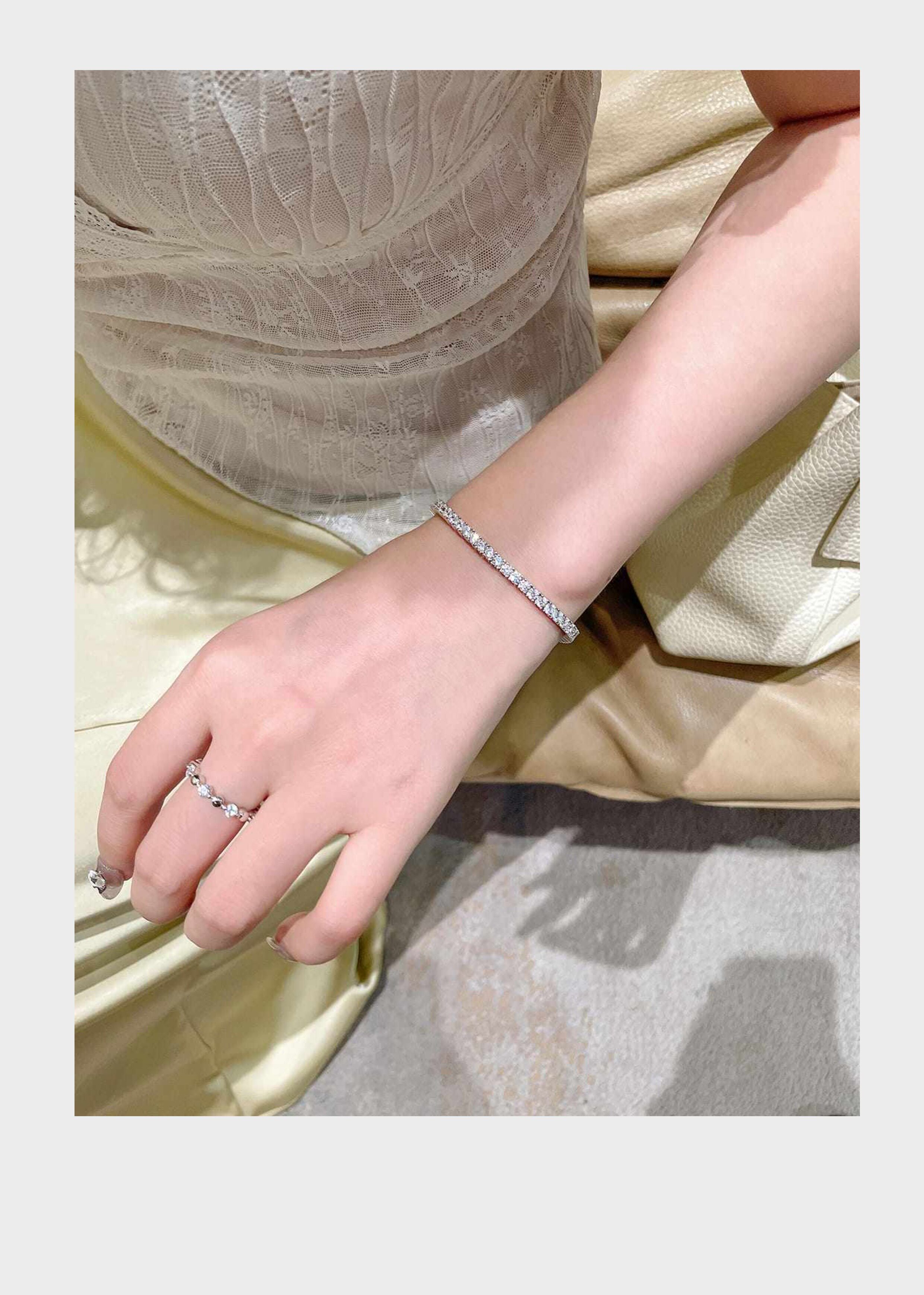 Full Diamond Bracelet for Women, Tennis Chain, Row of Diamonds, Zircon, Artificial Diamonds, Sterling Silver, Full Diamonds, Crushed Diamonds, Dazzling, Light Luxury, Niche, Exquisite