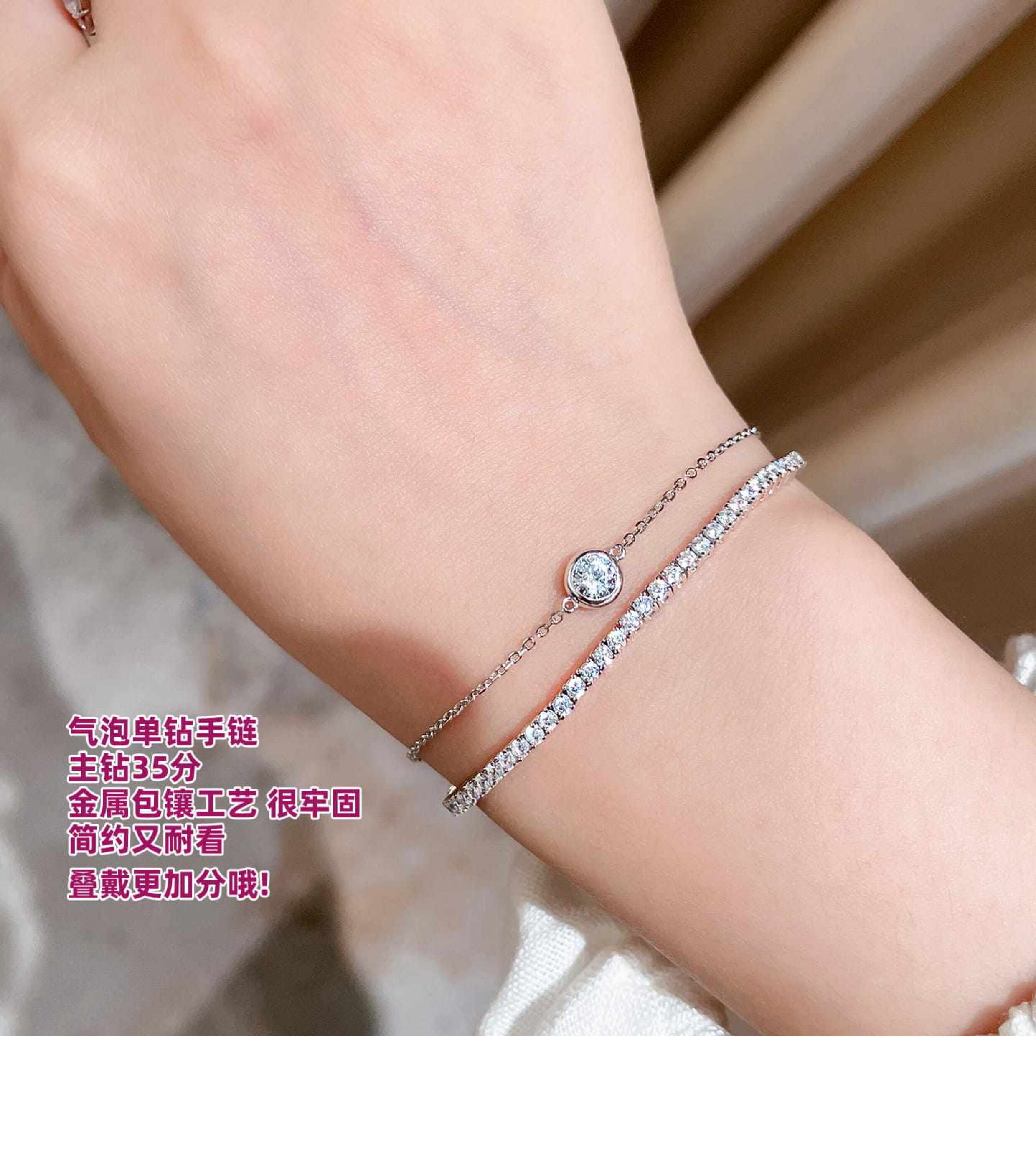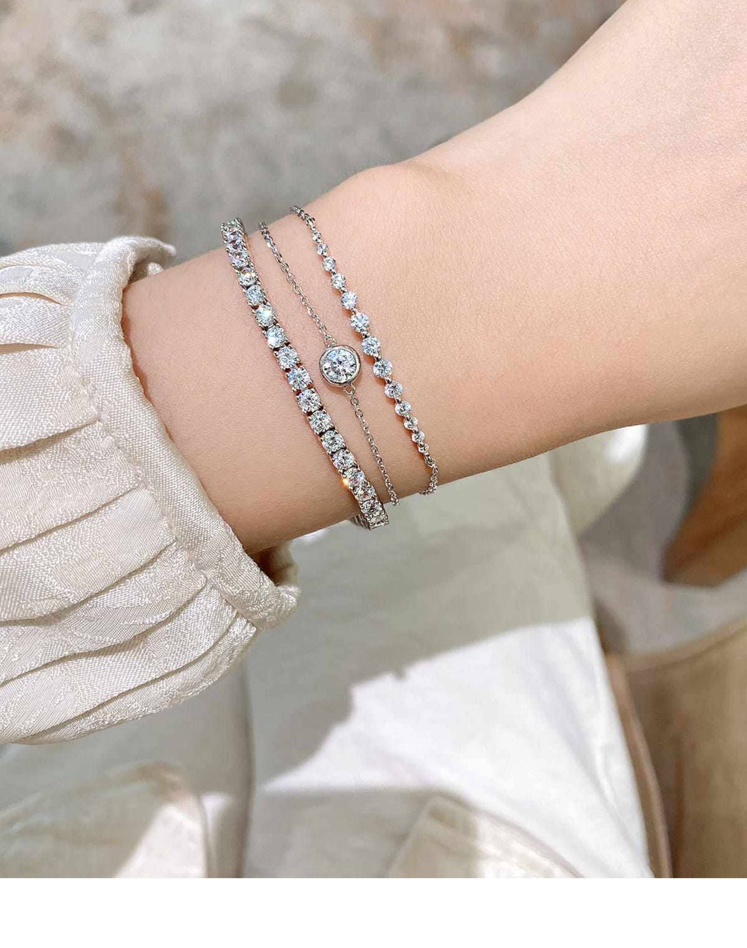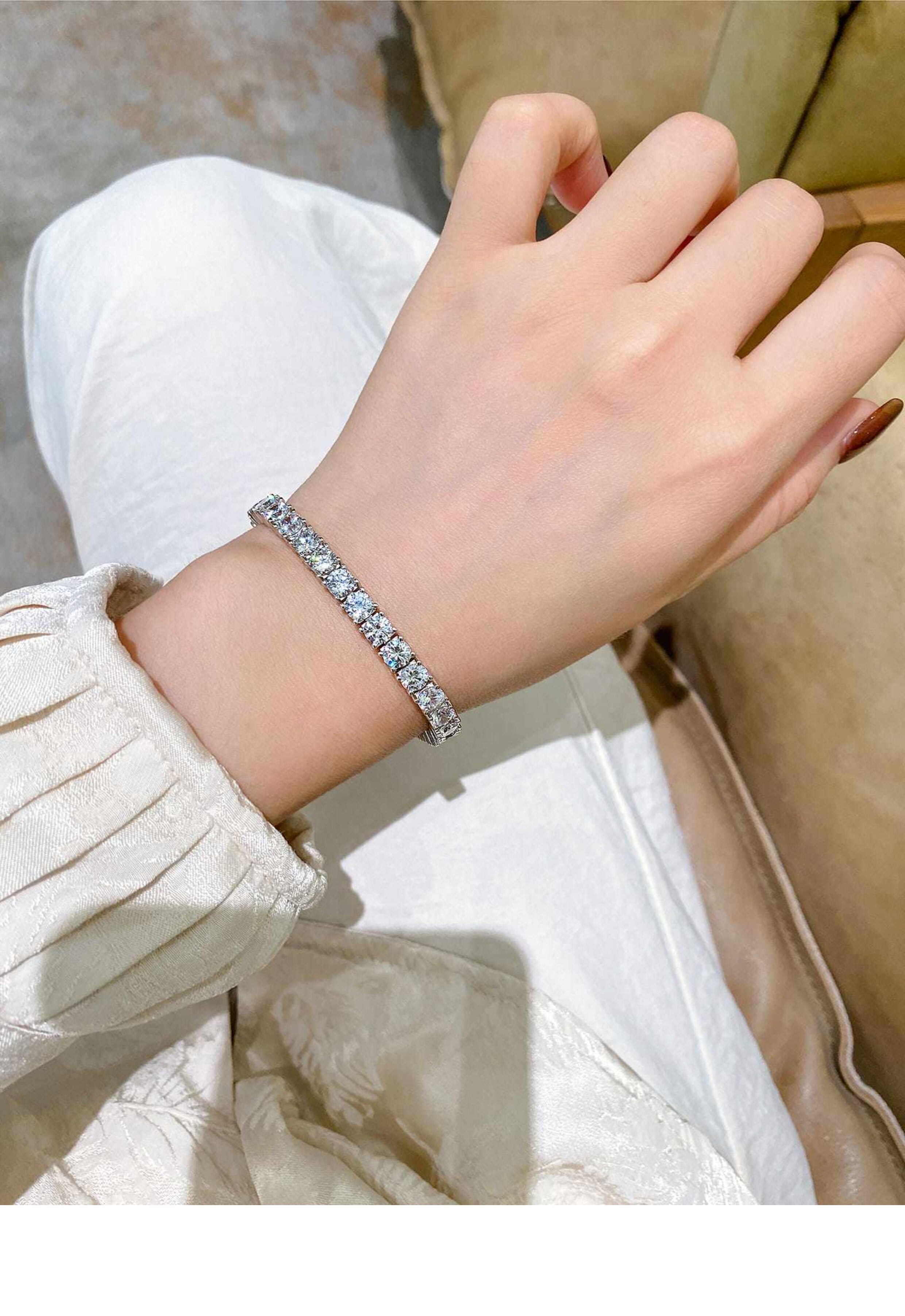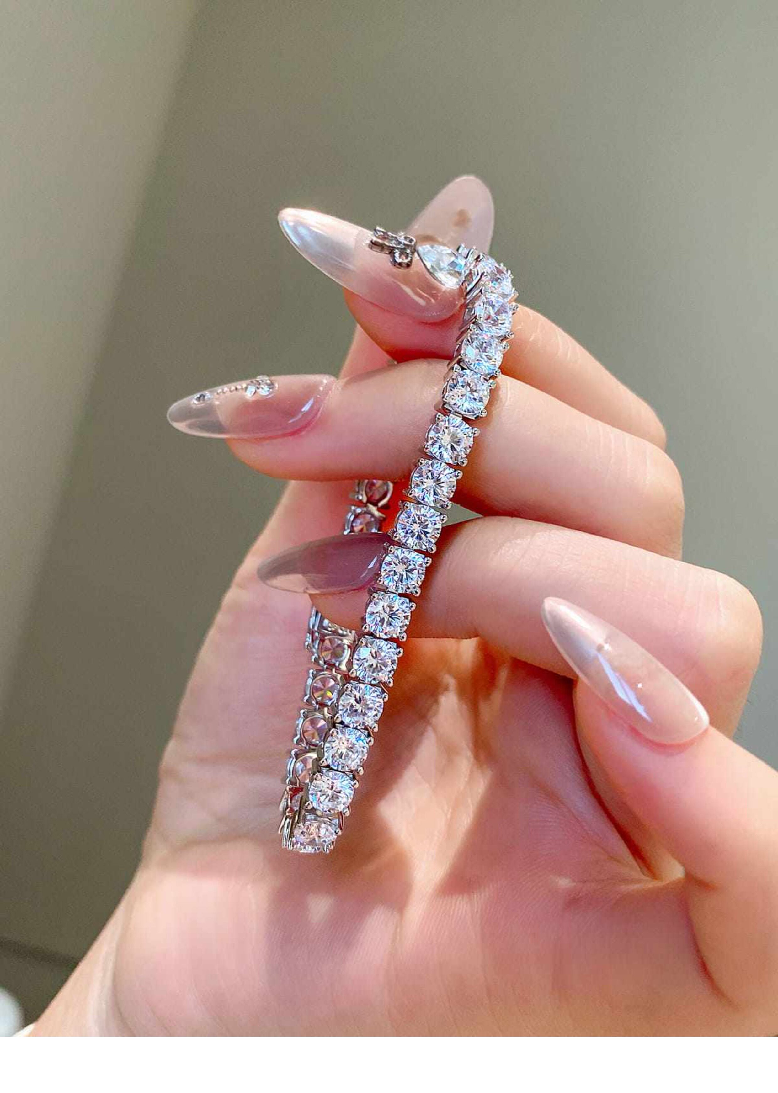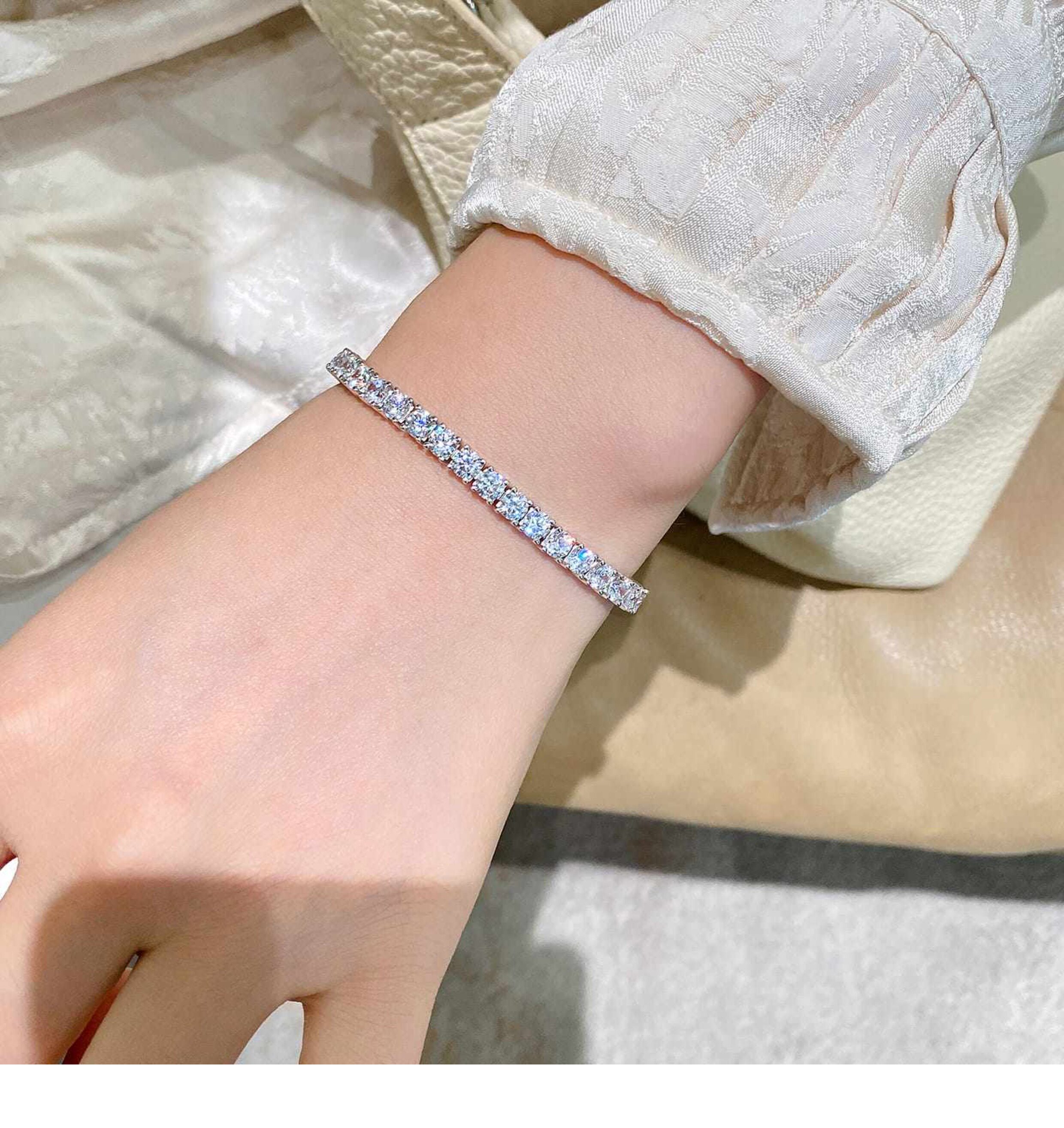 Full Diamond Bracelet for Women, Tennis Chain, Row of Diamonds, Zircon, Artificial Diamonds, Sterling Silver, Full Diamonds, Crushed Diamonds, Dazzling, Light Luxury, Niche, Exquisite