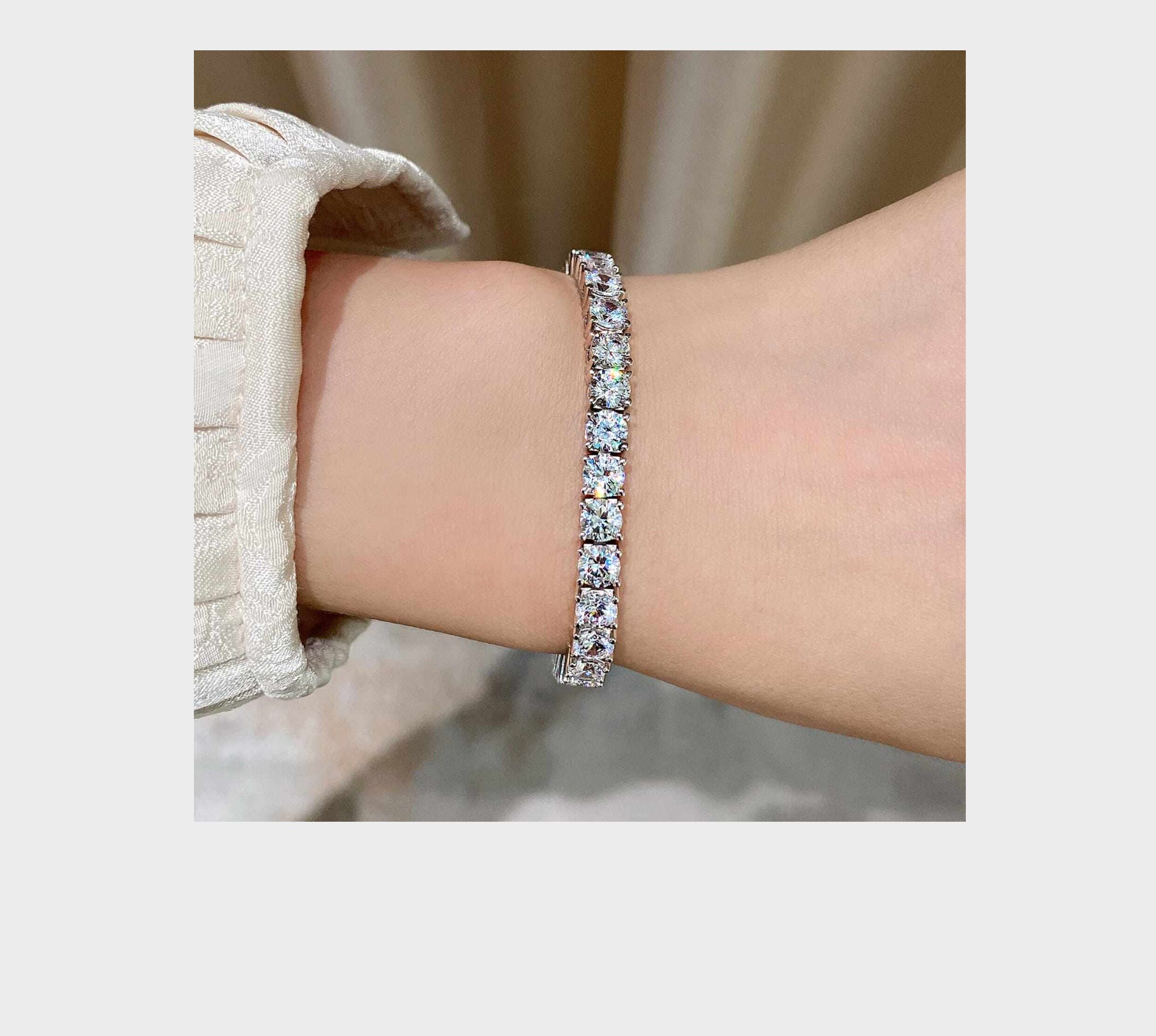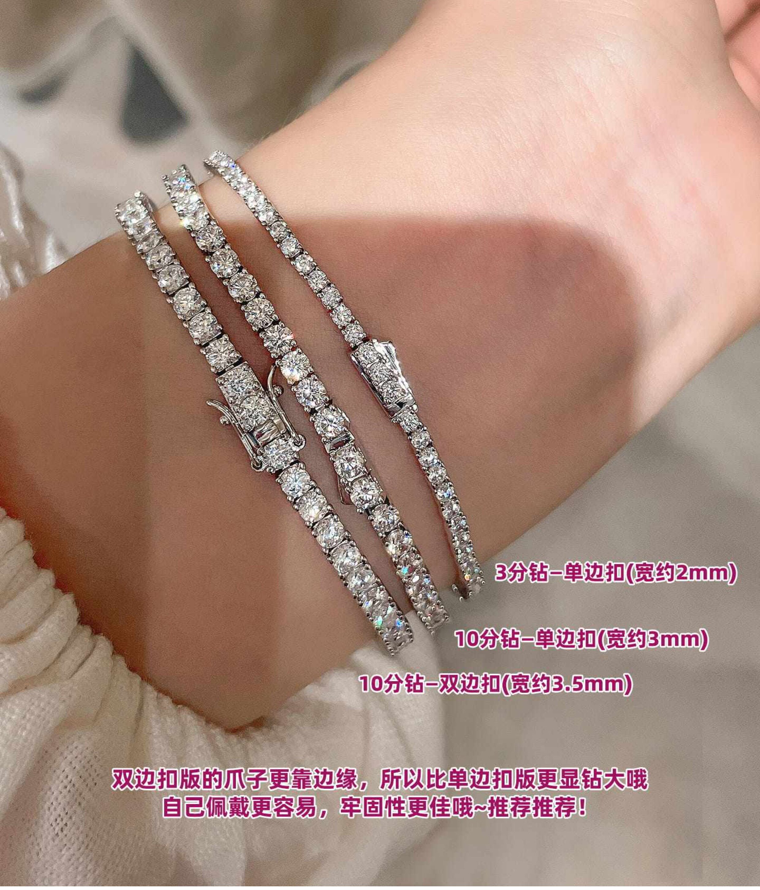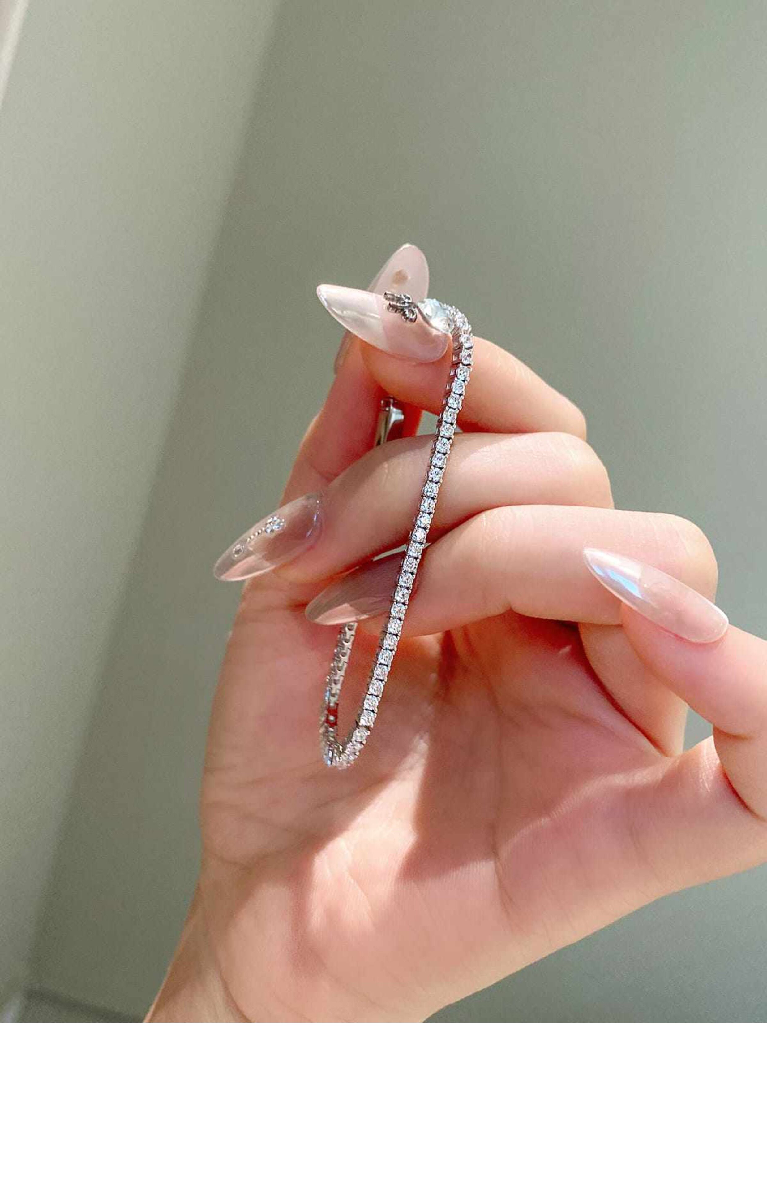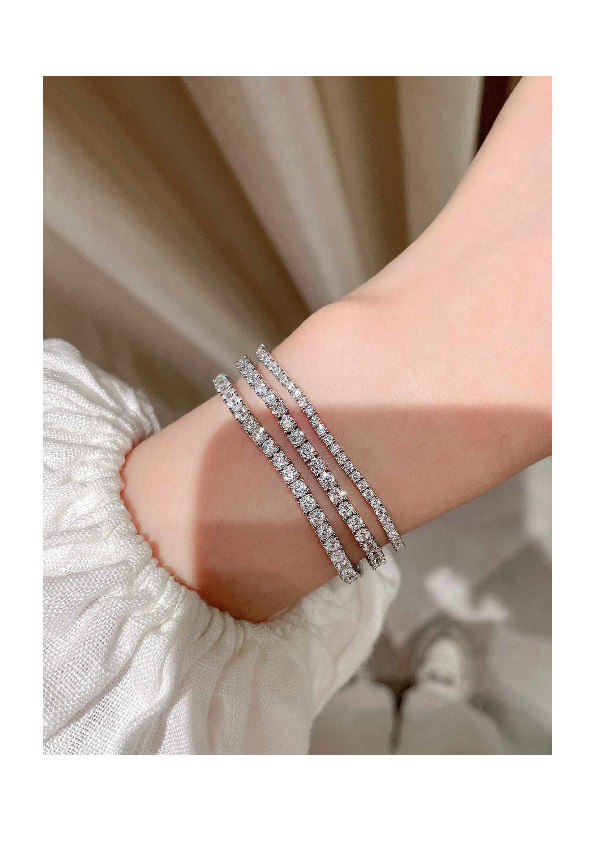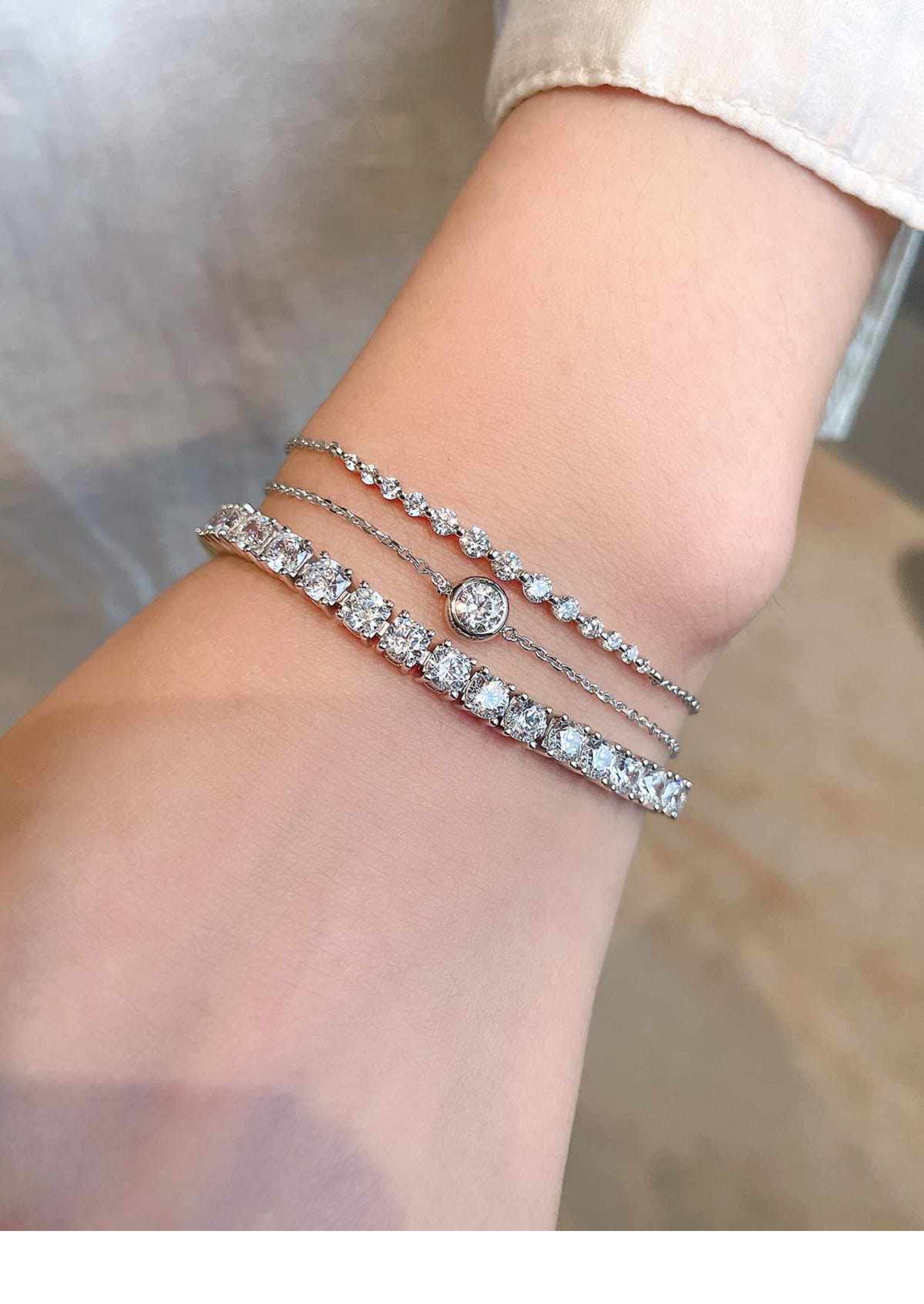 Full Diamond Bracelet for Women, Tennis Chain, Row of Diamonds, Zircon, Artificial Diamonds, Sterling Silver, Full Diamonds, Crushed Diamonds, Dazzling, Light Luxury, Niche, Exquisite