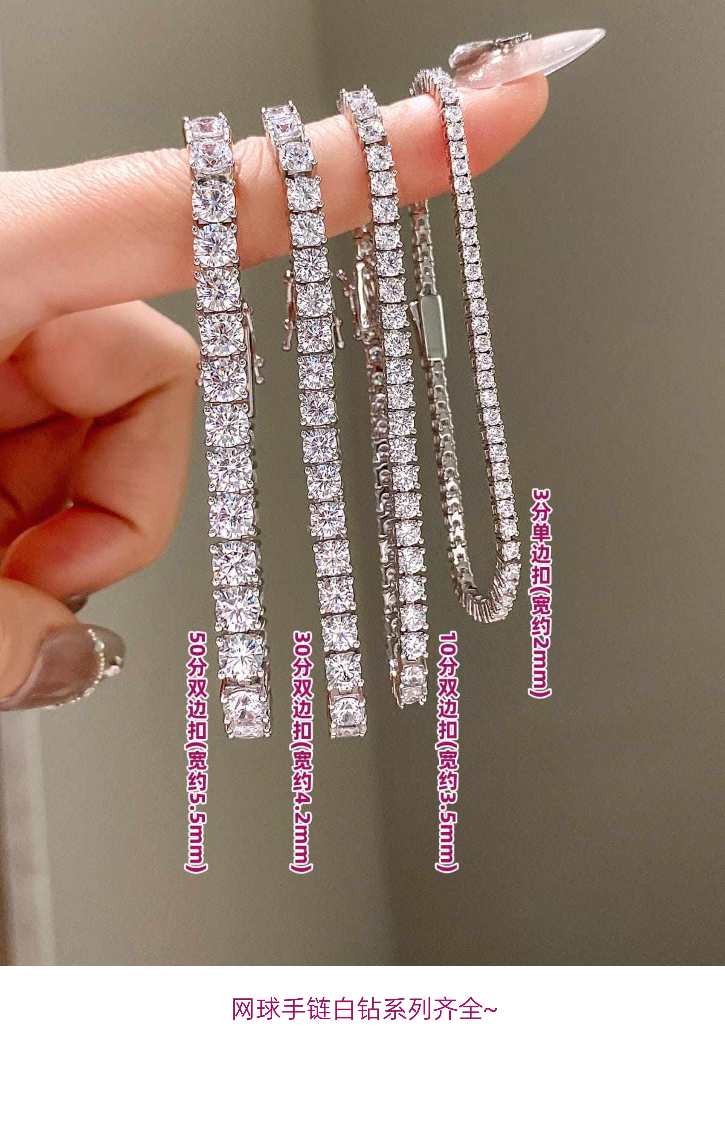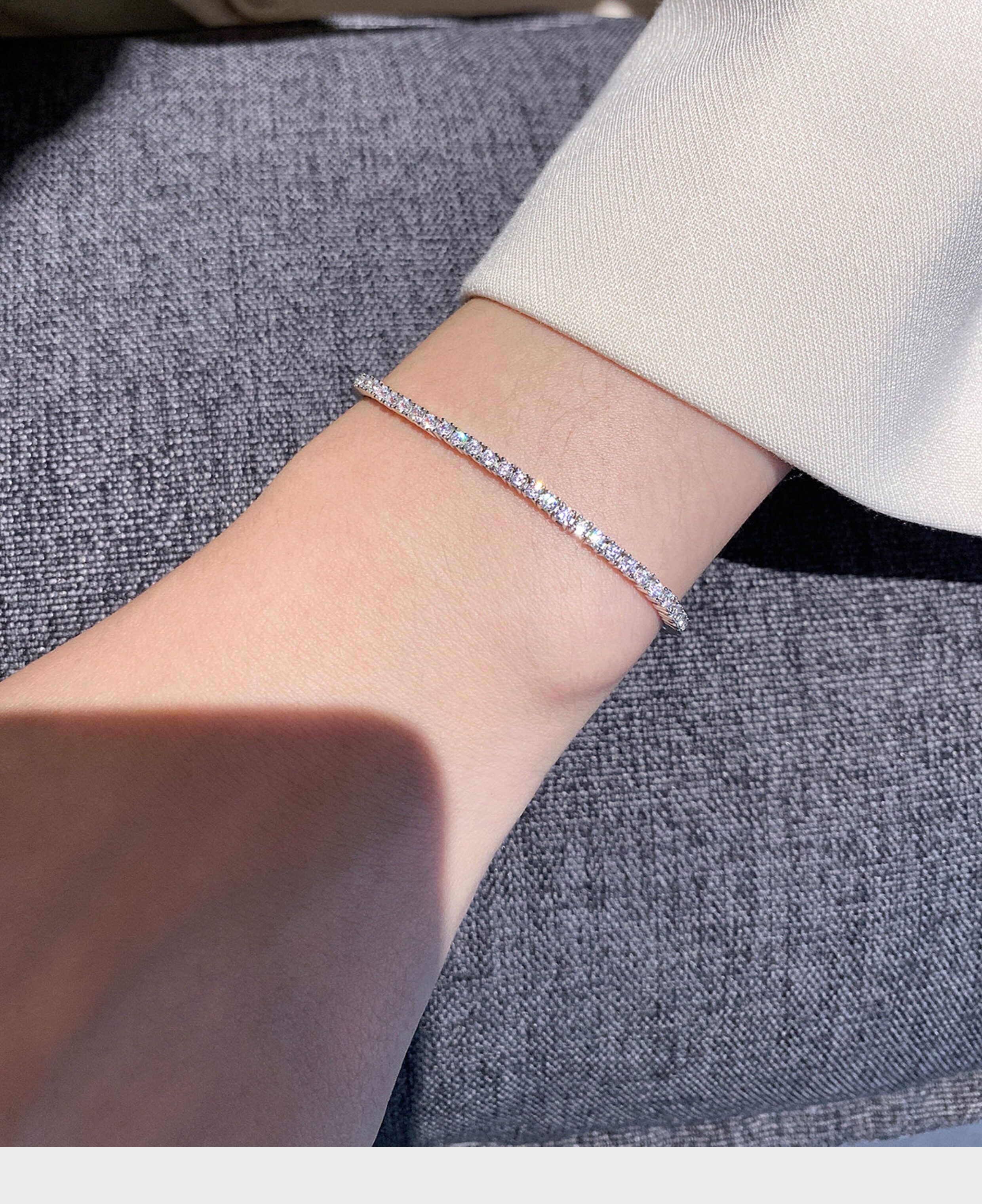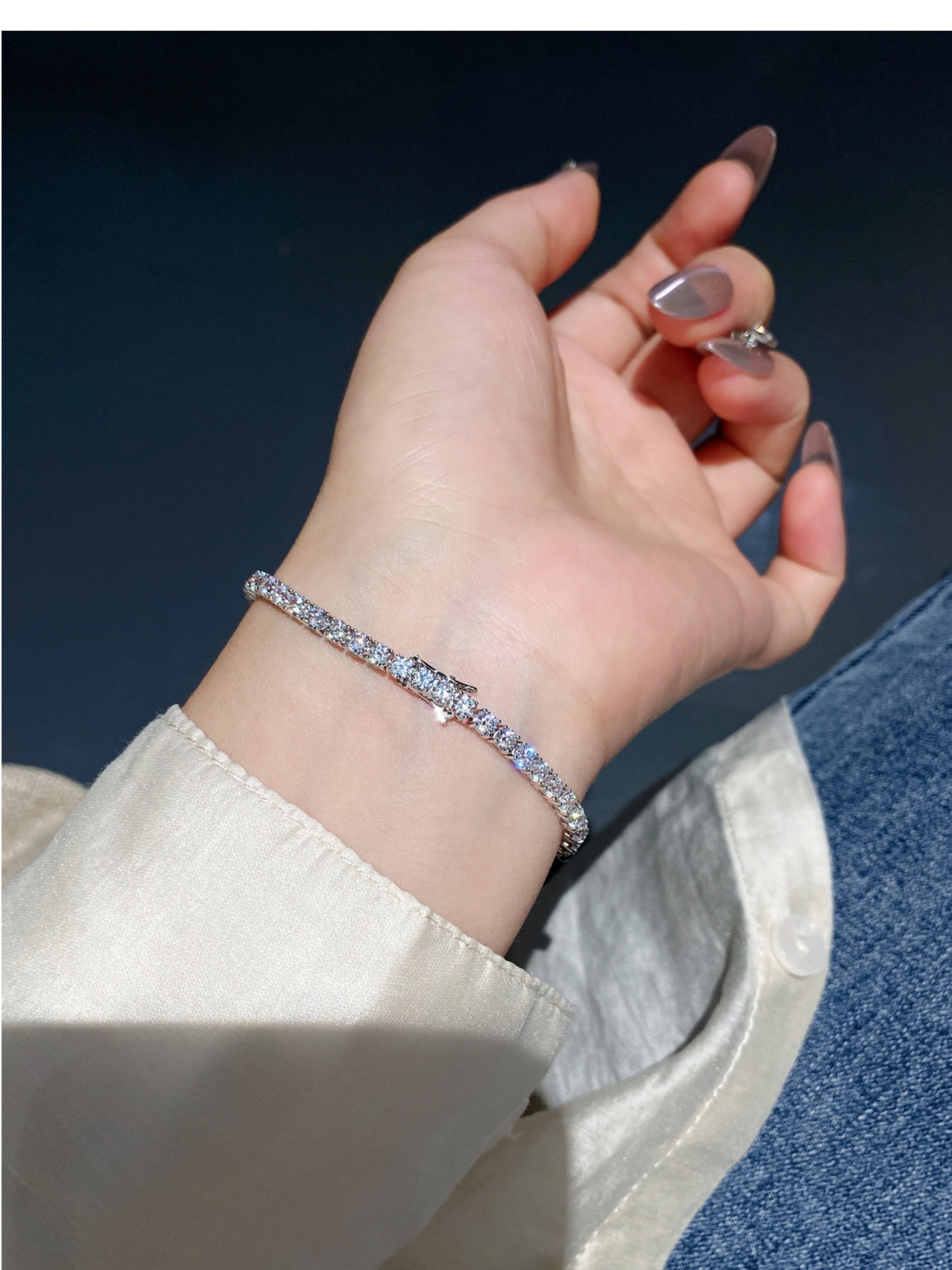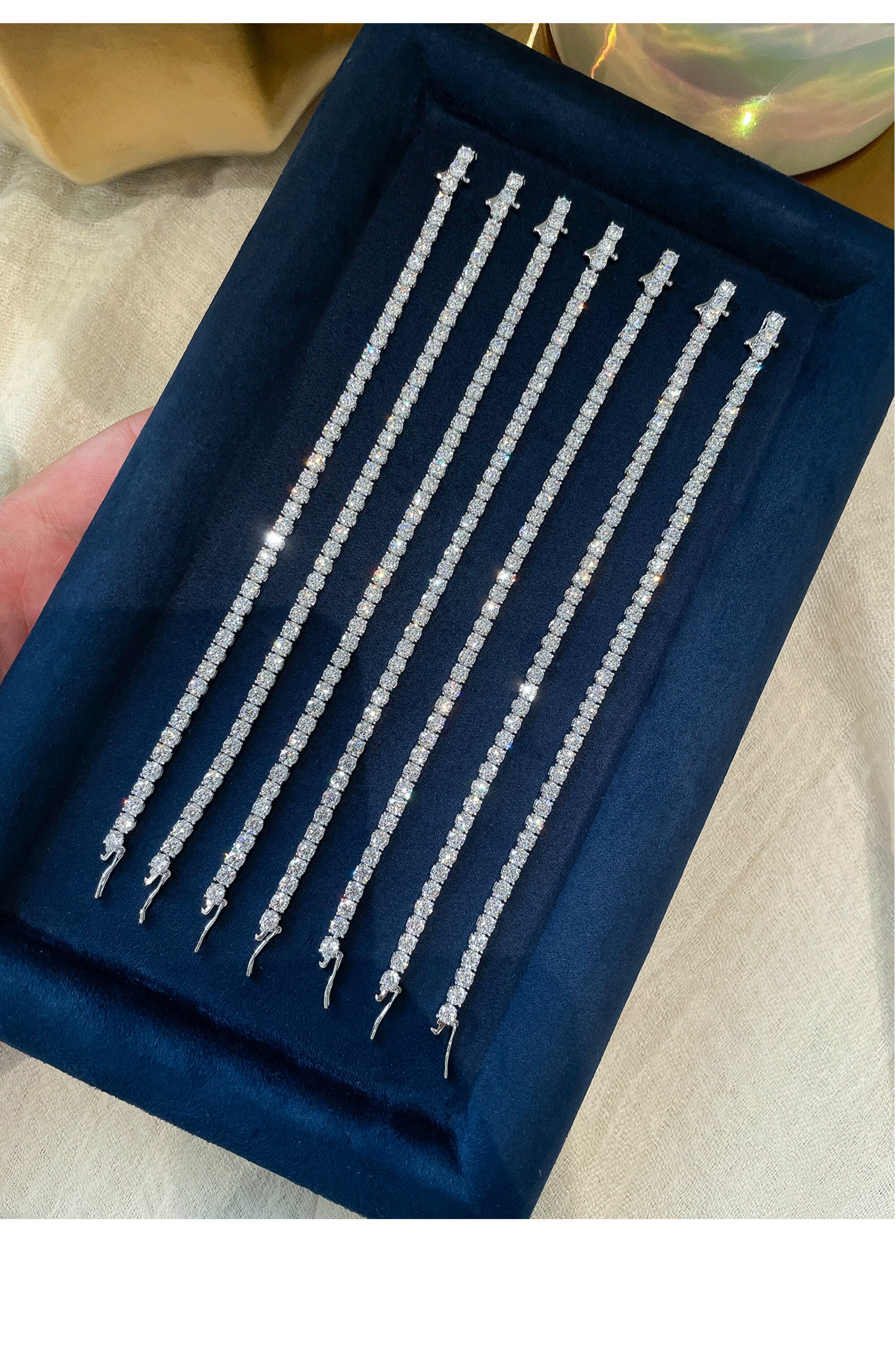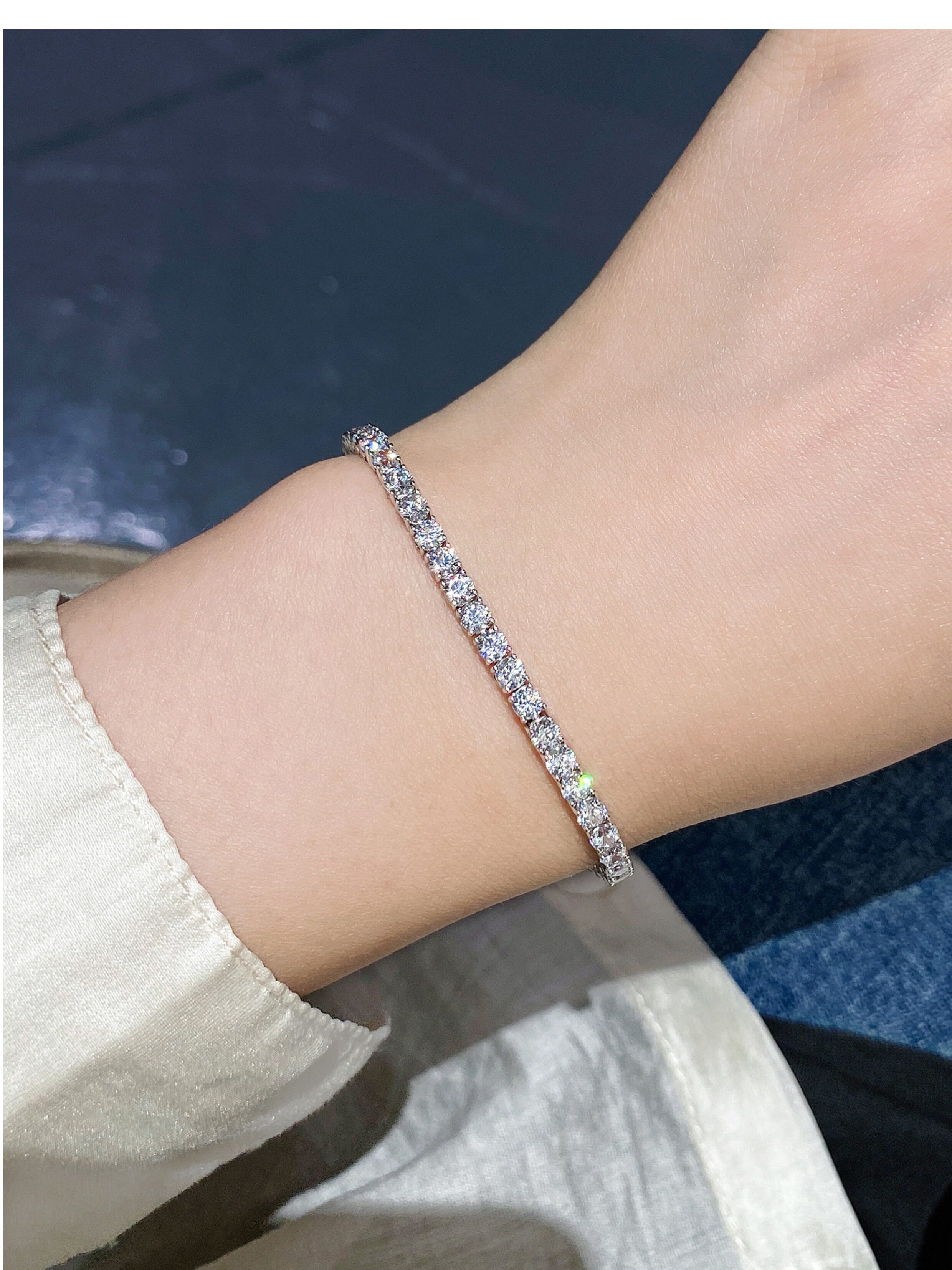 Full Diamond Bracelet for Women, Tennis Chain, Row of Diamonds, Zircon, Artificial Diamonds, Sterling Silver, Full Diamonds, Crushed Diamonds, Dazzling, Light Luxury, Niche, Exquisite
