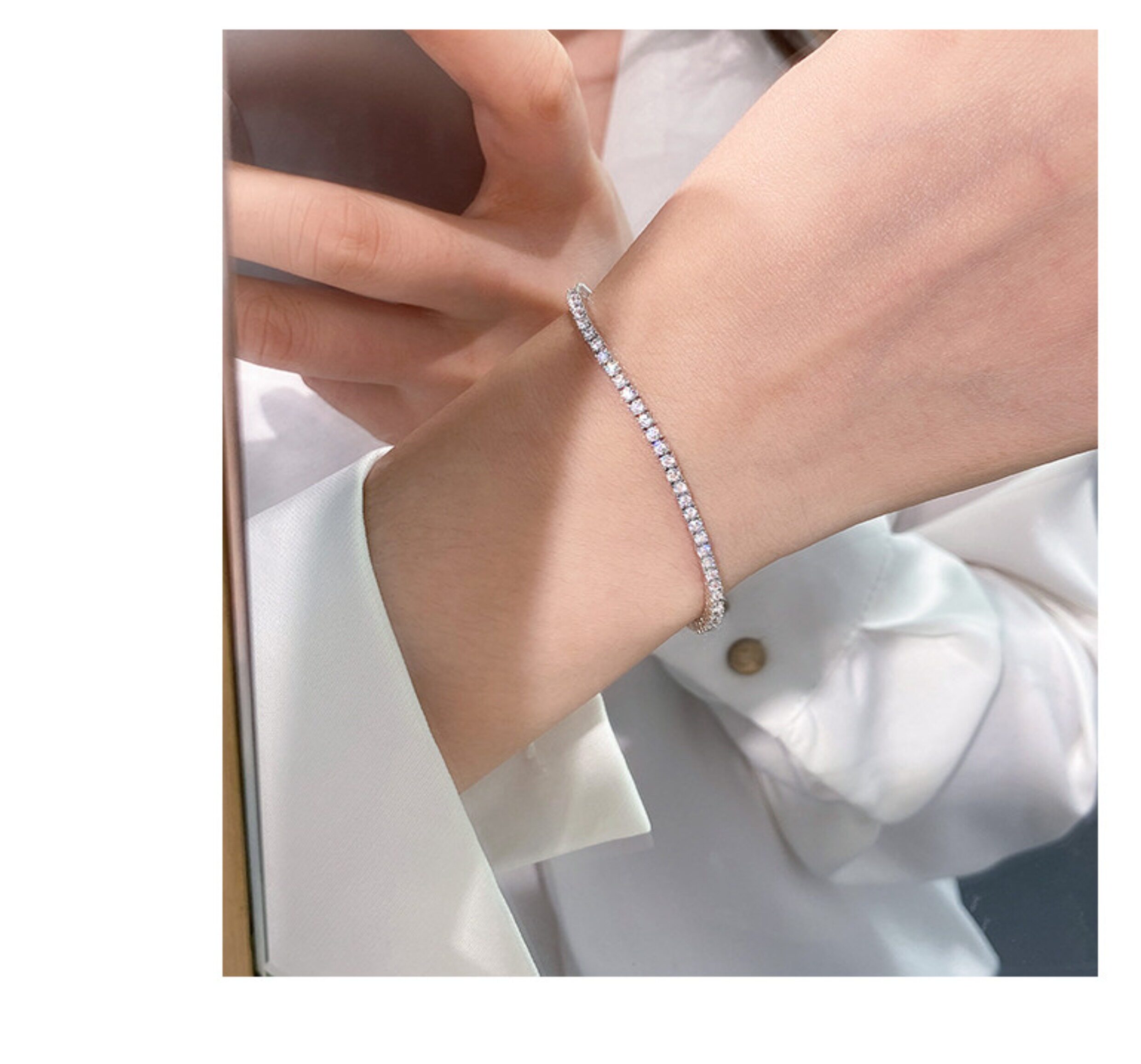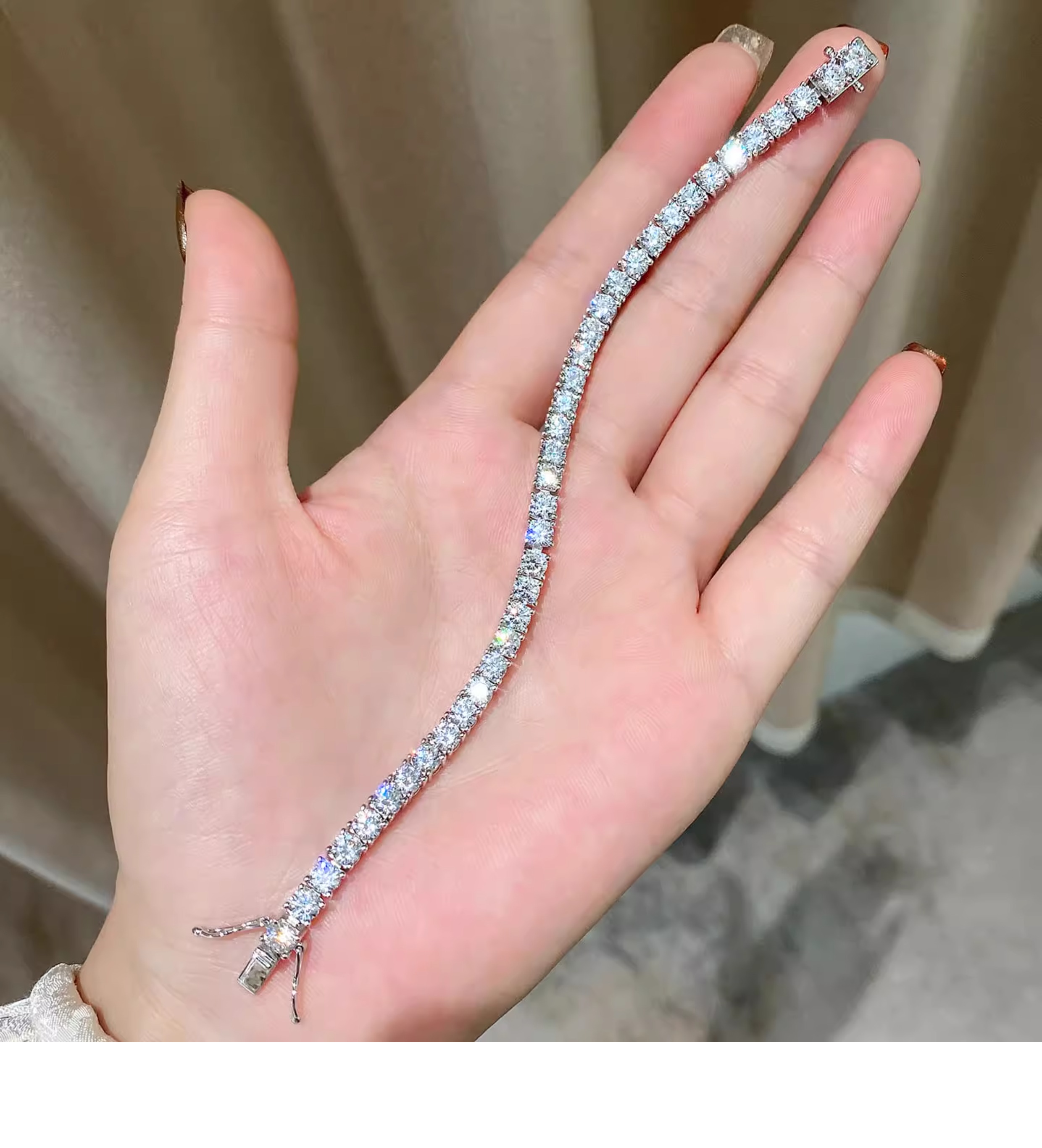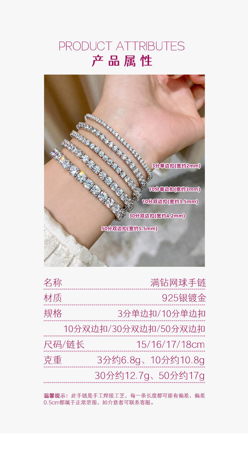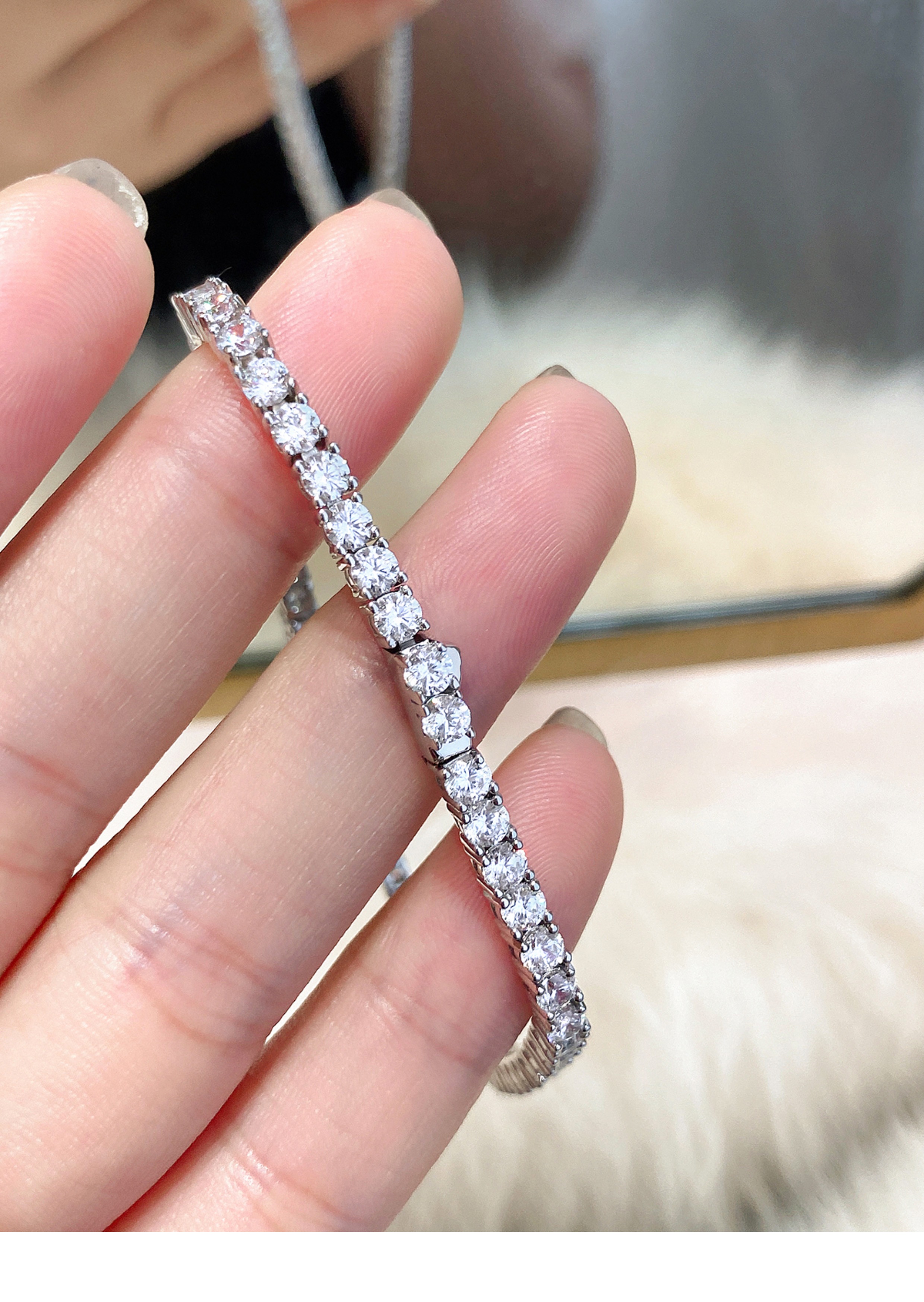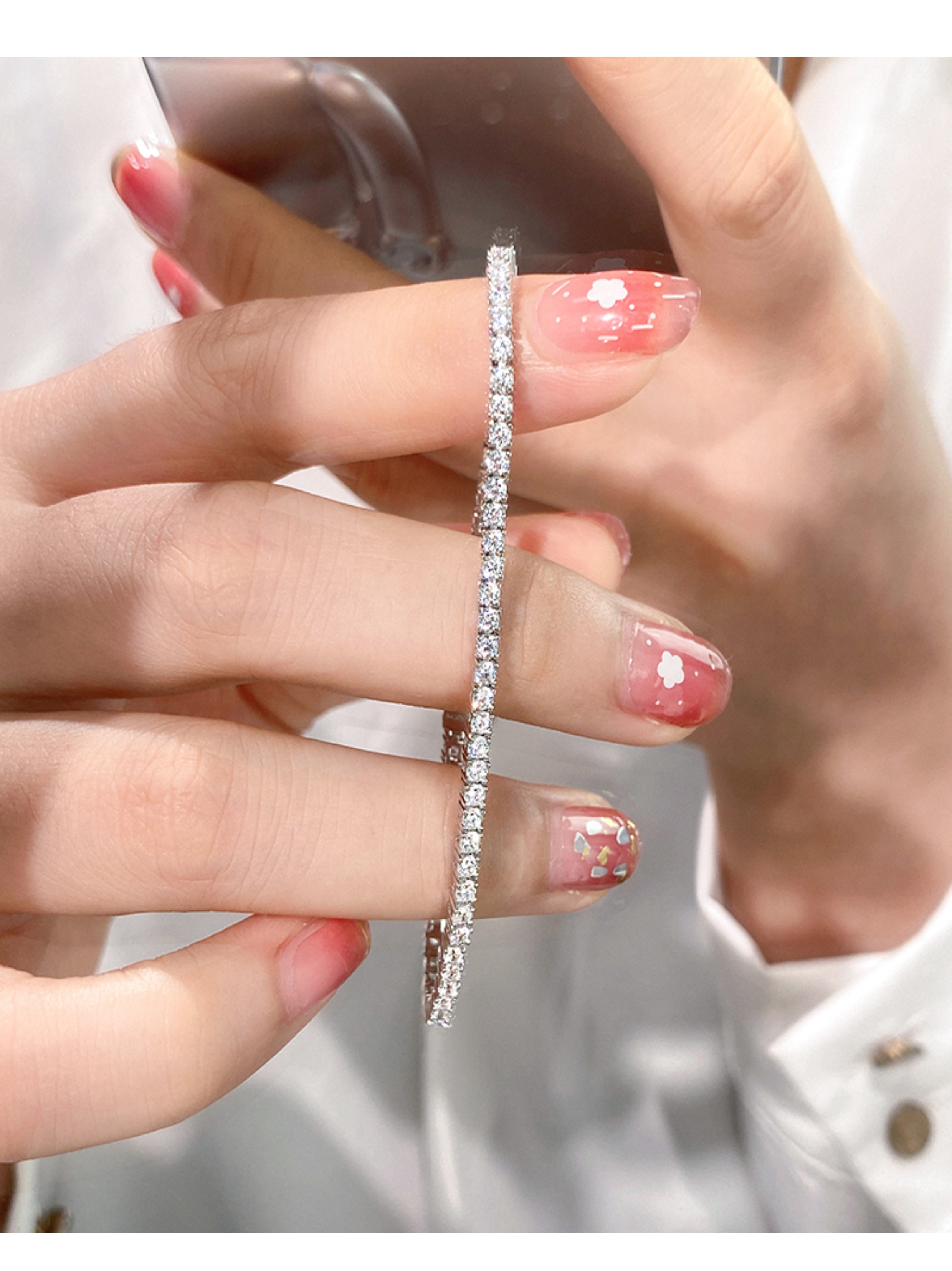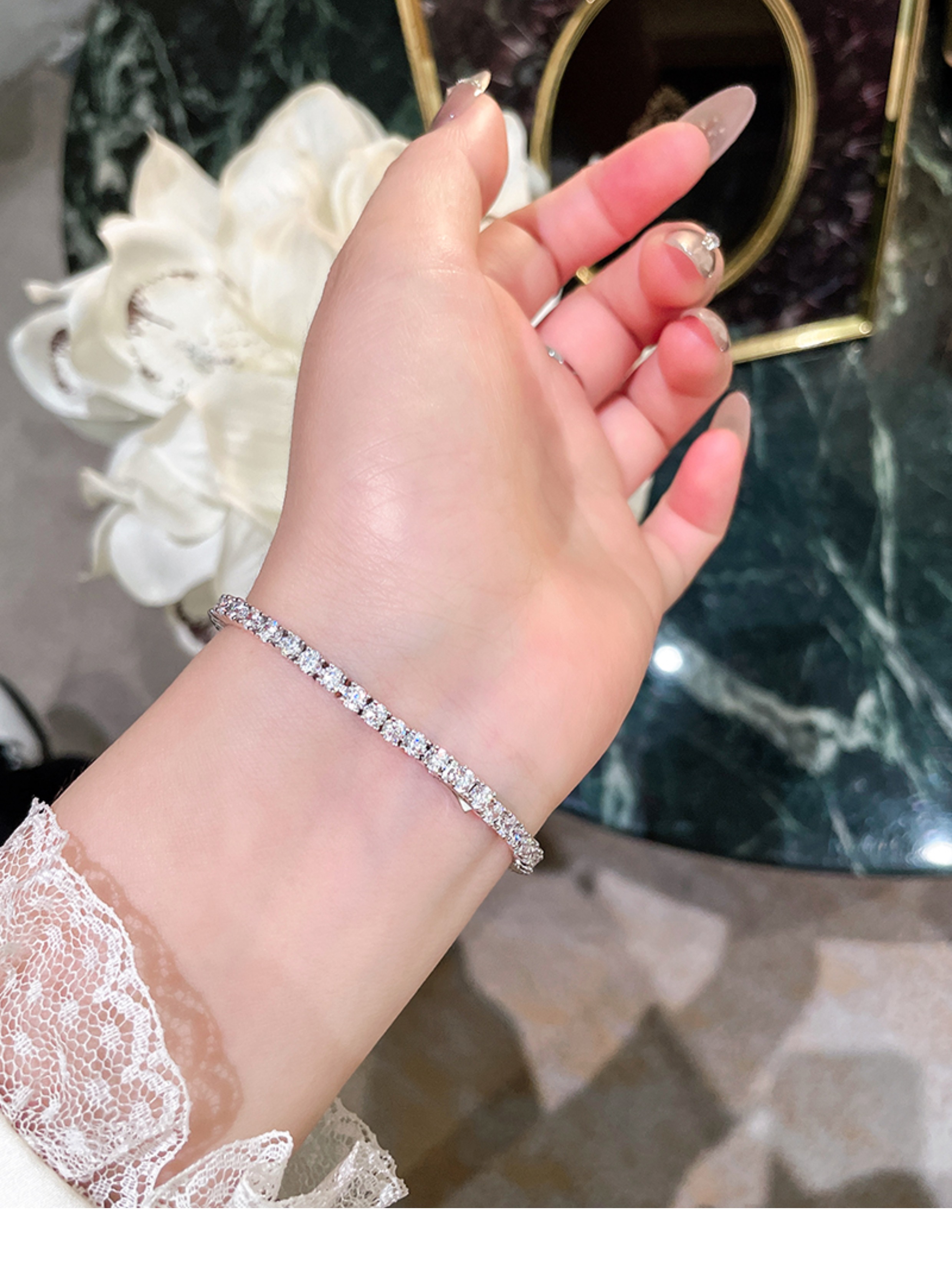 Full Diamond Bracelet for Women, Tennis Chain, Row of Diamonds, Zircon, Artificial Diamonds, Sterling Silver, Full Diamonds, Crushed Diamonds, Dazzling, Light Luxury, Niche, Exquisite