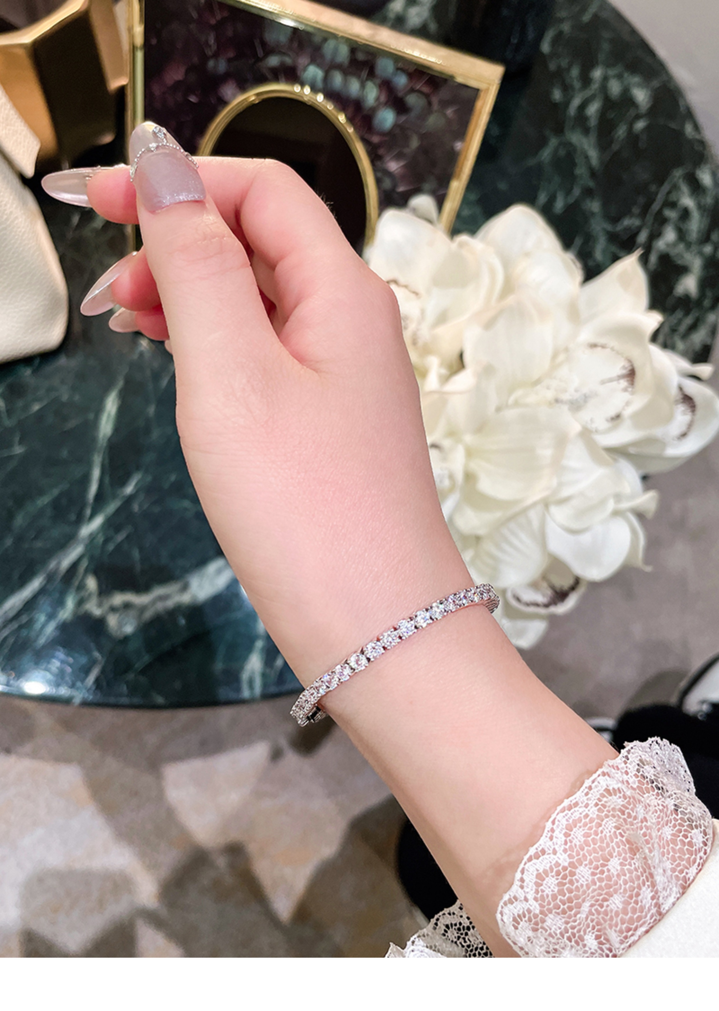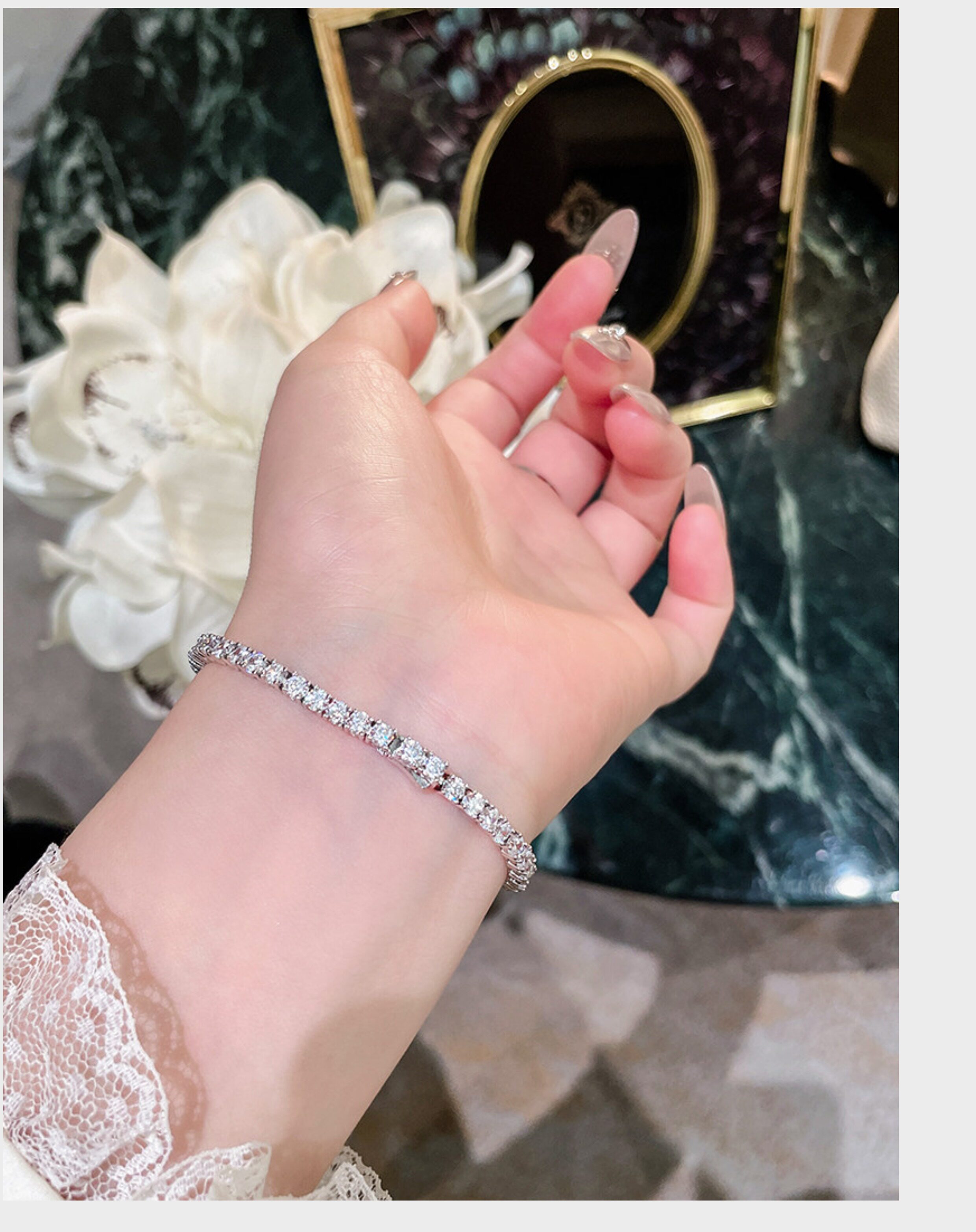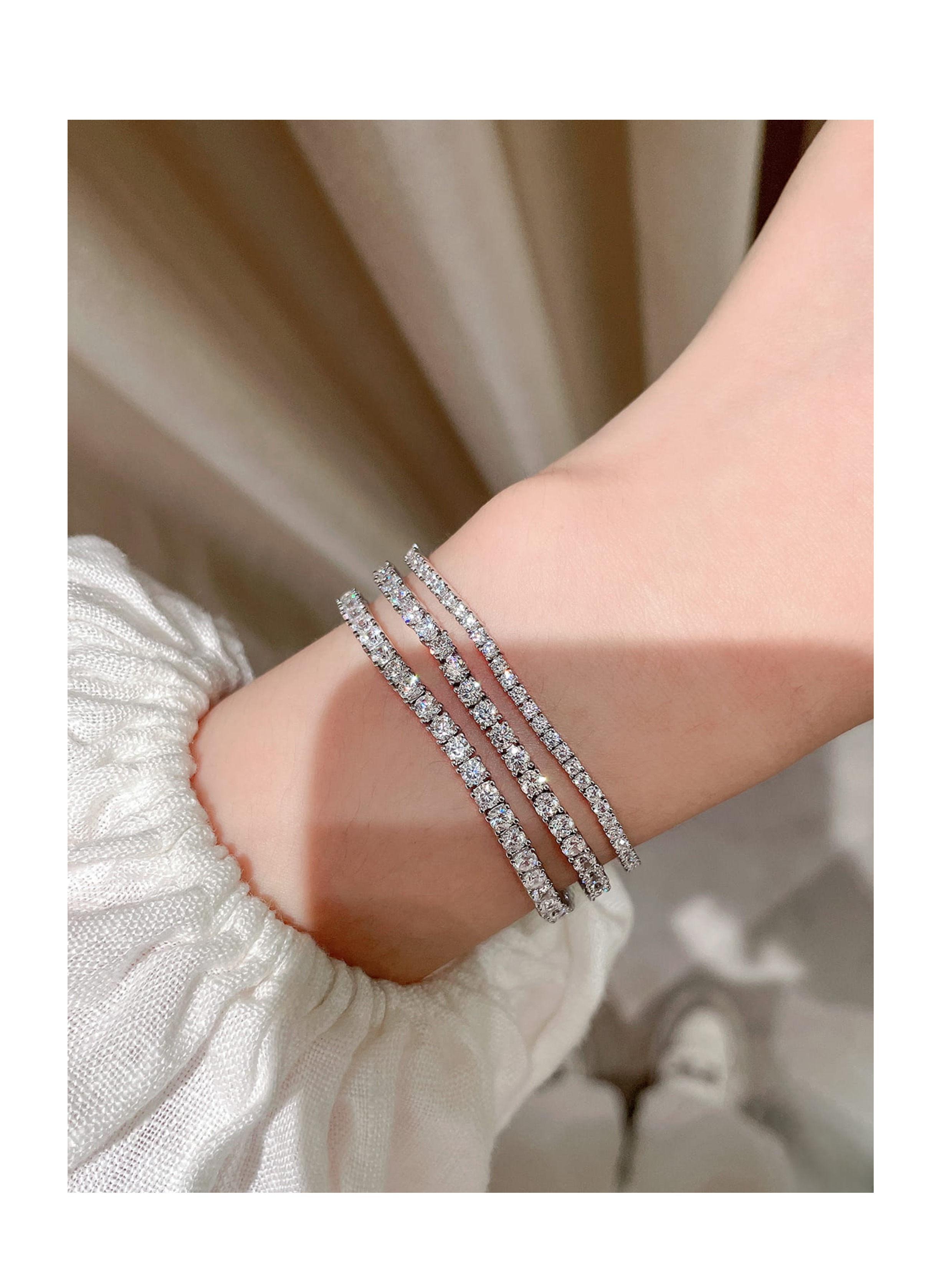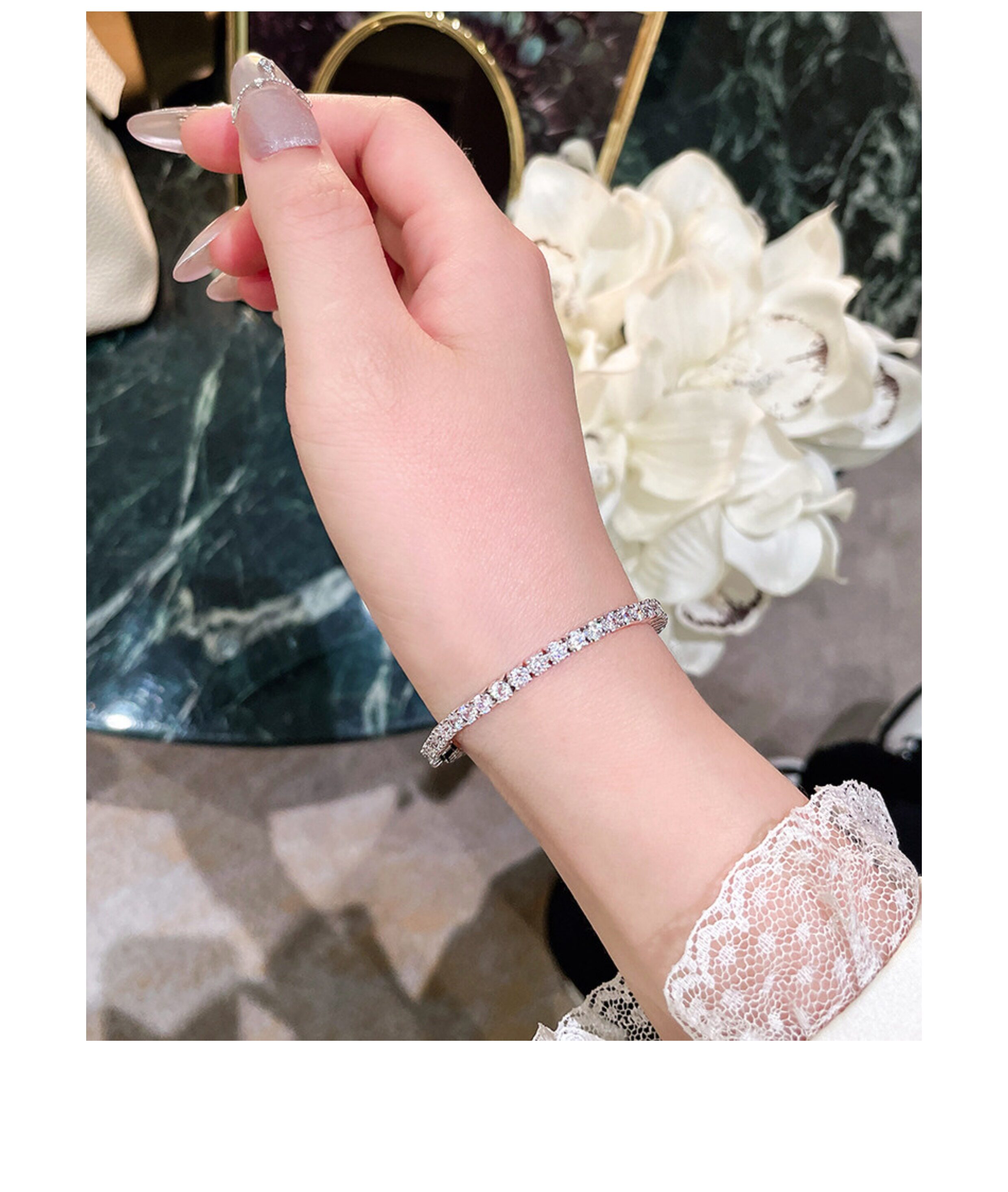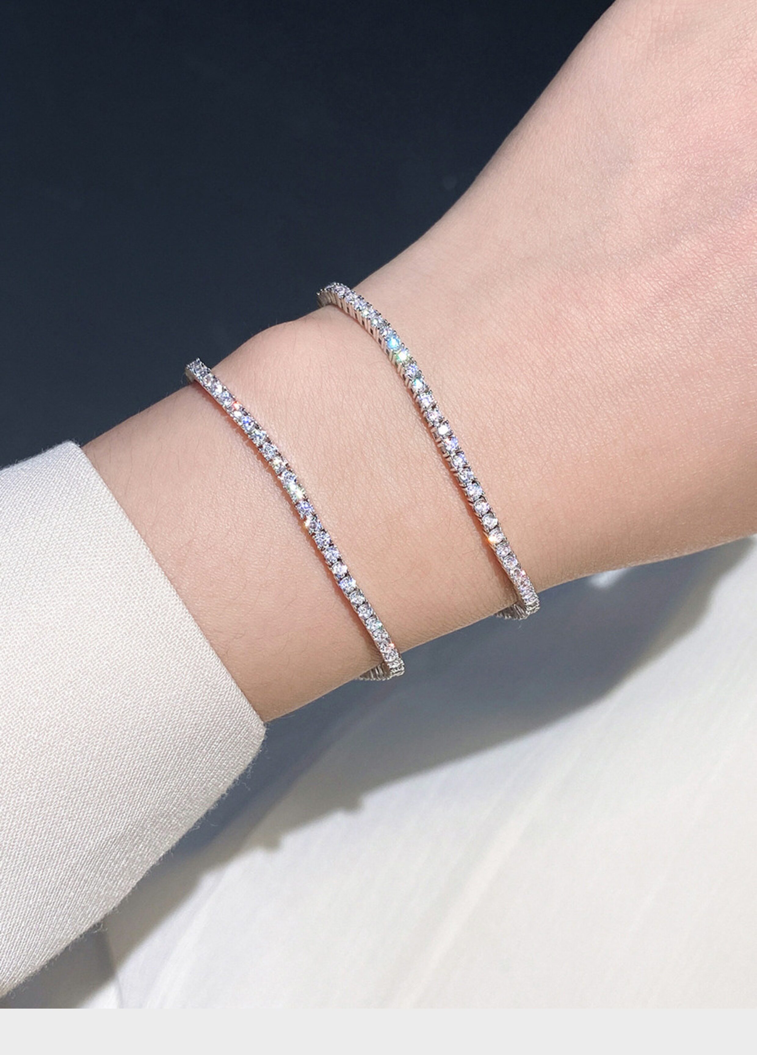Full Diamond Bracelet for Women, Tennis Chain, Row of Diamonds, Zircon, Artificial Diamonds, Sterling Silver, Full Diamonds, Crushed Diamonds, Dazzling, Light Luxury, Niche, Exquisite