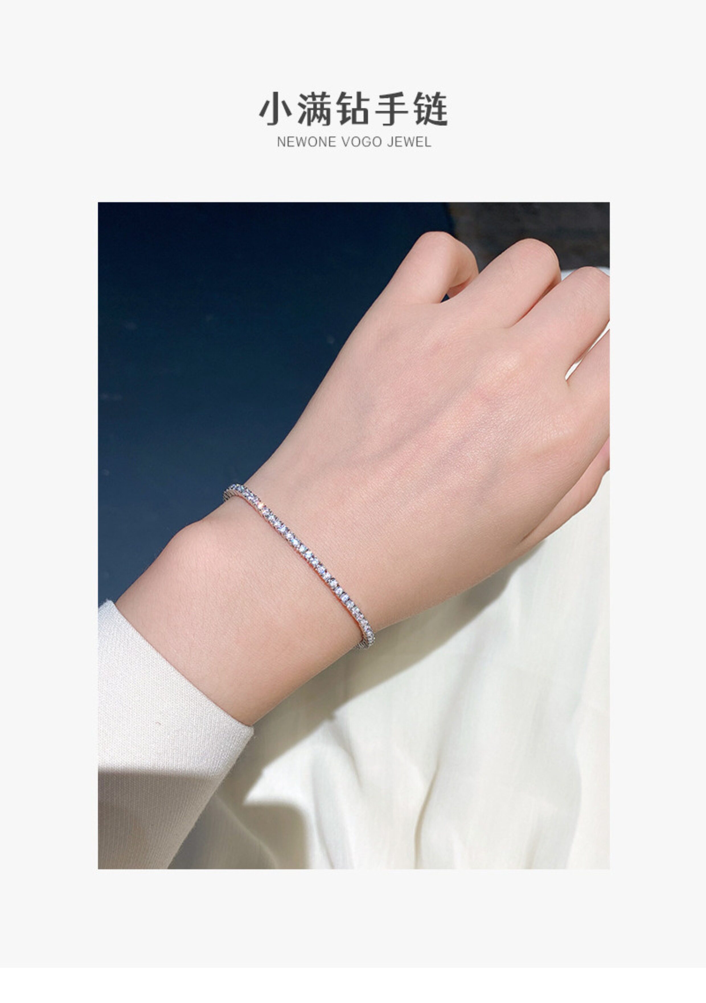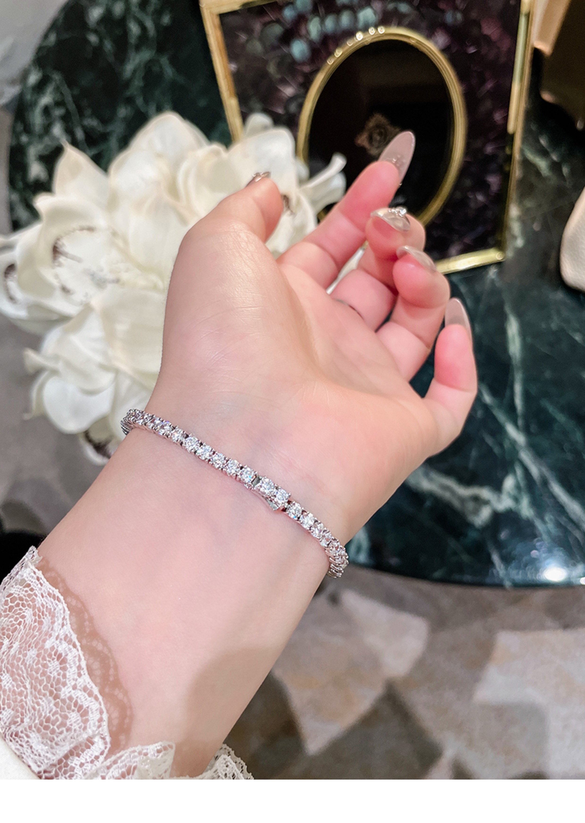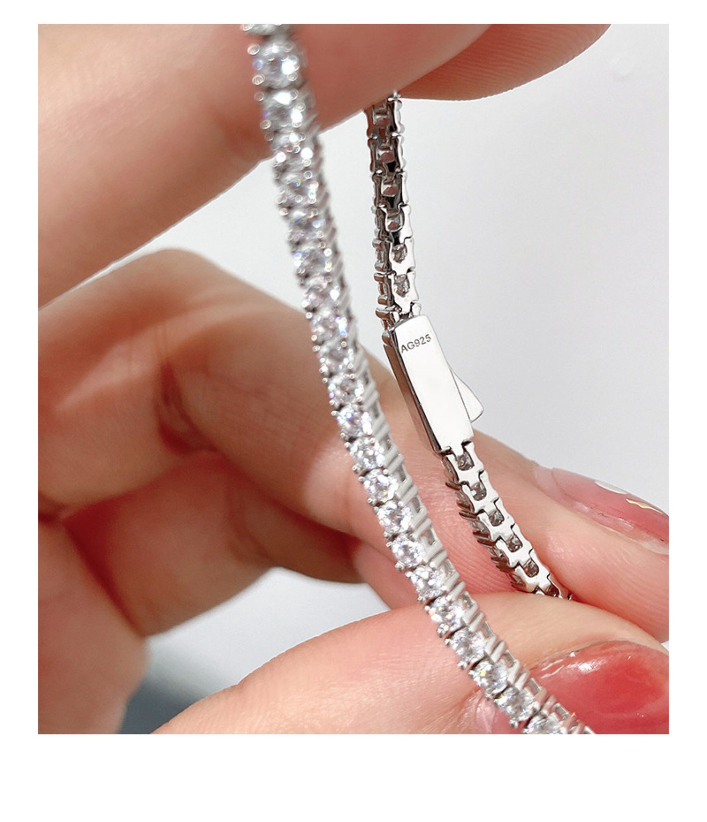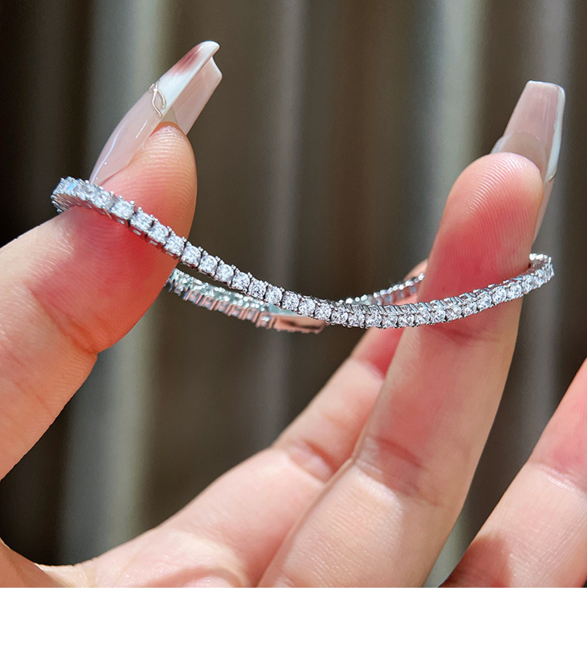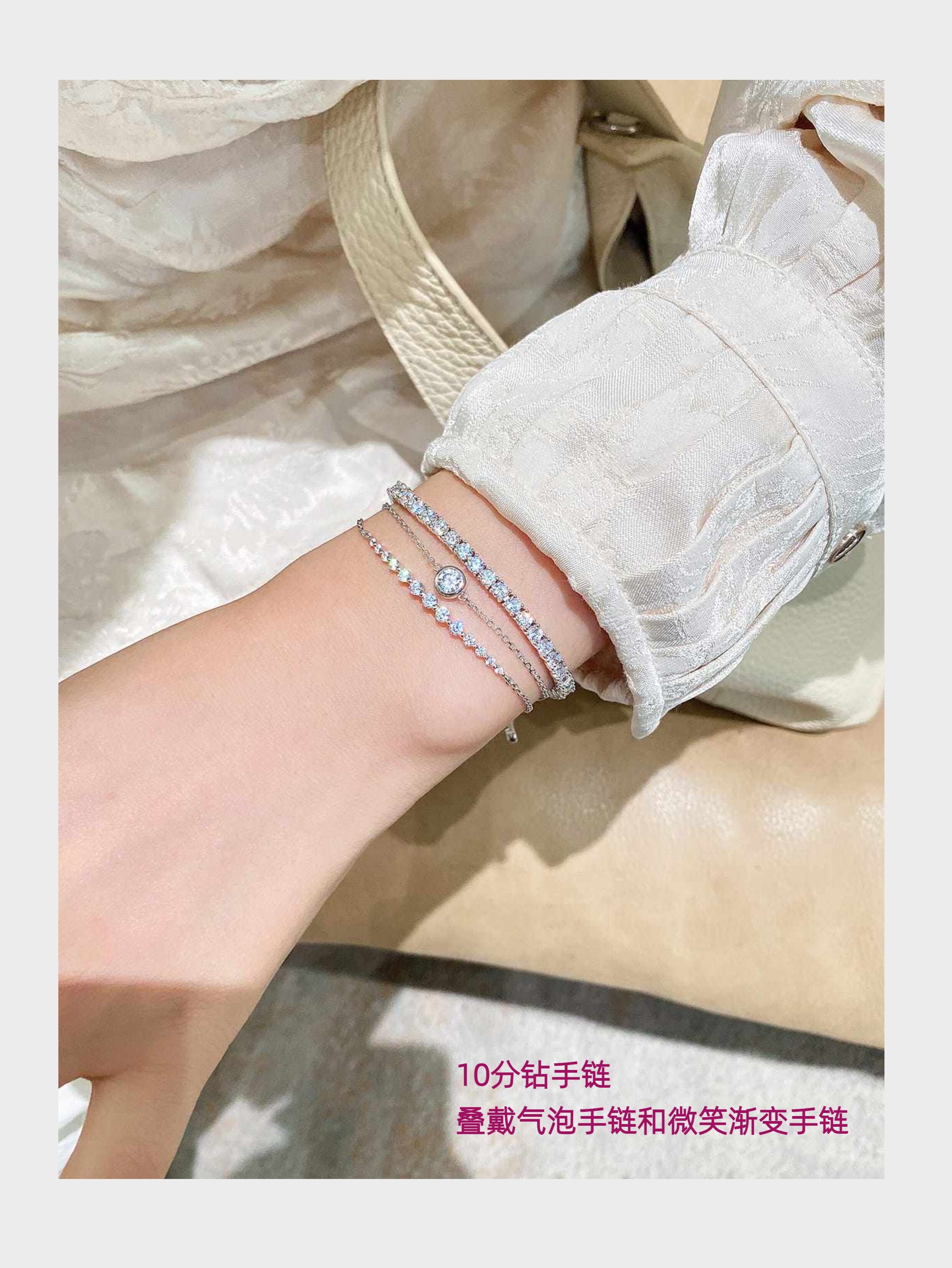 Full Diamond Bracelet for Women, Tennis Chain, Row of Diamonds, Zircon, Artificial Diamonds, Sterling Silver, Full Diamonds, Crushed Diamonds, Dazzling, Light Luxury, Niche, Exquisite