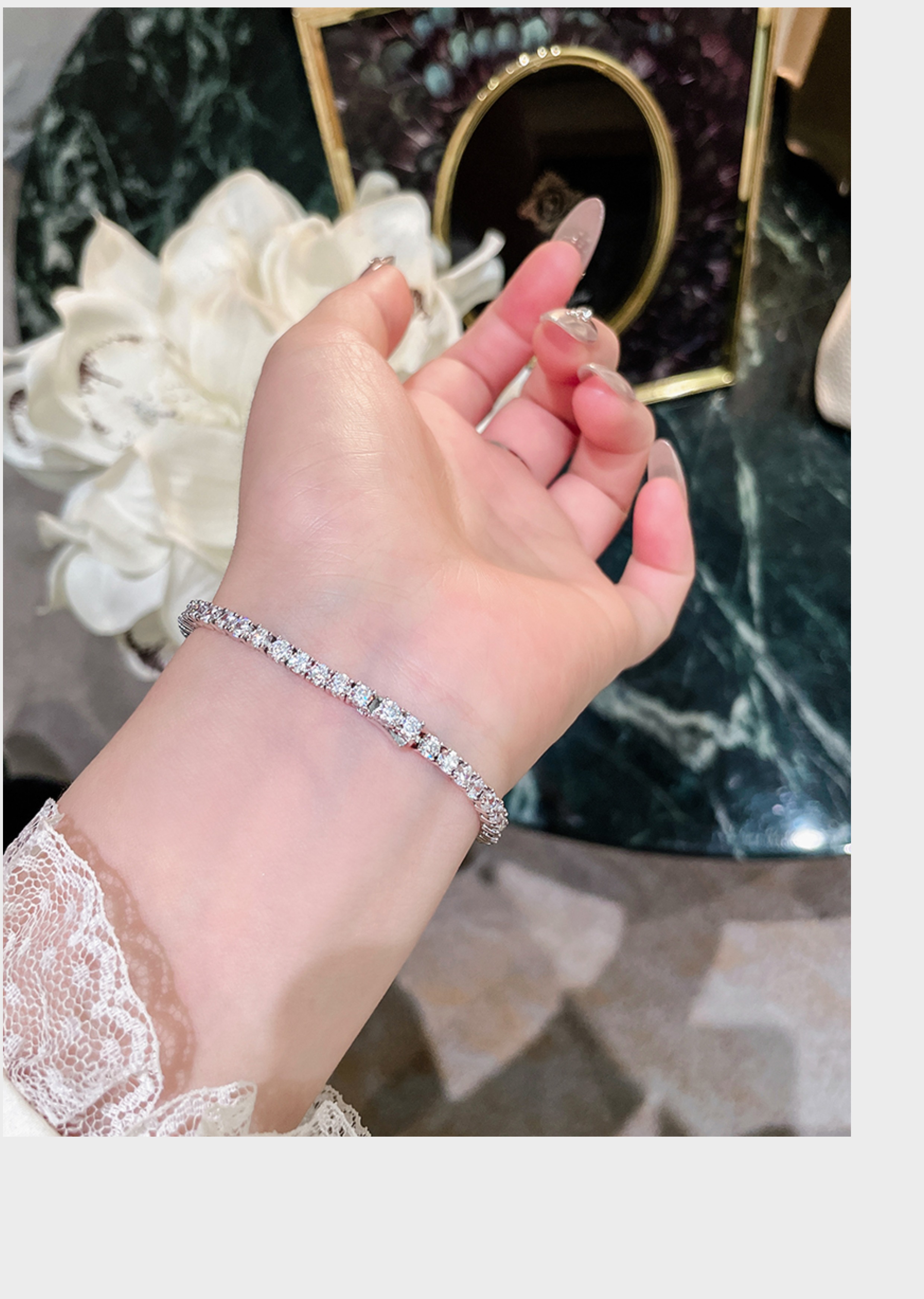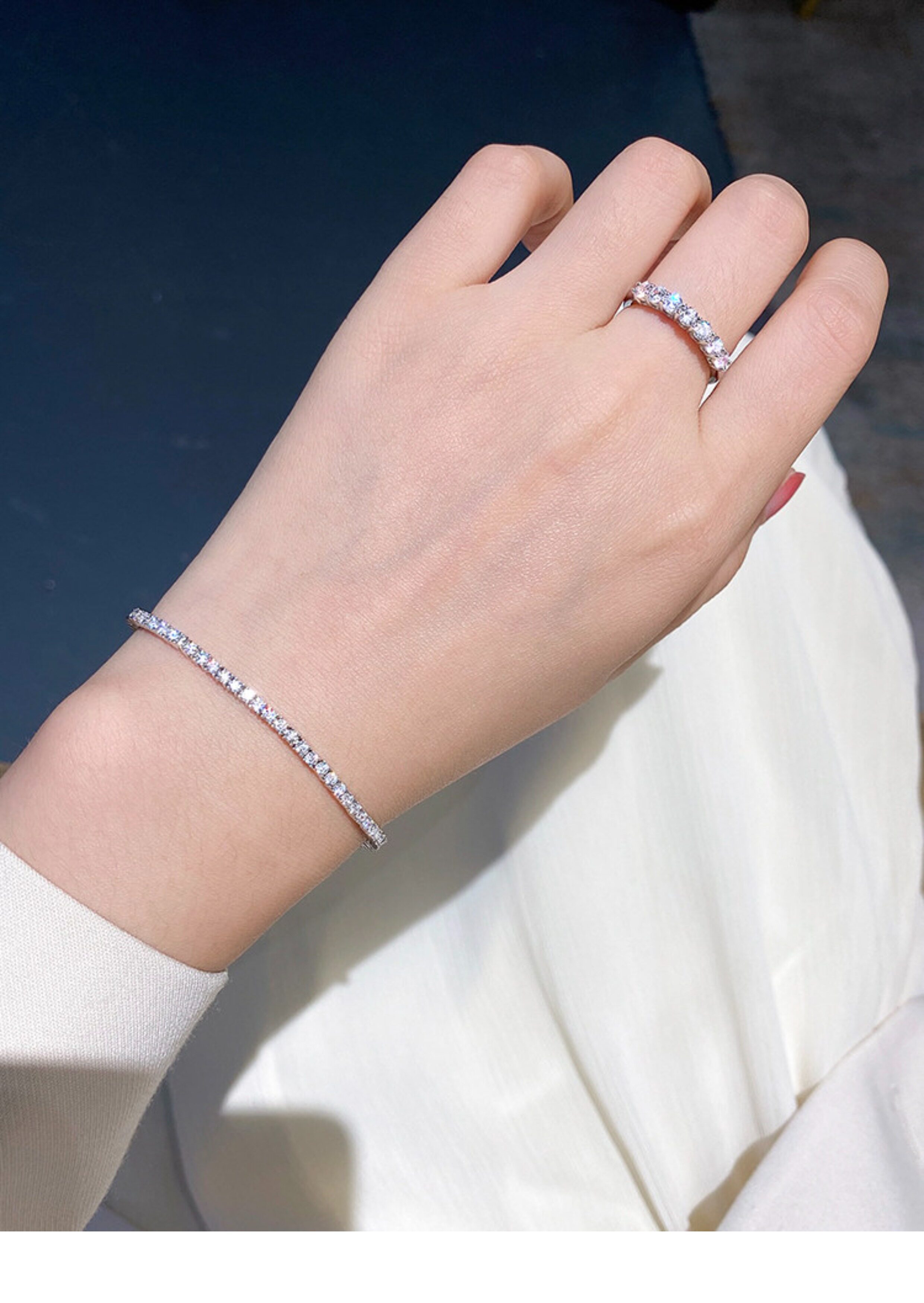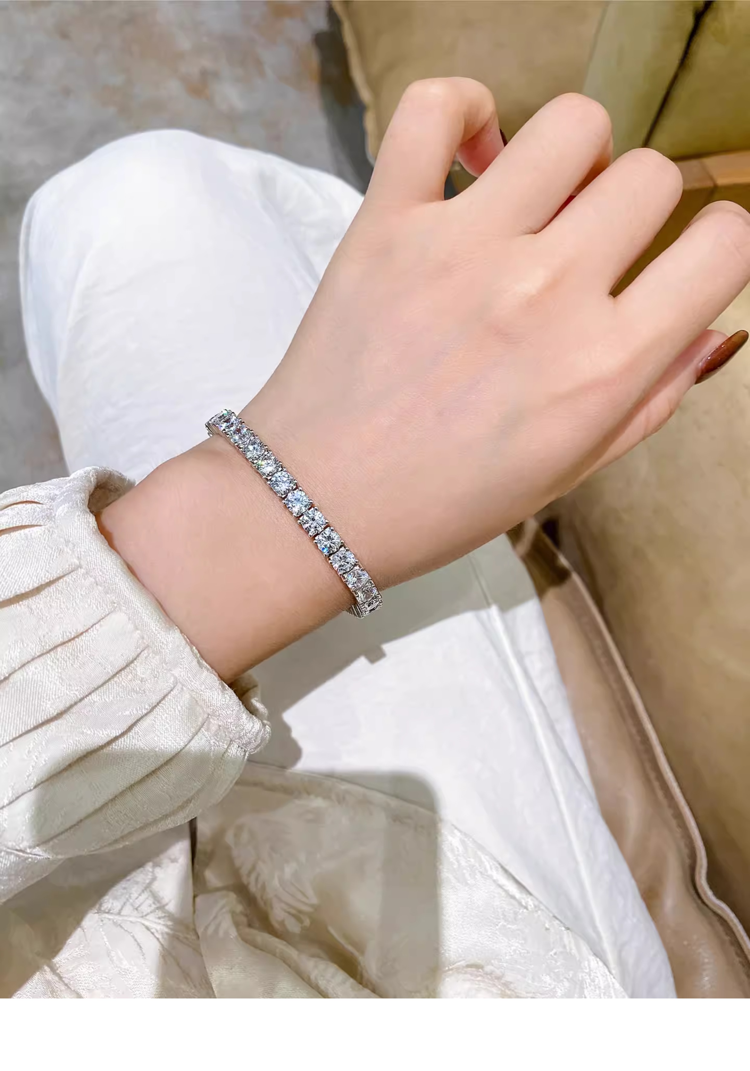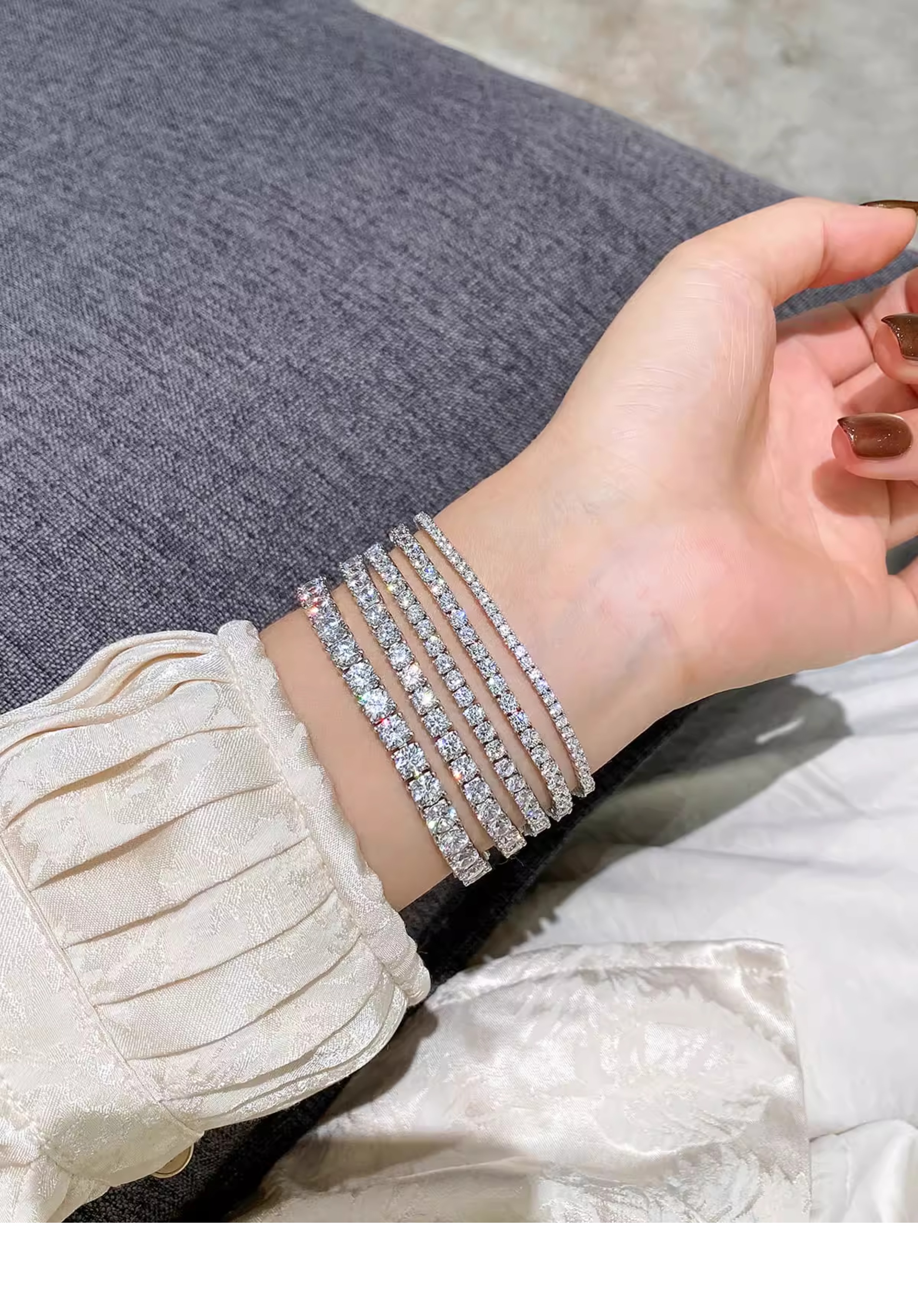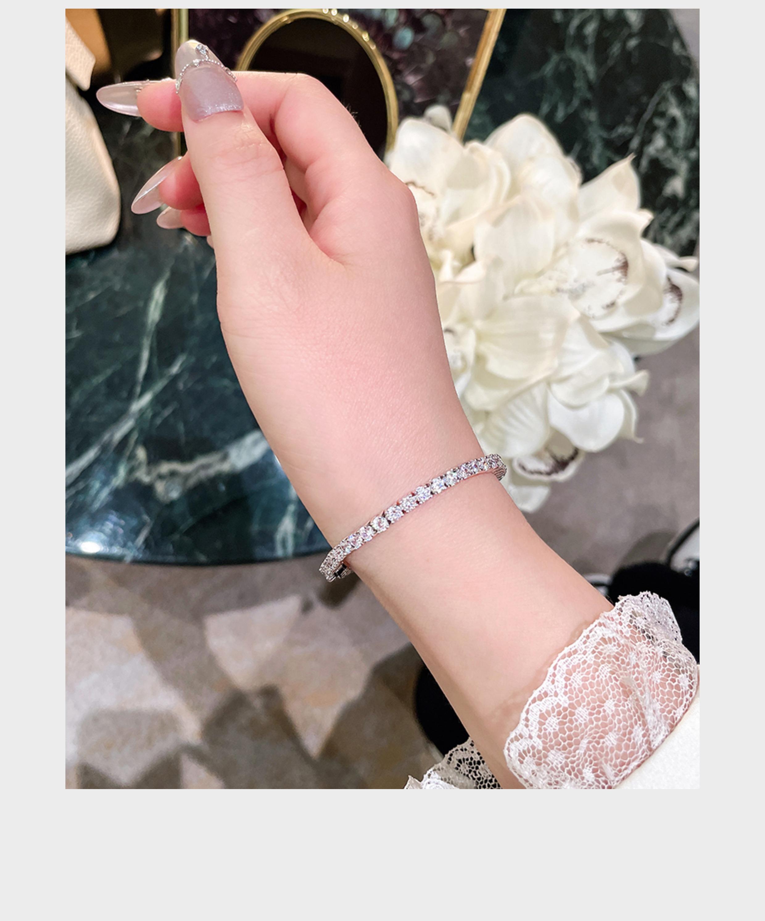 Full Diamond Bracelet for Women, Tennis Chain, Row of Diamonds, Zircon, Artificial Diamonds, Sterling Silver, Full Diamonds, Crushed Diamonds, Dazzling, Light Luxury, Niche, Exquisite