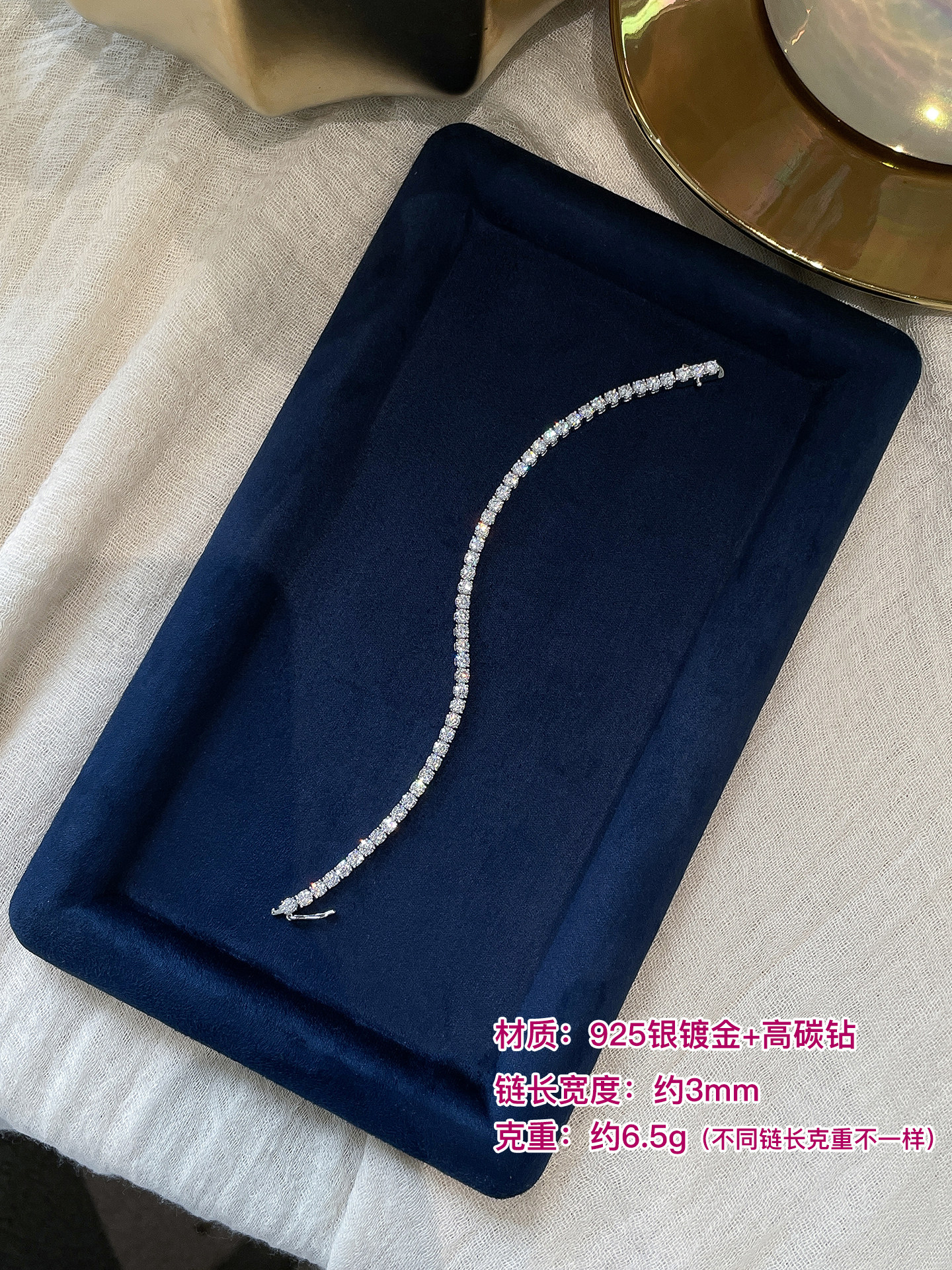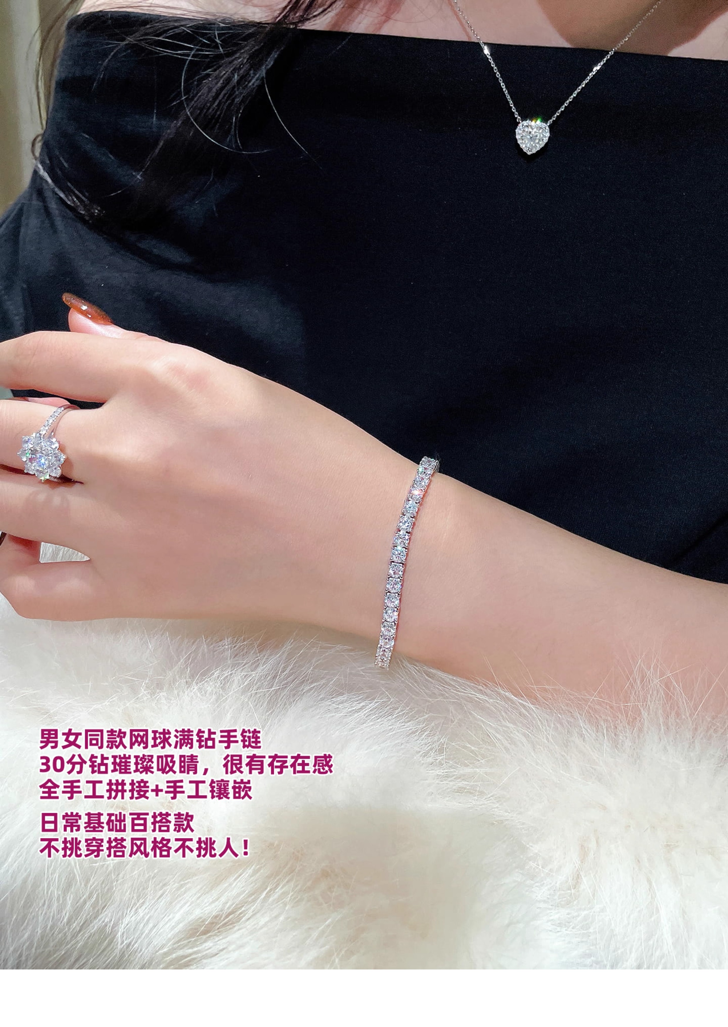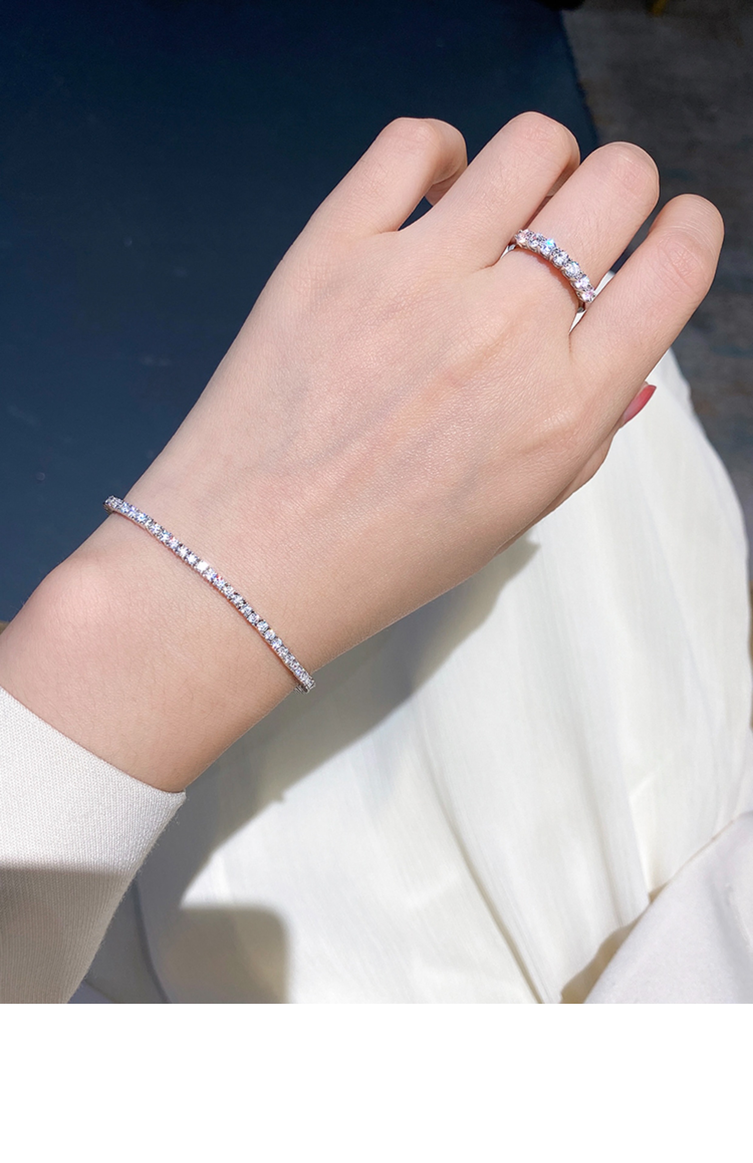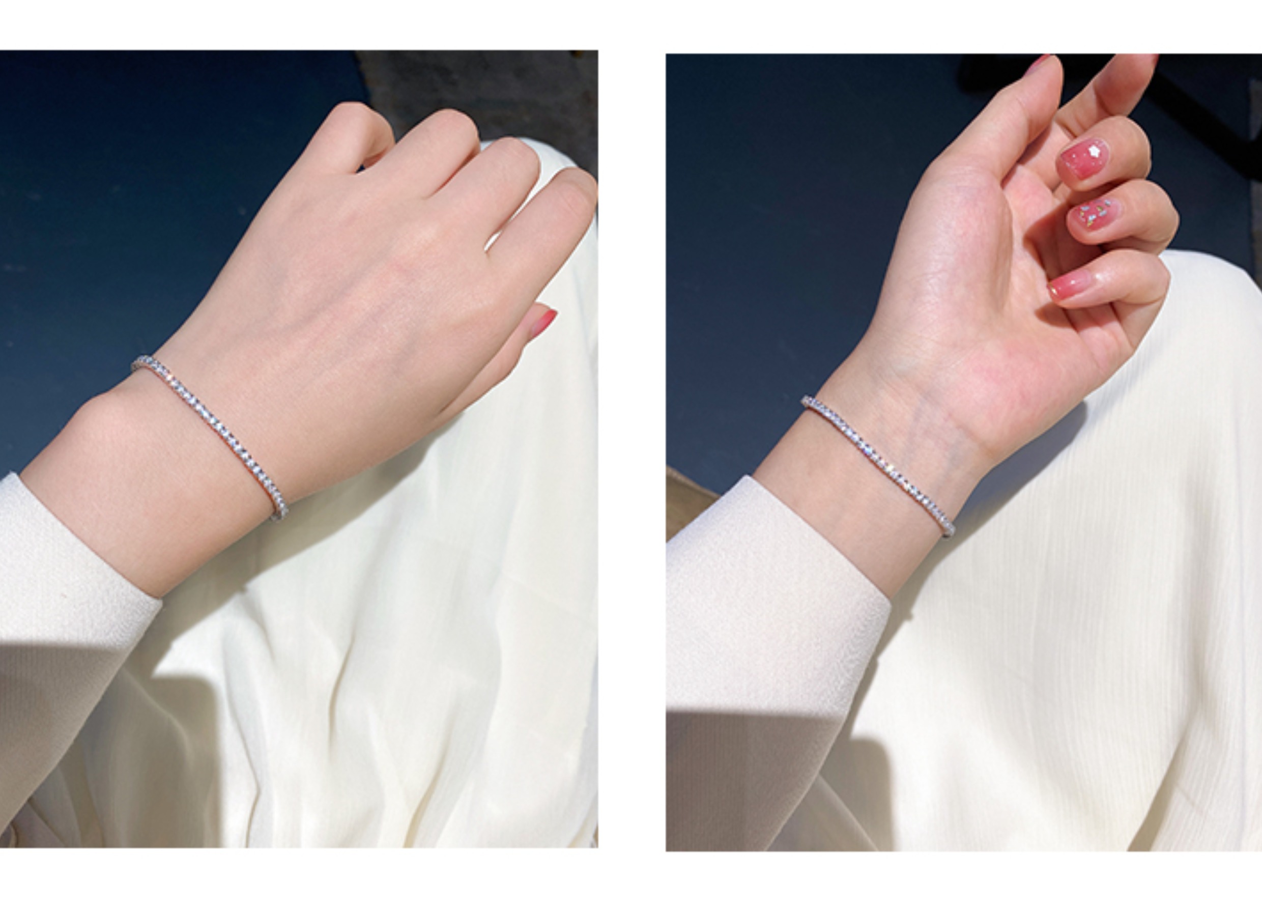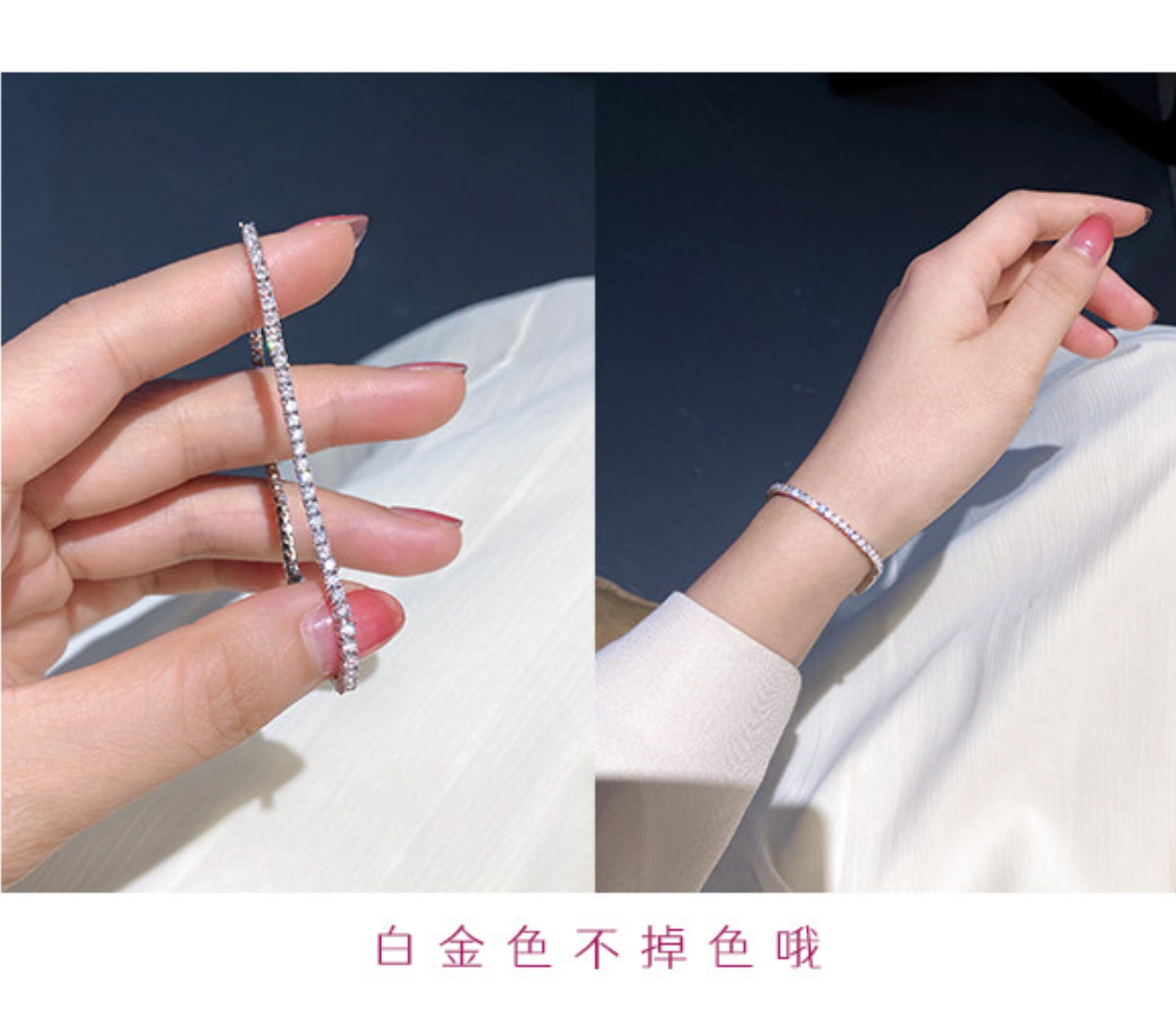Full Diamond Bracelet for Women, Tennis Chain, Row of Diamonds, Zircon, Artificial Diamonds, Sterling Silver, Full Diamonds, Crushed Diamonds, Dazzling, Light Luxury, Niche, Exquisite