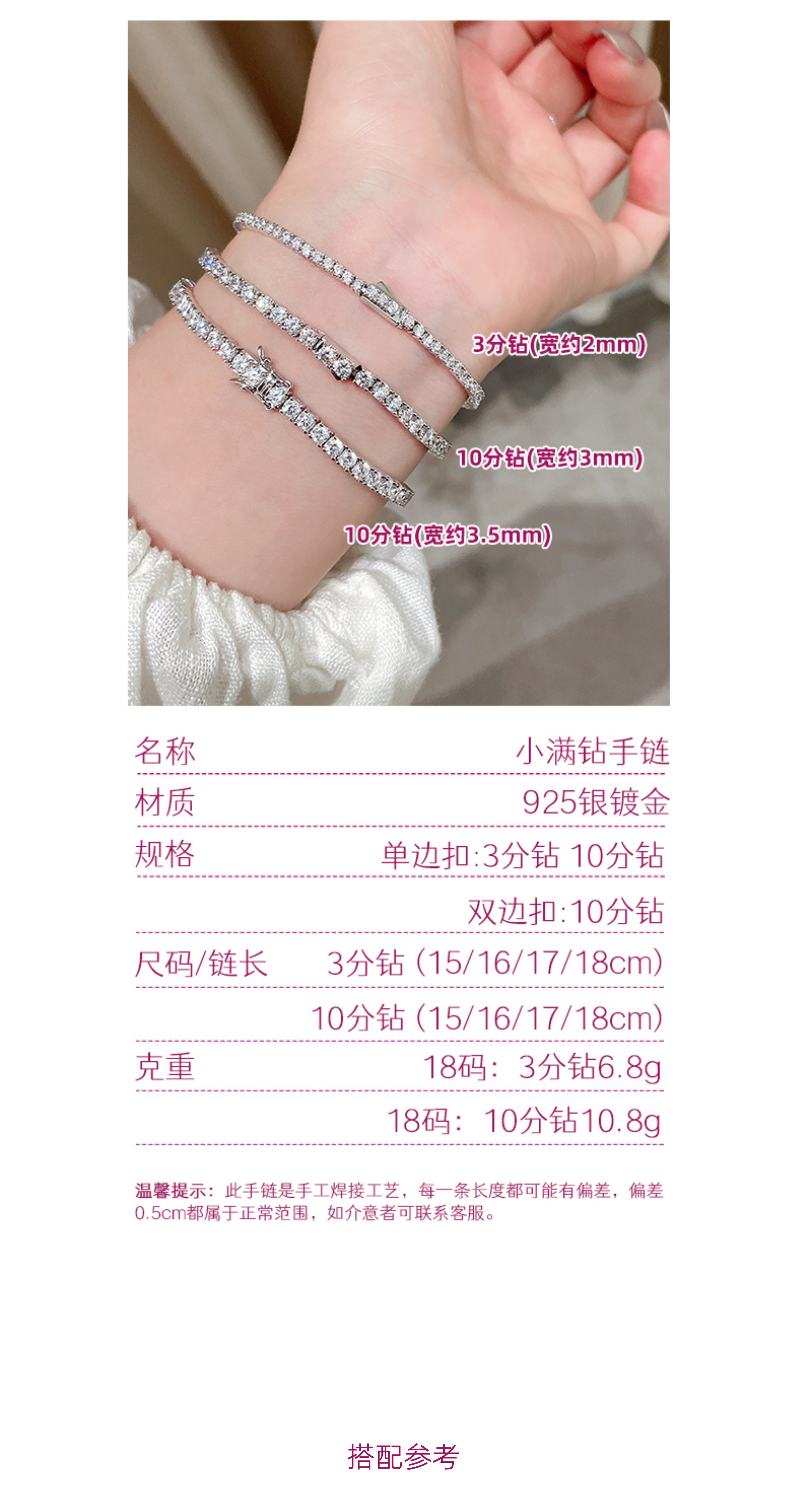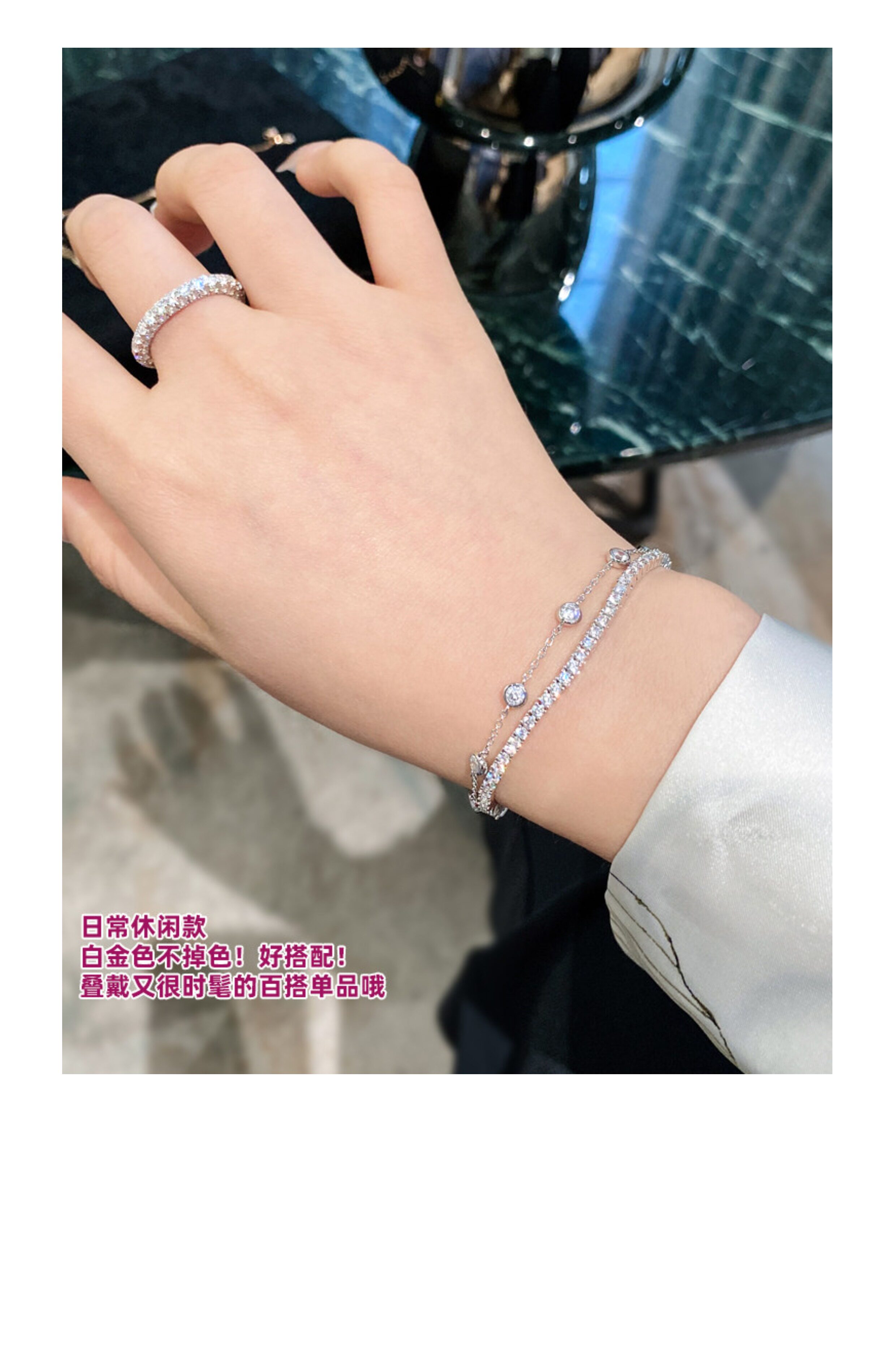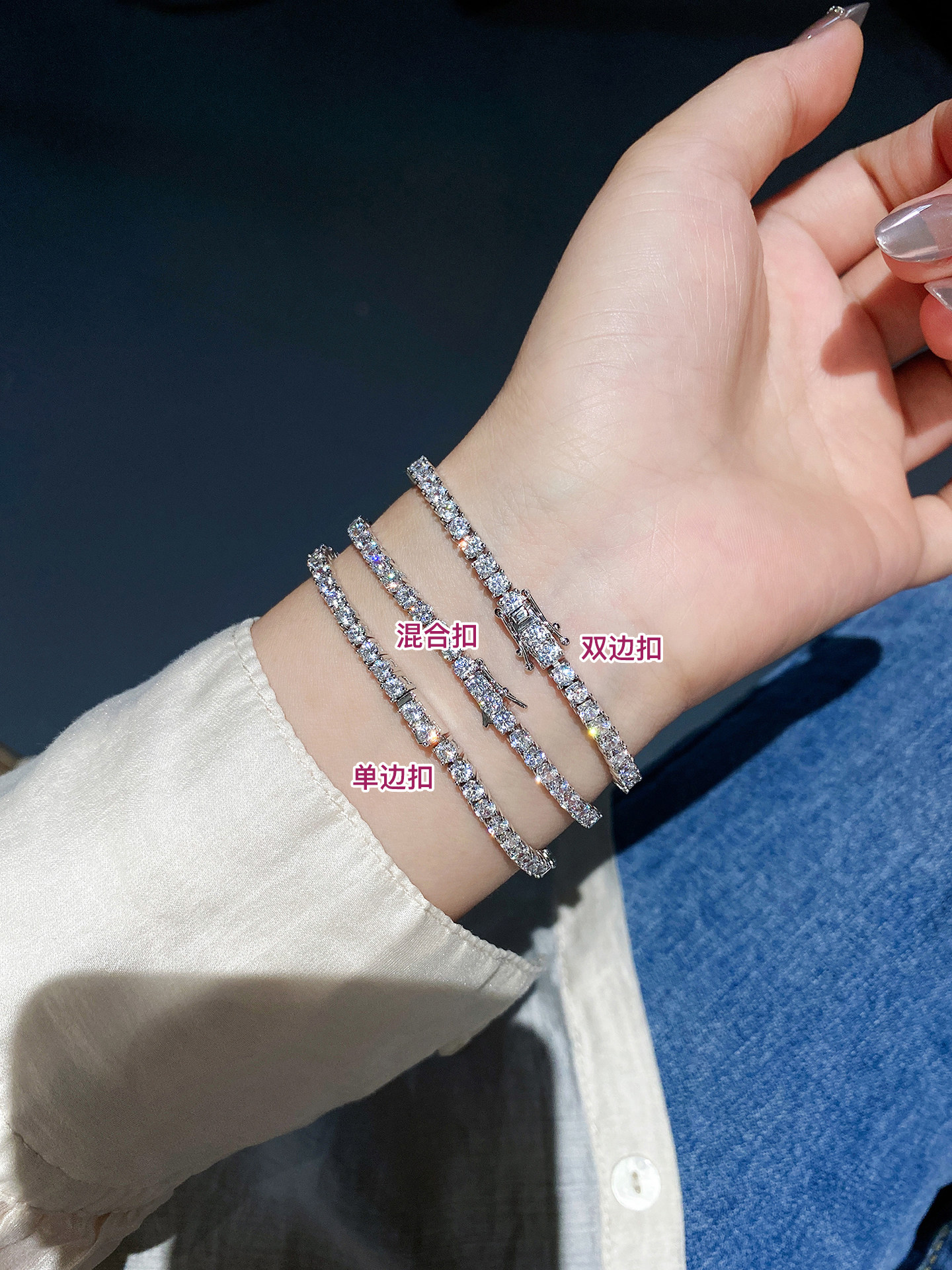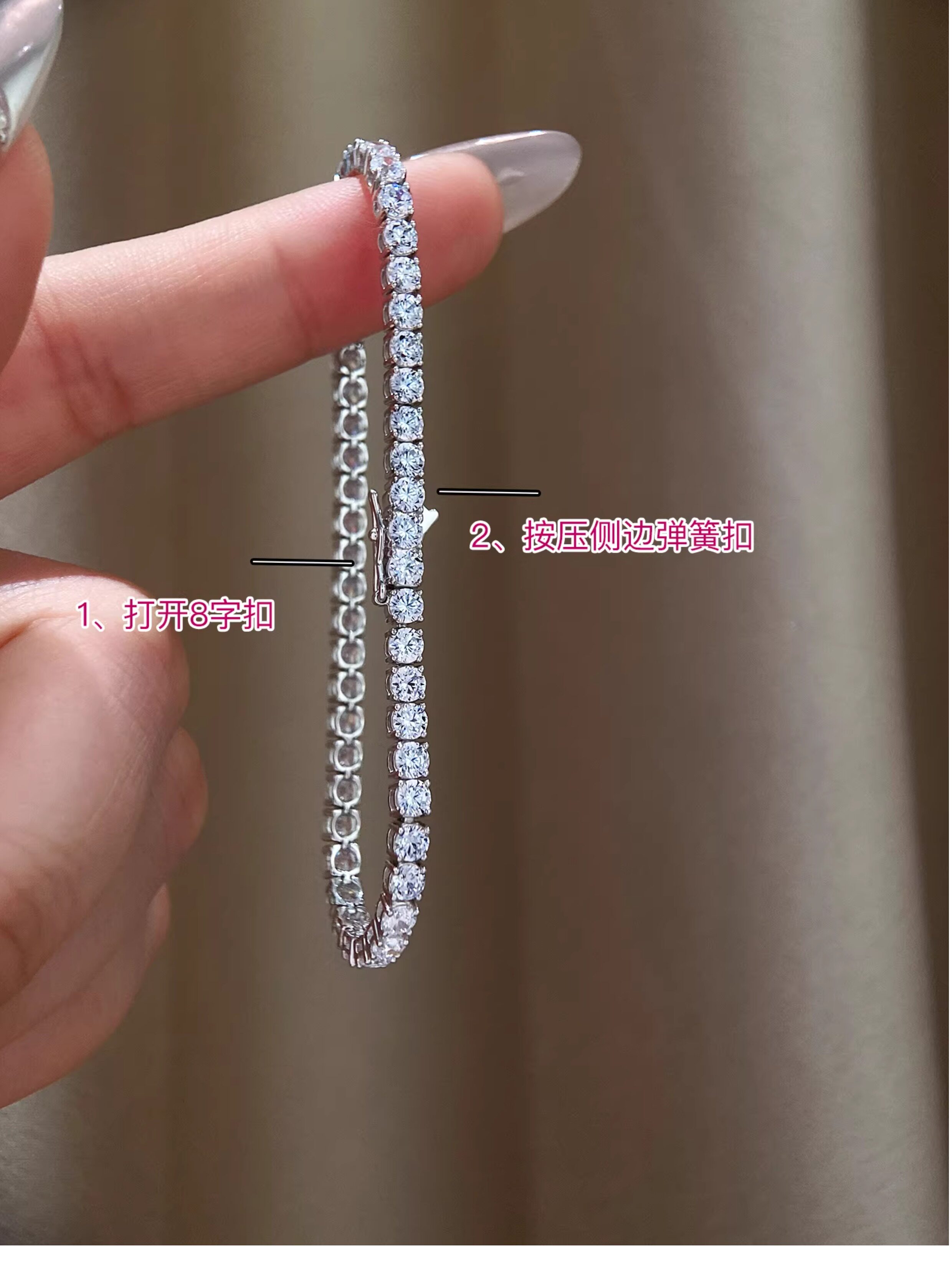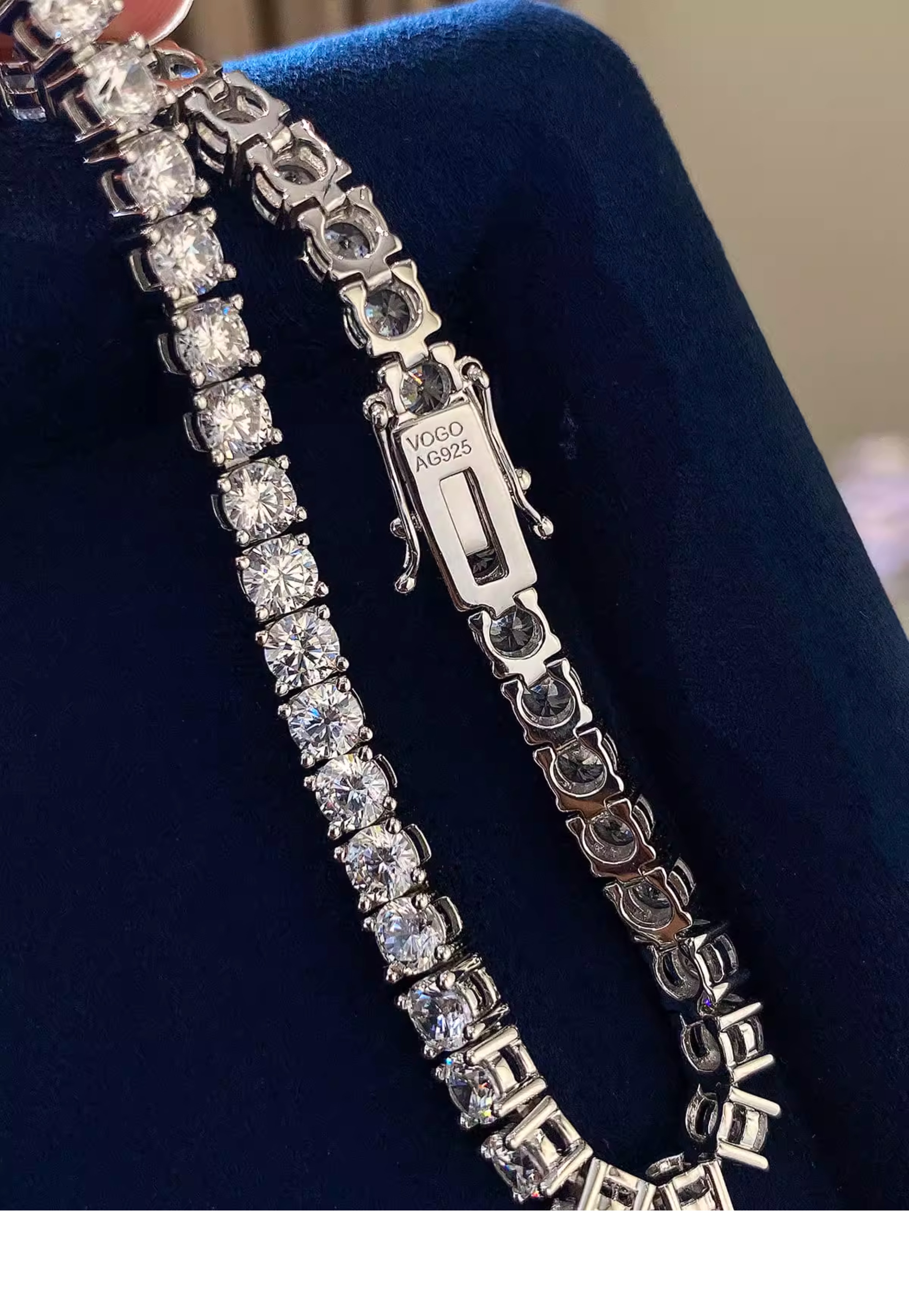 Full Diamond Bracelet for Women, Tennis Chain, Row of Diamonds, Zircon, Artificial Diamonds, Sterling Silver, Full Diamonds, Crushed Diamonds, Dazzling, Light Luxury, Niche, Exquisite