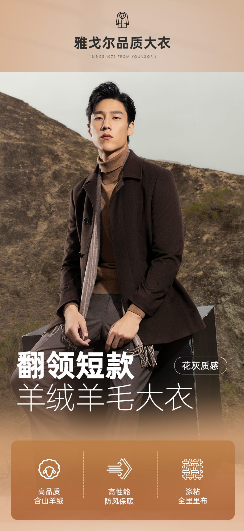 [Wool and Cashmere] Youngor Autumn and Winter Men's Coat Warm Business Casual Lapel Mature Jacket 4466