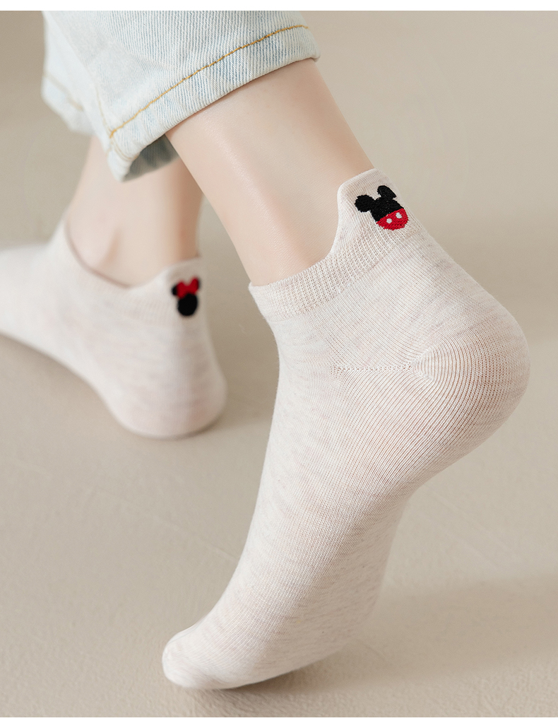 Cute Embroidered Socks for Women, Pure Cotton Socks, Summer Thin Japanese Style Low-Cut Shallow Mouth Boat Socks, Spring & Fall Breathable Cotton Socks