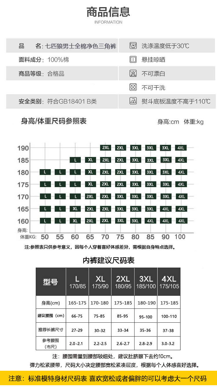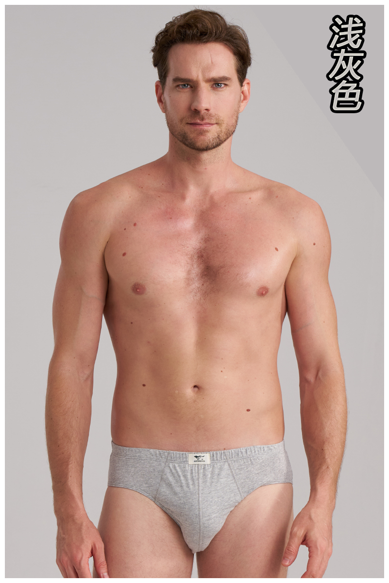 4 Pairs of Seven Wolves Men's Cotton Briefs, 100% Cotton, Breathable, Sweat-Absorbent, Solid Color, Thin Summer Style