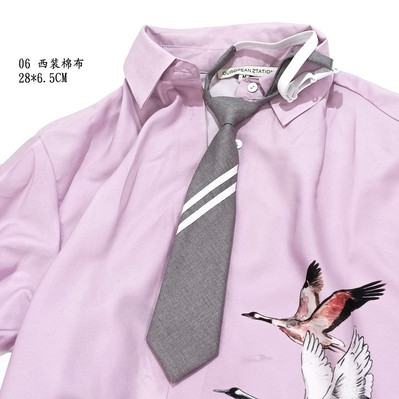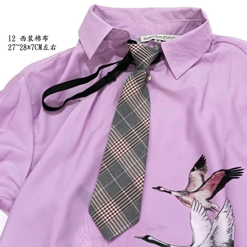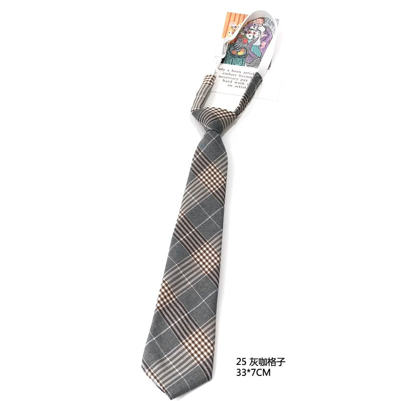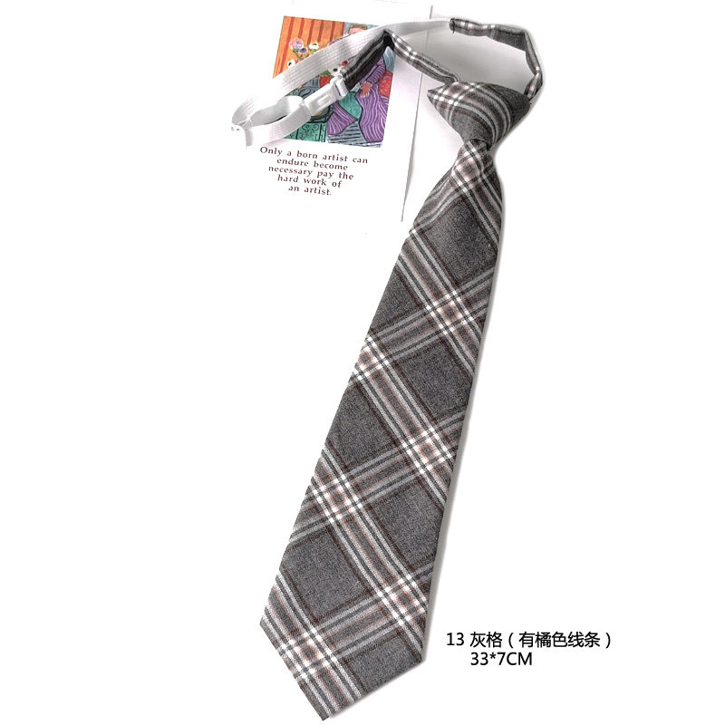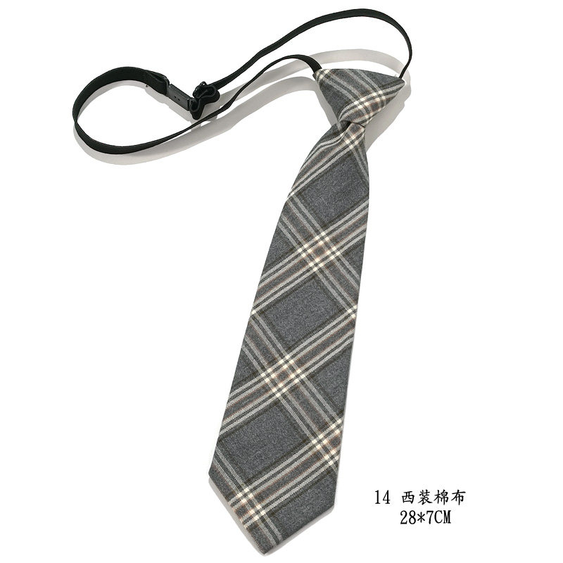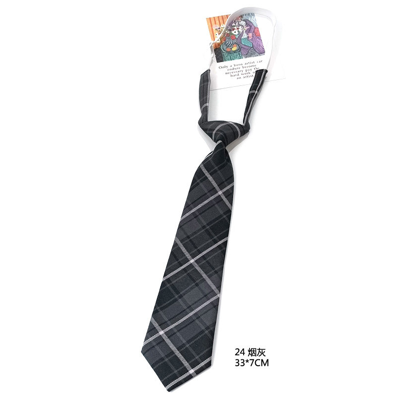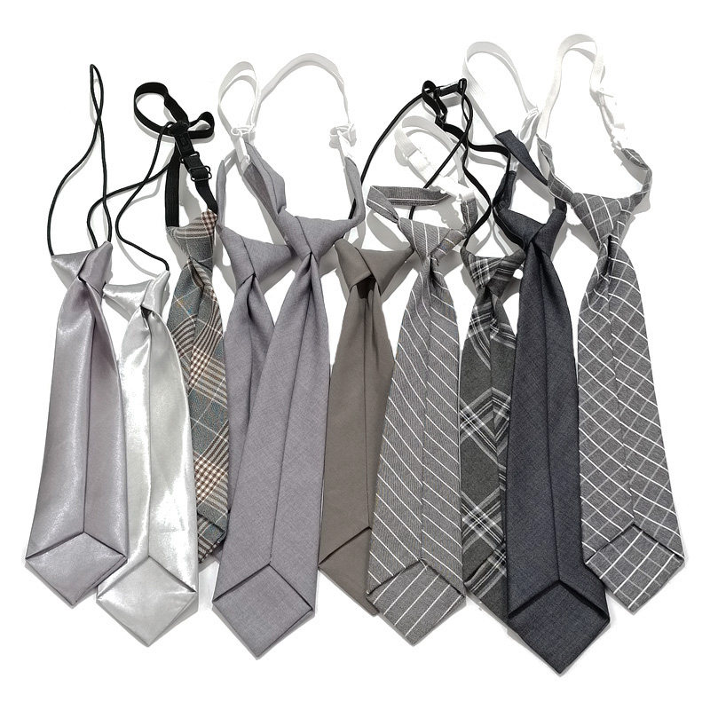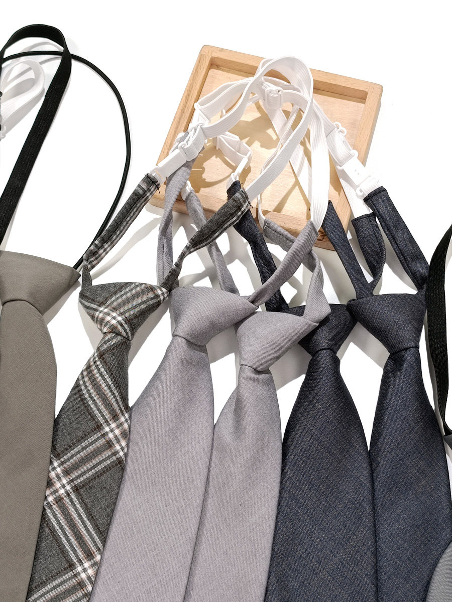 Buy Two Get One Free Pure Gray No-Tie Short Tie for Women, Japanese Student Style, Casual Basic Versatile Striped Plaid