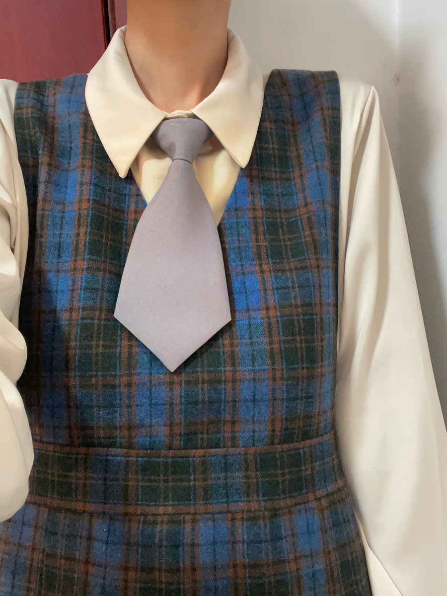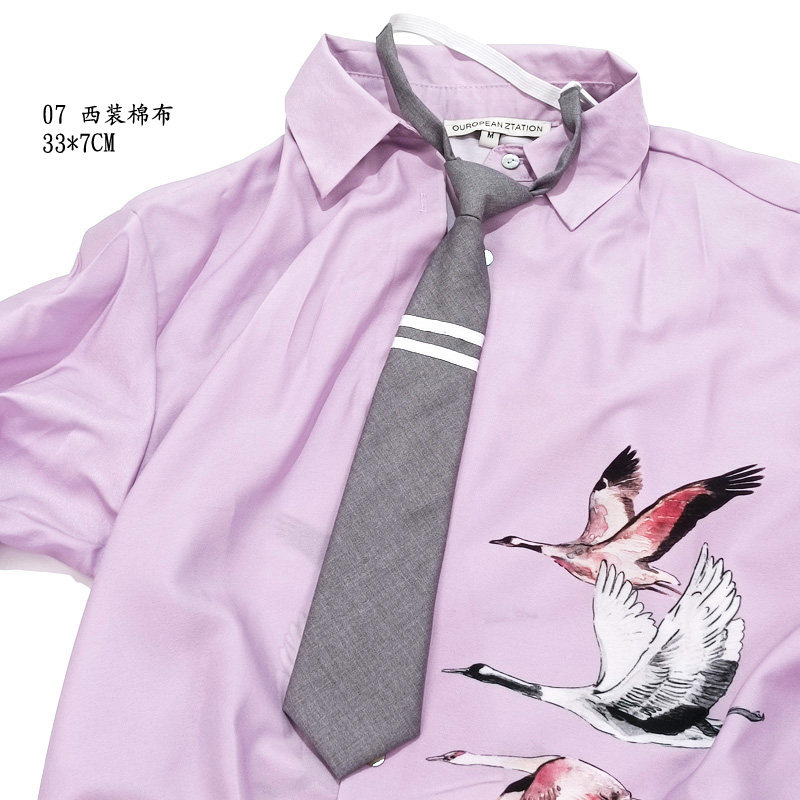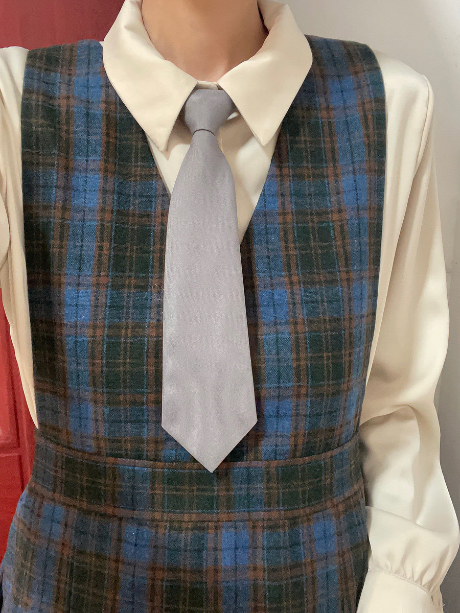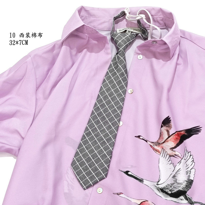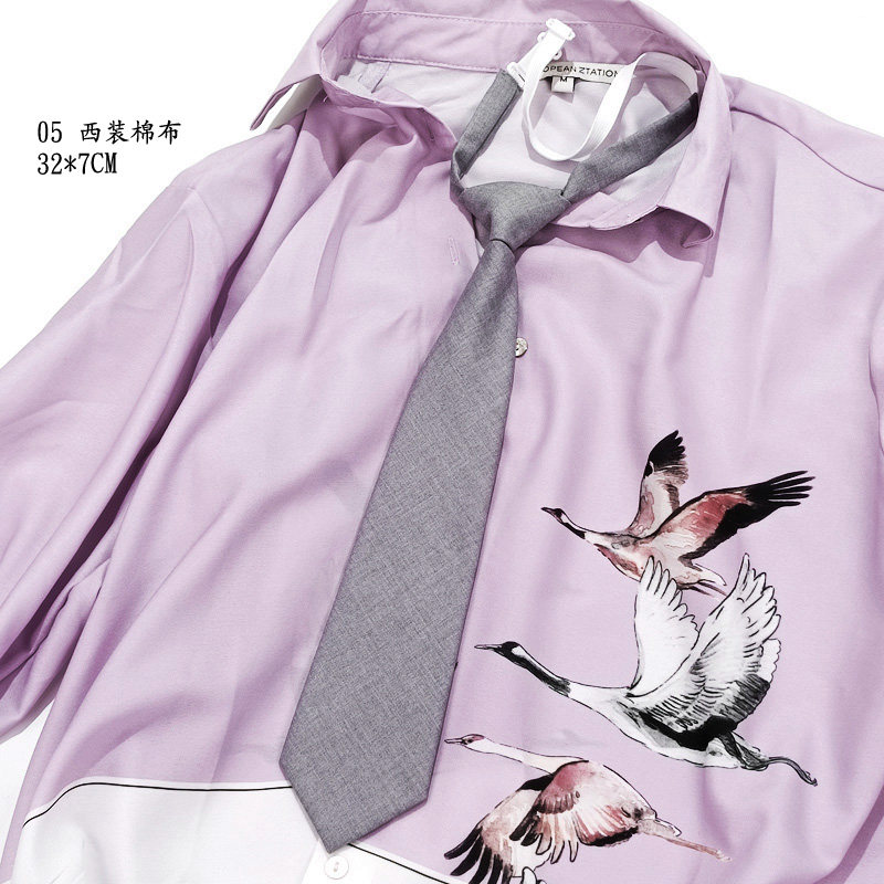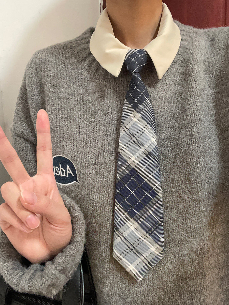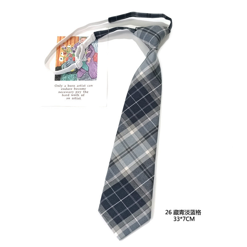 Buy Two Get One Free Pure Gray No-Tie Short Tie for Women, Japanese Student Style, Casual Basic Versatile Striped Plaid